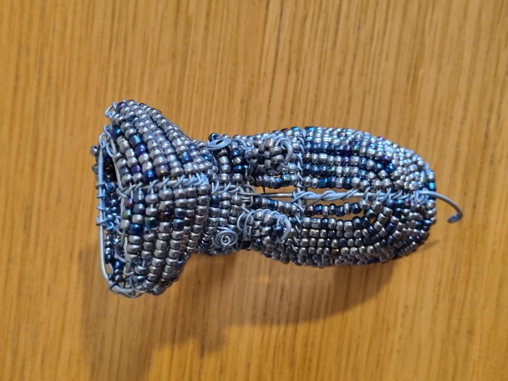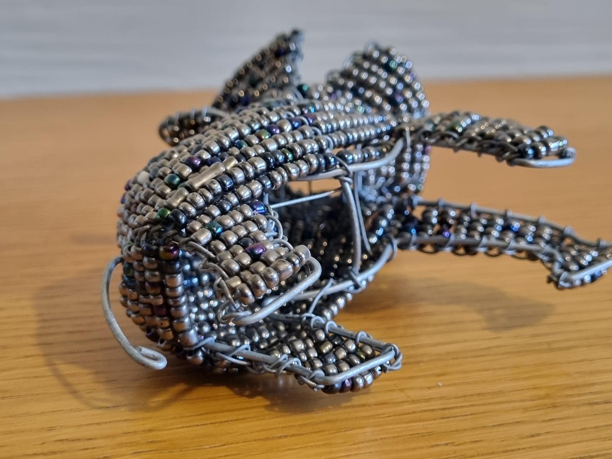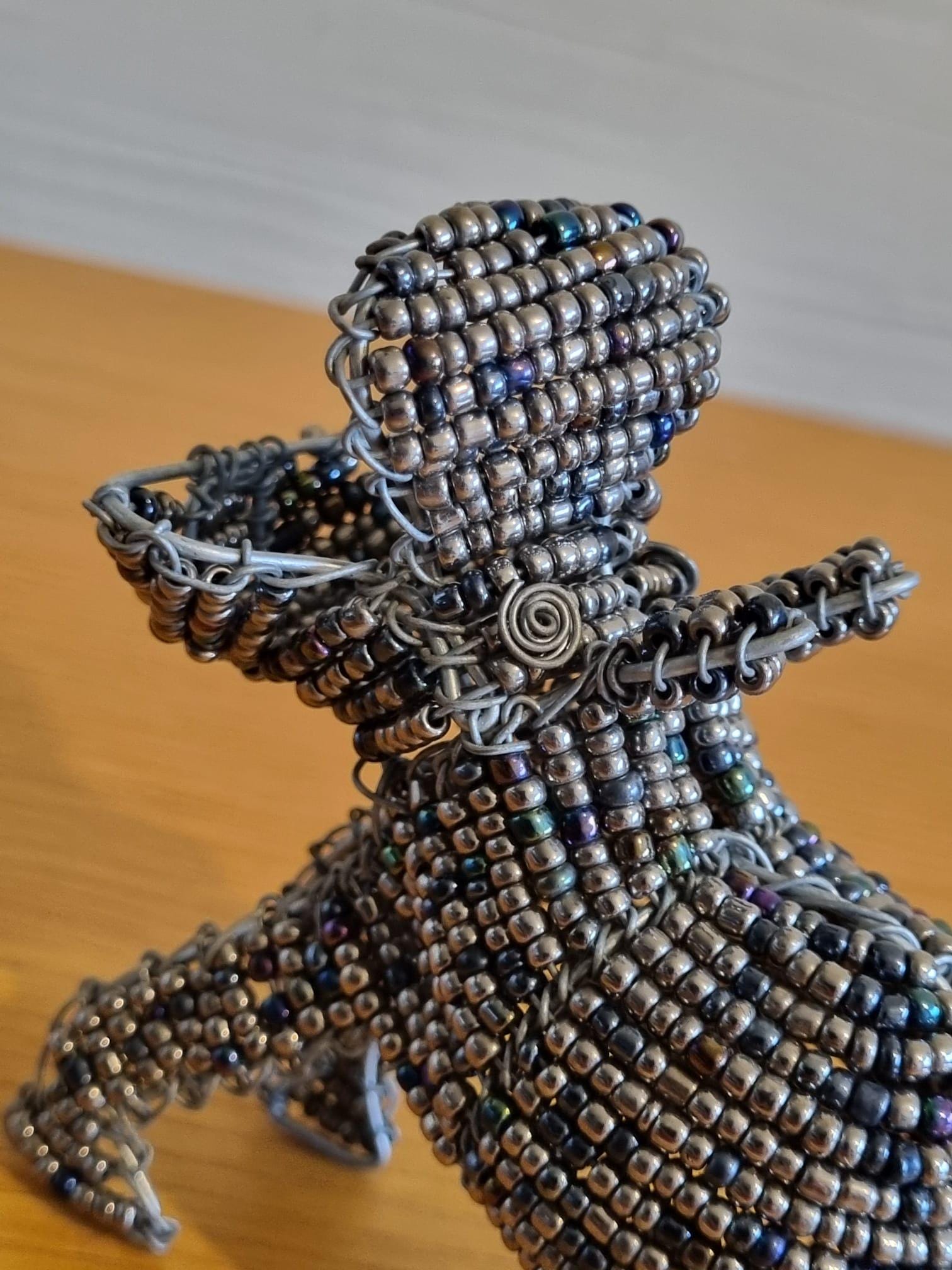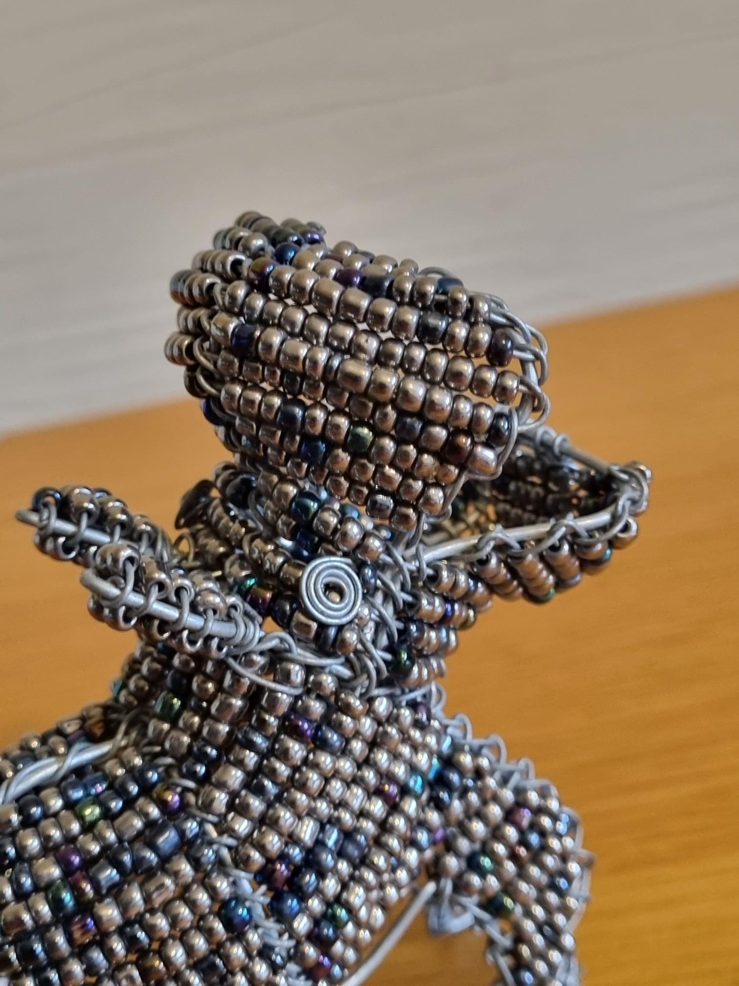 Discover the captivating charm of this handcrafted African hippo figurine, a remarkable piece of art created with meticulous attention to detail using delicate beaded wire. Measuring approximately 10cm from mouth to tail, this majestic figurine will elevate any animal collection with its striking presence. The hippo stands tall and proud, showcasing intricate detailing on its skin that truly brings it to life.