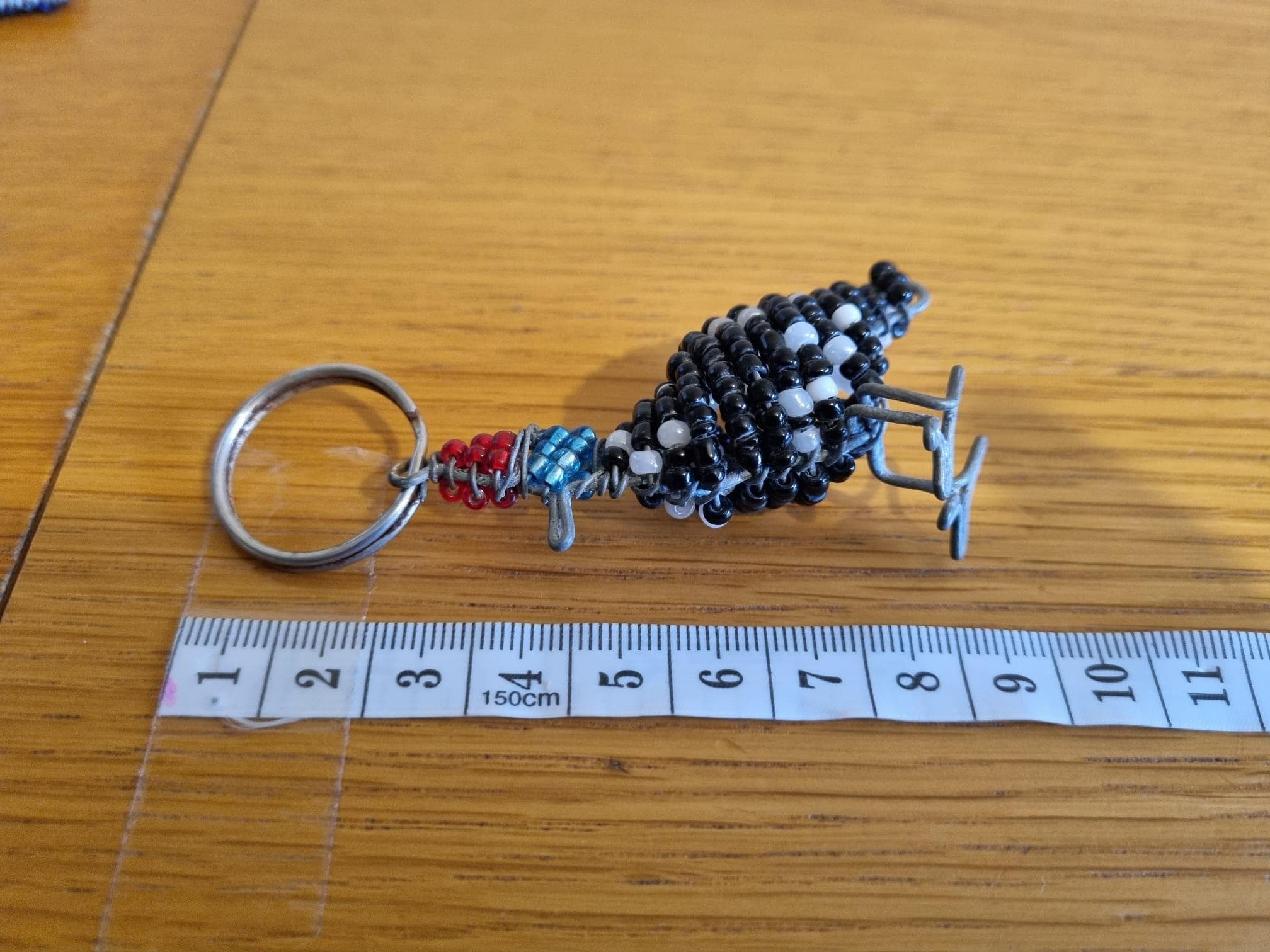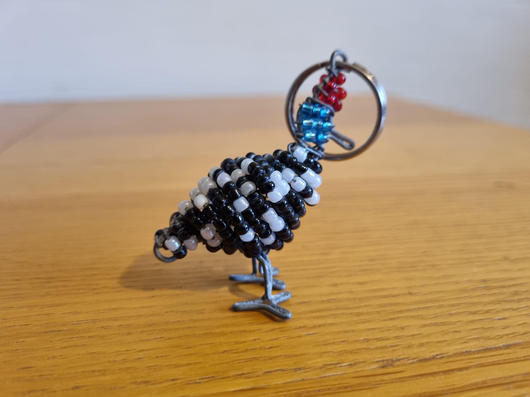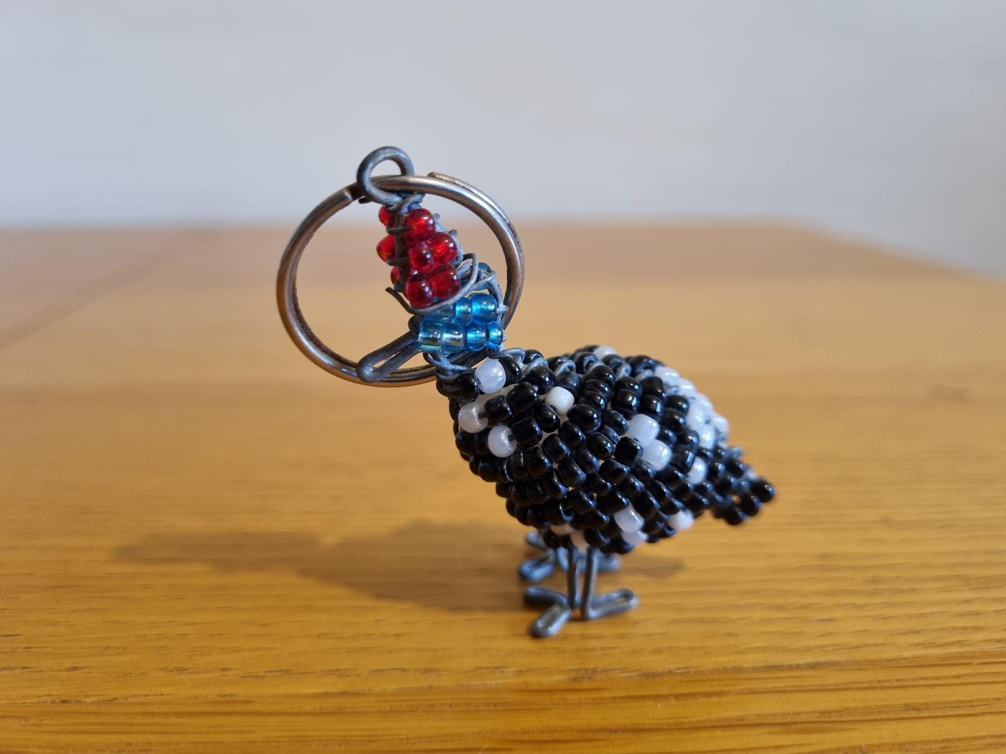 Guinea fowl Black White Keyring Handmade Unique South African Art GiftsLimited Stock available.Measures: 6cm x 6cm x 4cm