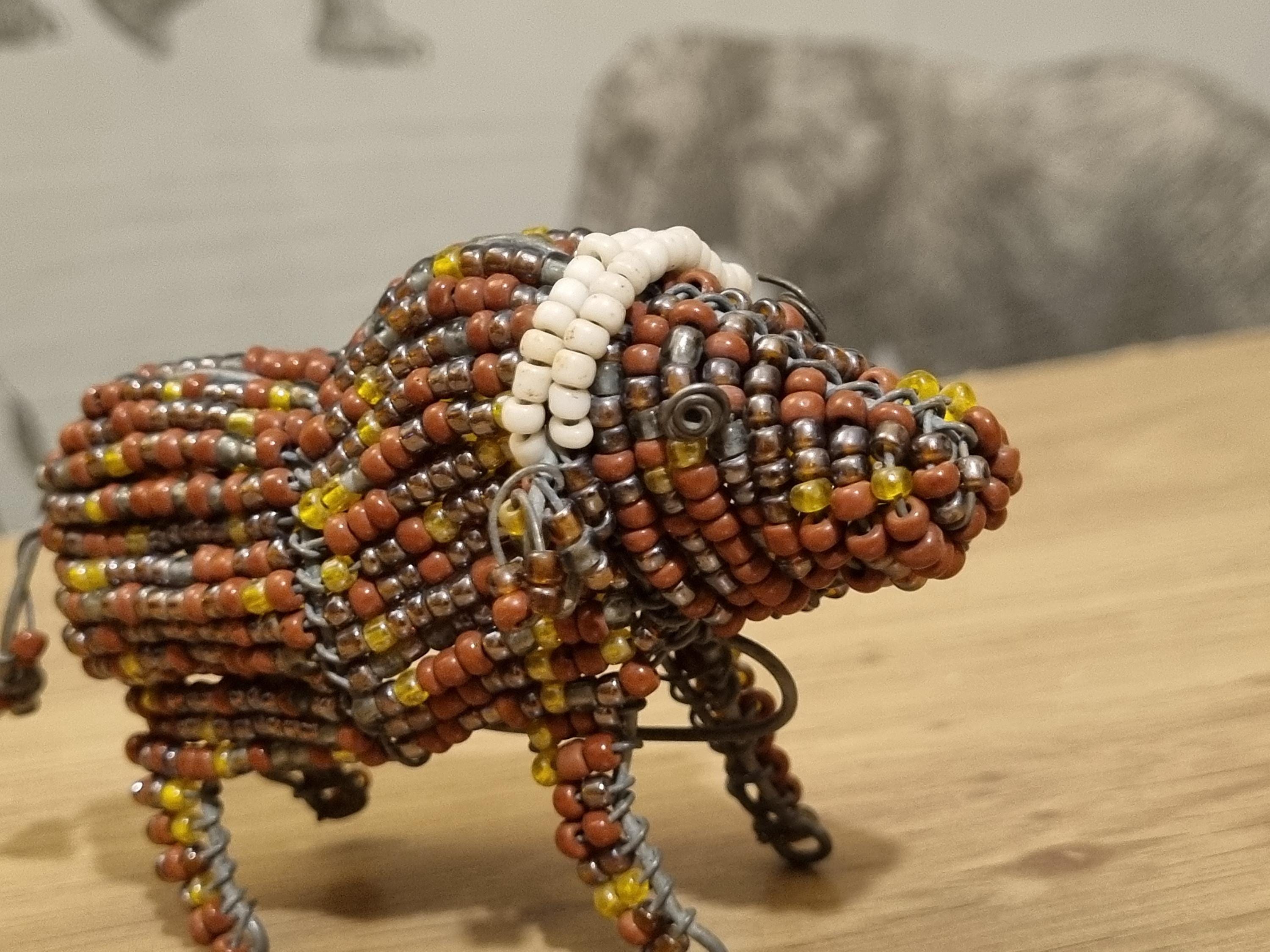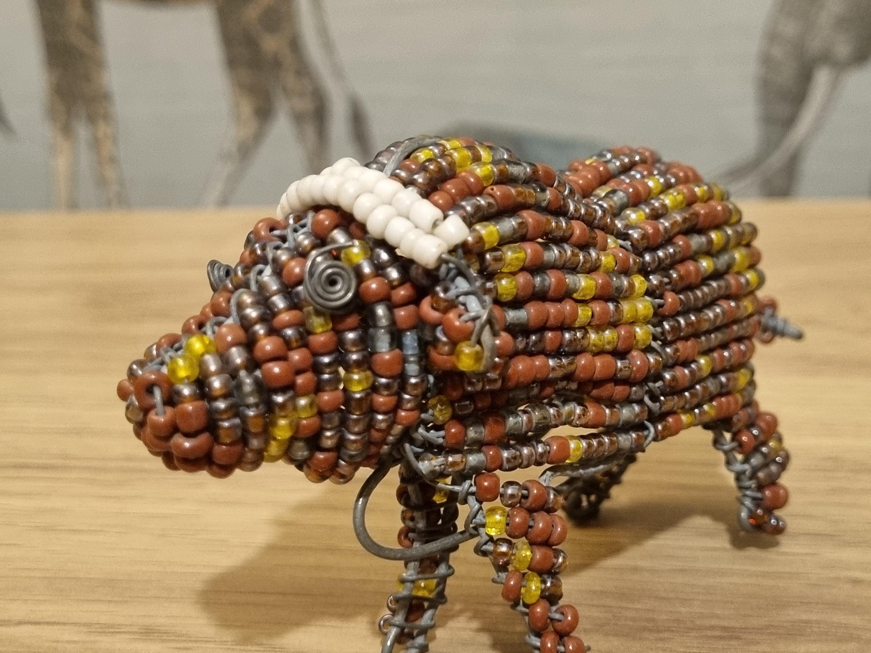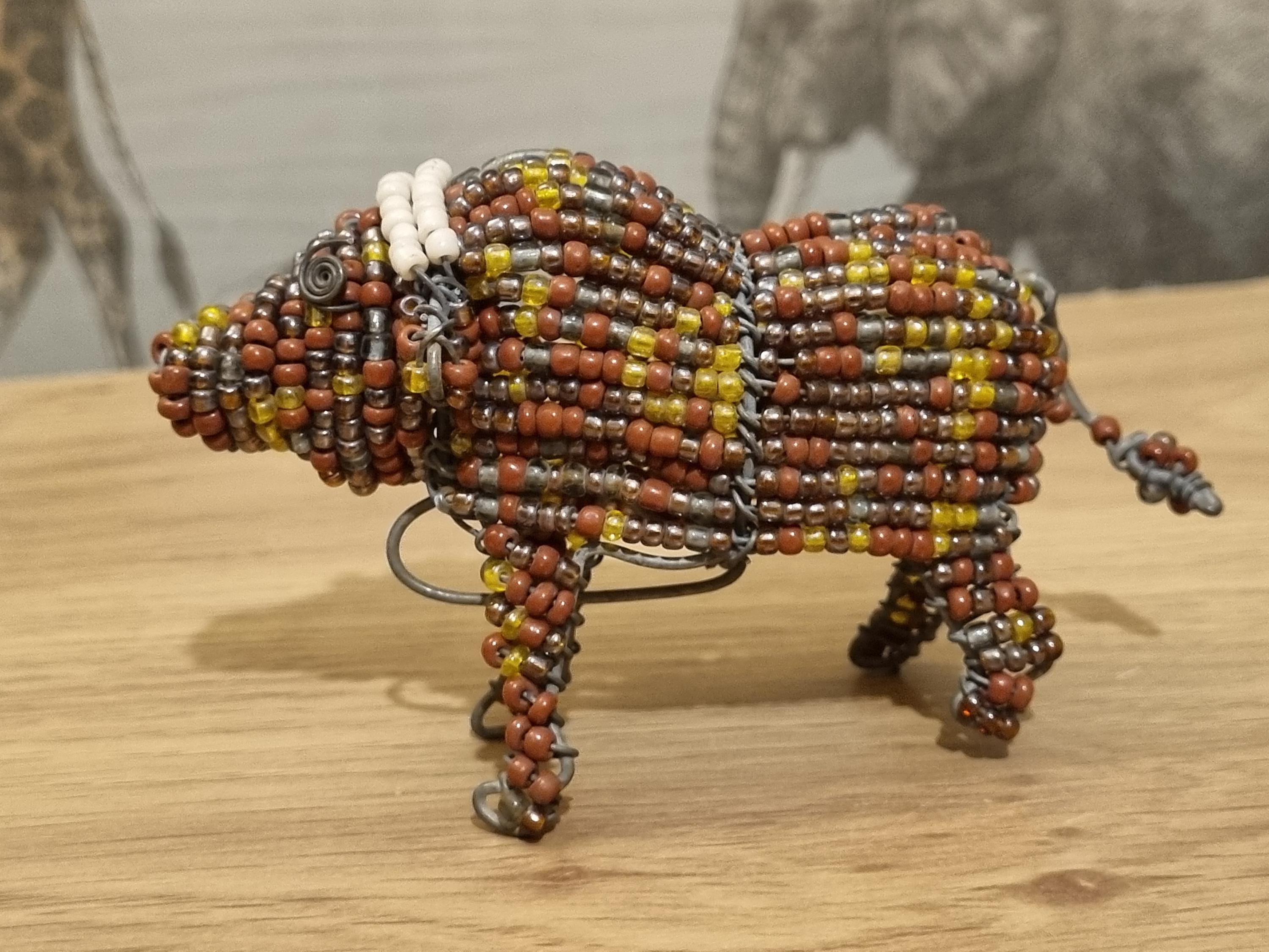 Buffalo multi-colored beads and wire Animal sculpture. Table decor figurines. Handmade Unique South African Art Gift