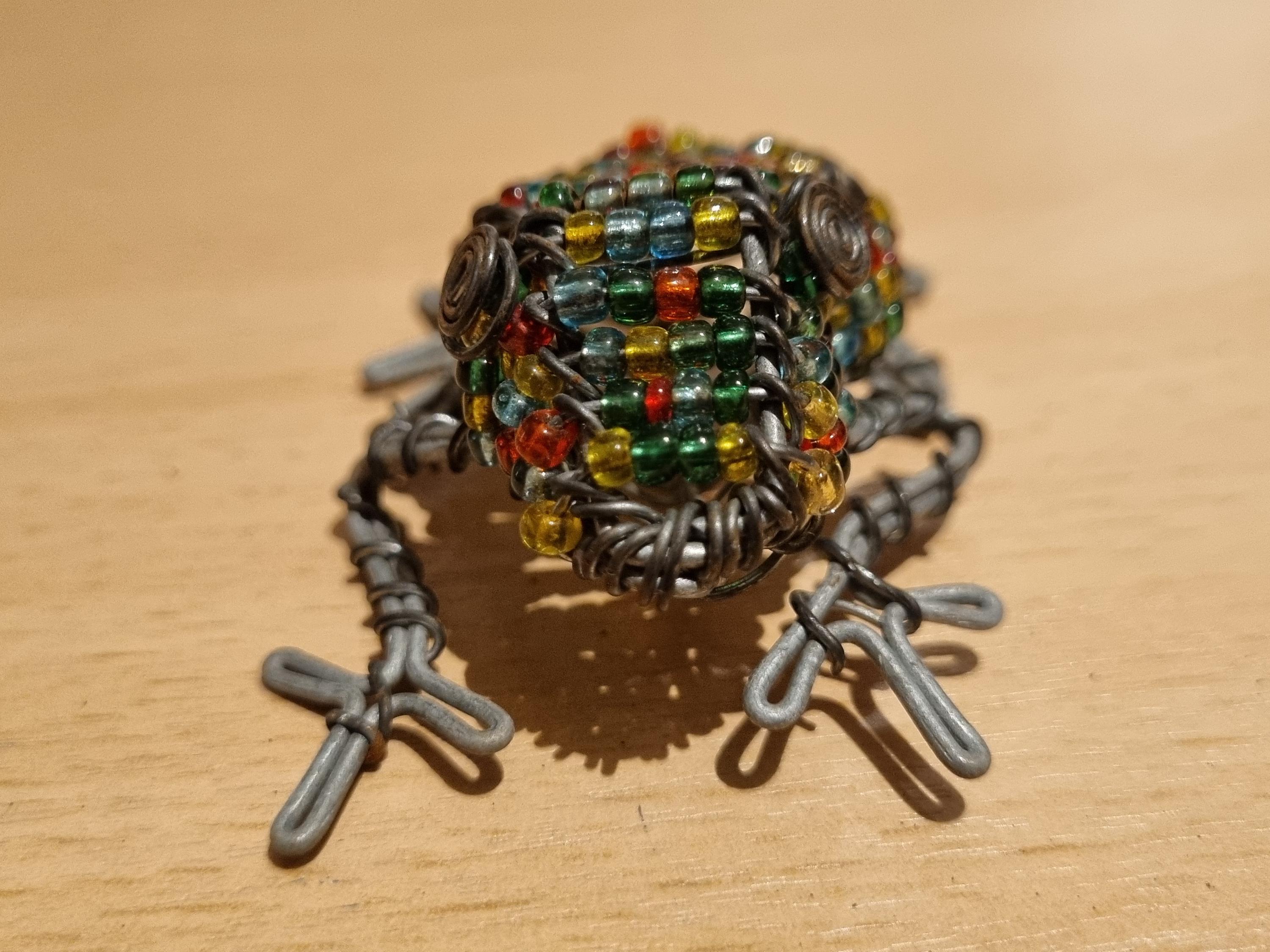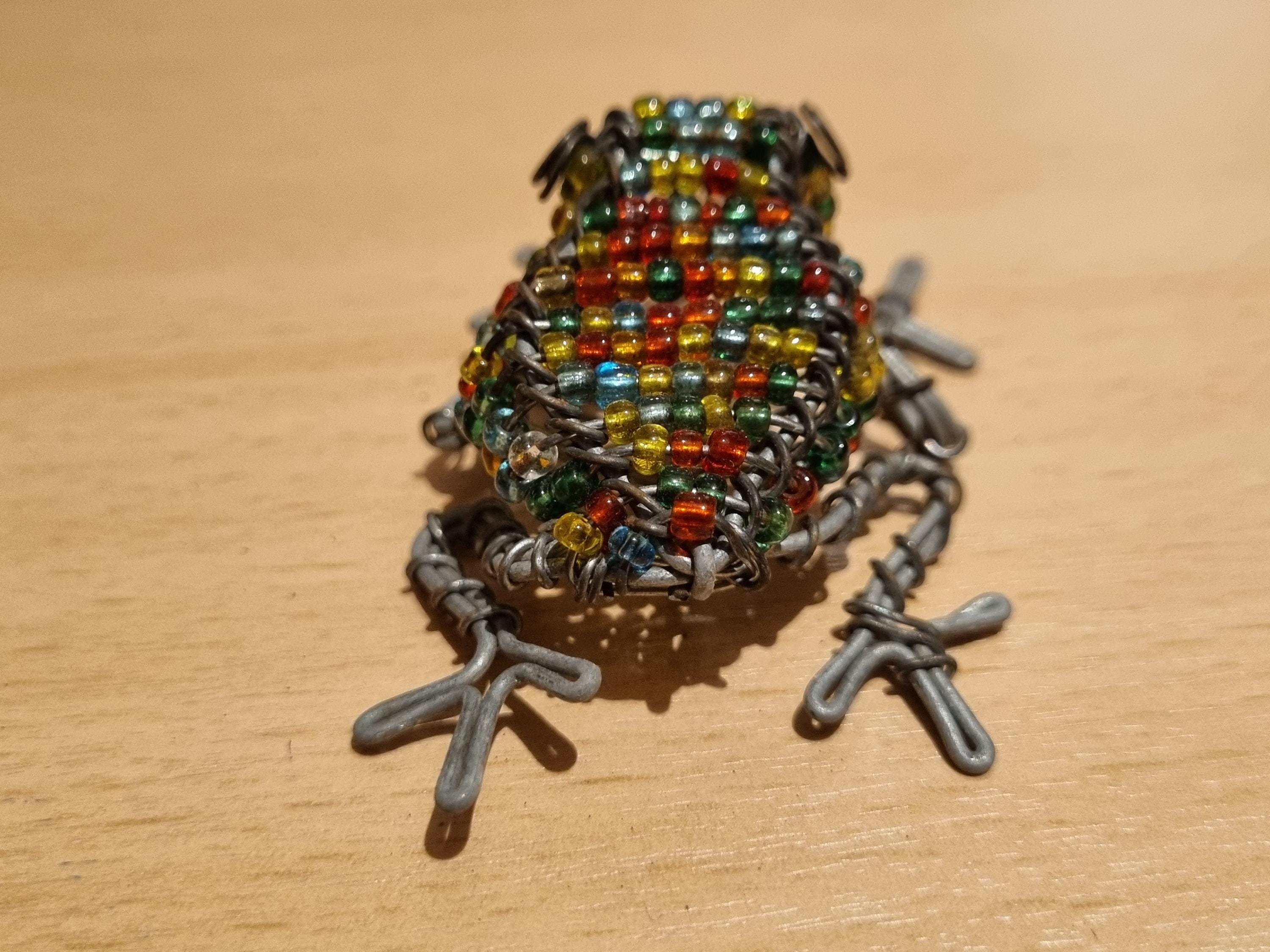 Bring a splash of personality to your space with this handcrafted beaded frog figurine, designed with intricate detail and care. Created using high-quality glass seed beads in a mix of vibrant colors, each frog is shaped by hand on a durable wire frame, giving it both charm and structure.