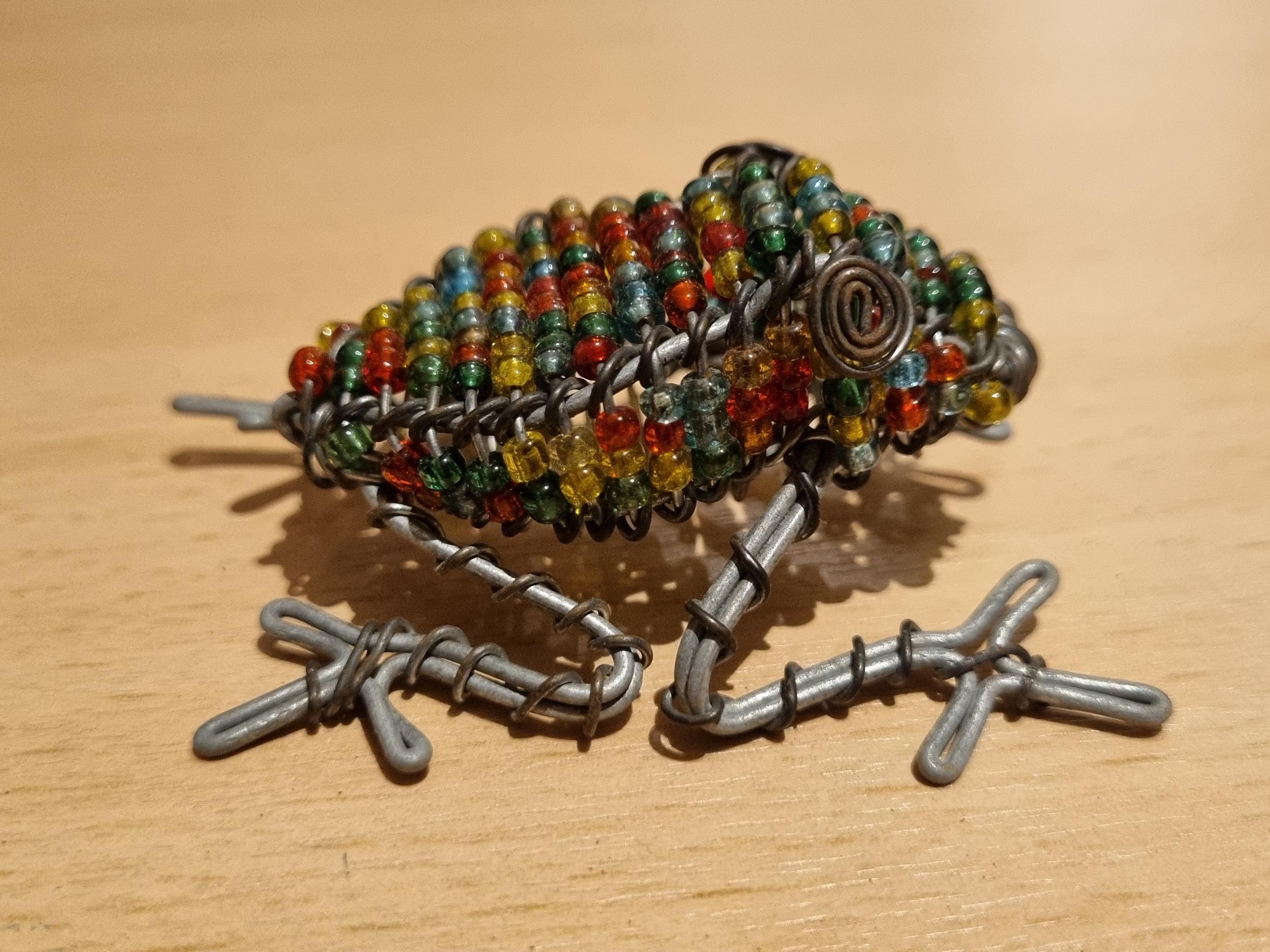 This delightful piece blends traditional African wire art with contemporary colour and playfulness. A miniature work of art ready to hop into your collection!