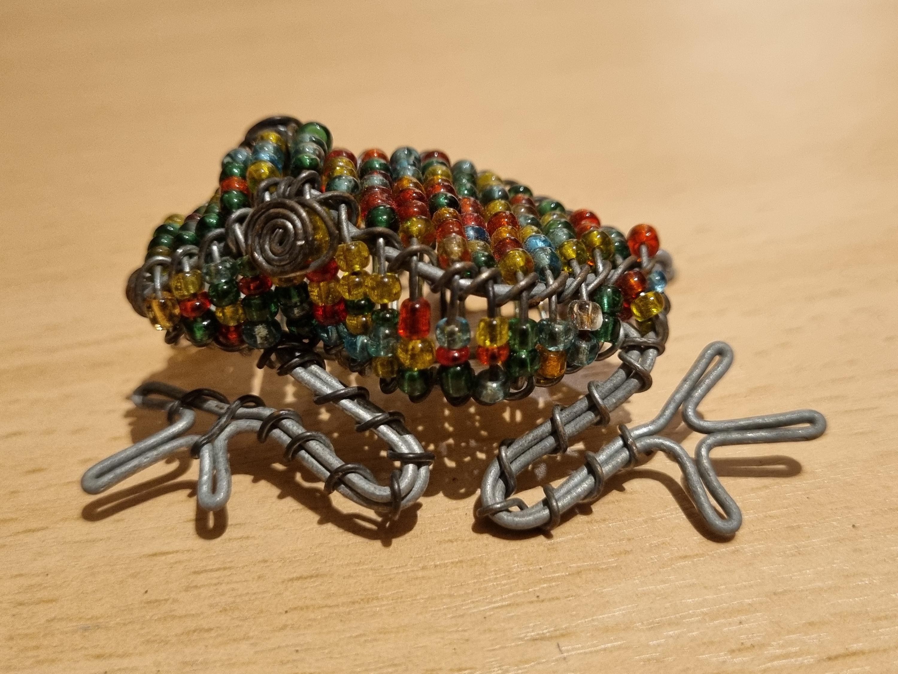 This miniature amphibian is a celebration of African beading craftsmanship and wildlife artistry. Whether perched on a shelf, peeking out from a plant pot, or hopping into someone's gift box, this frog is bound to be noticed and admired.