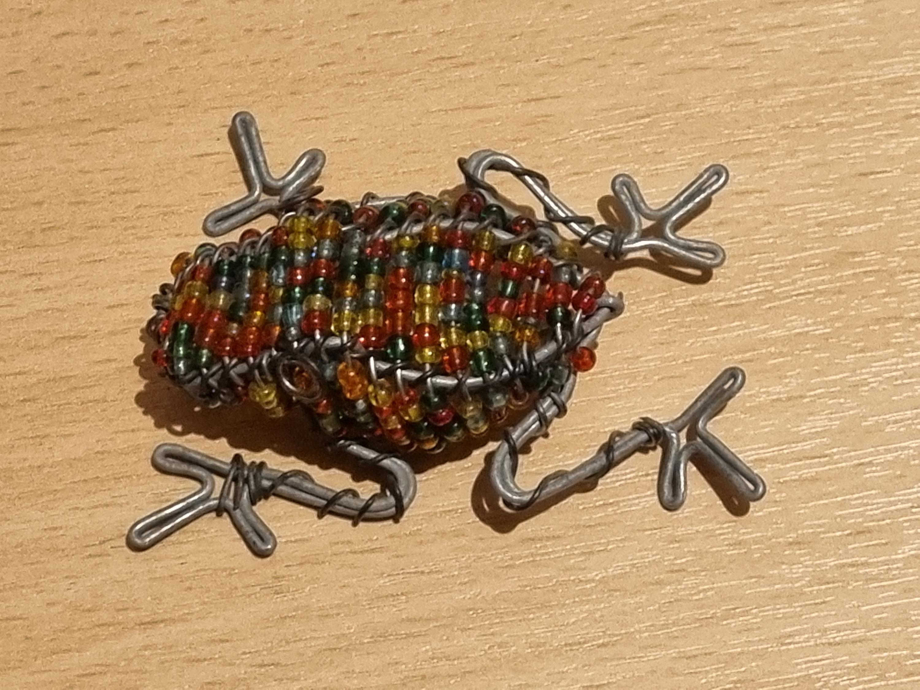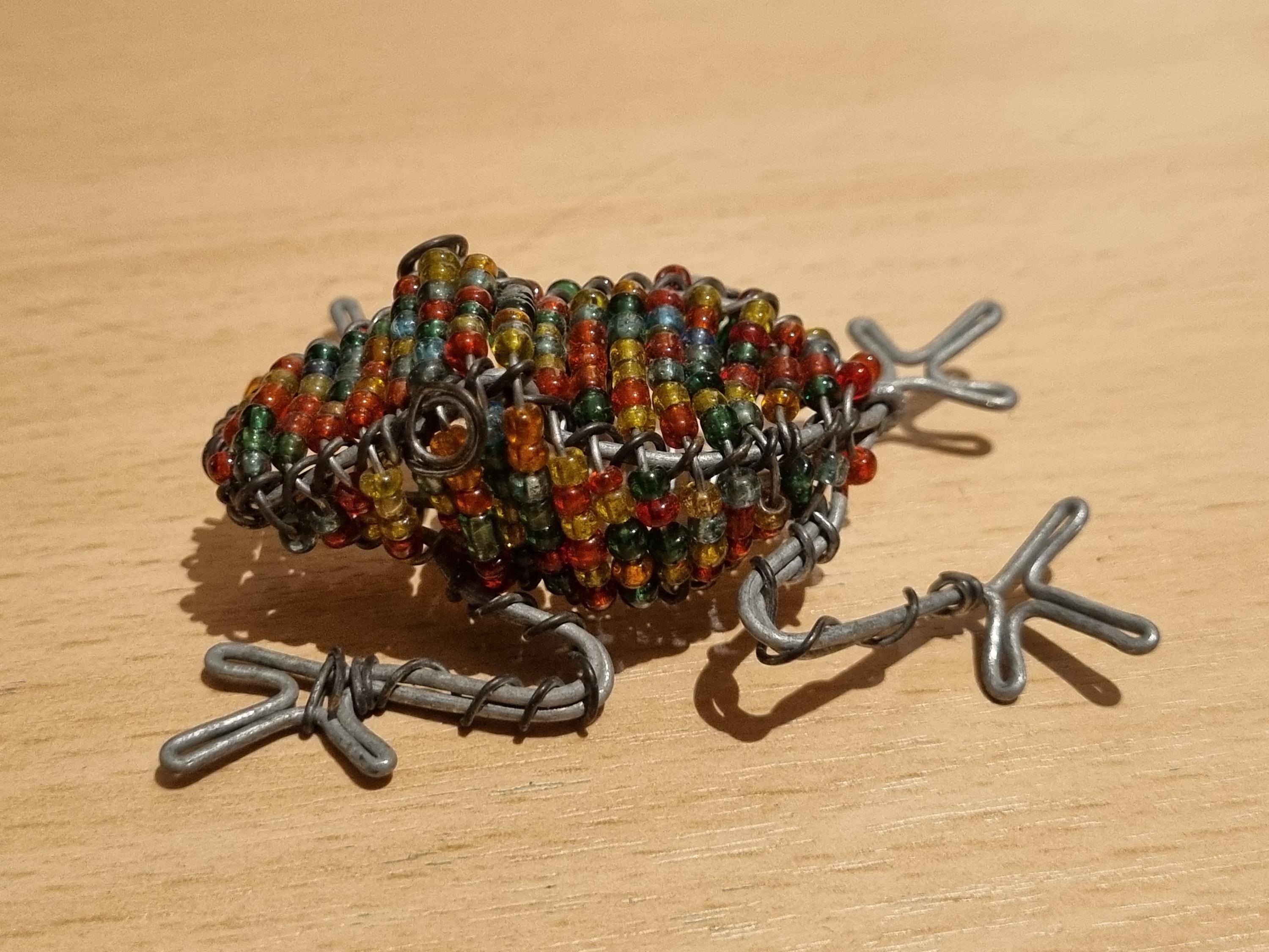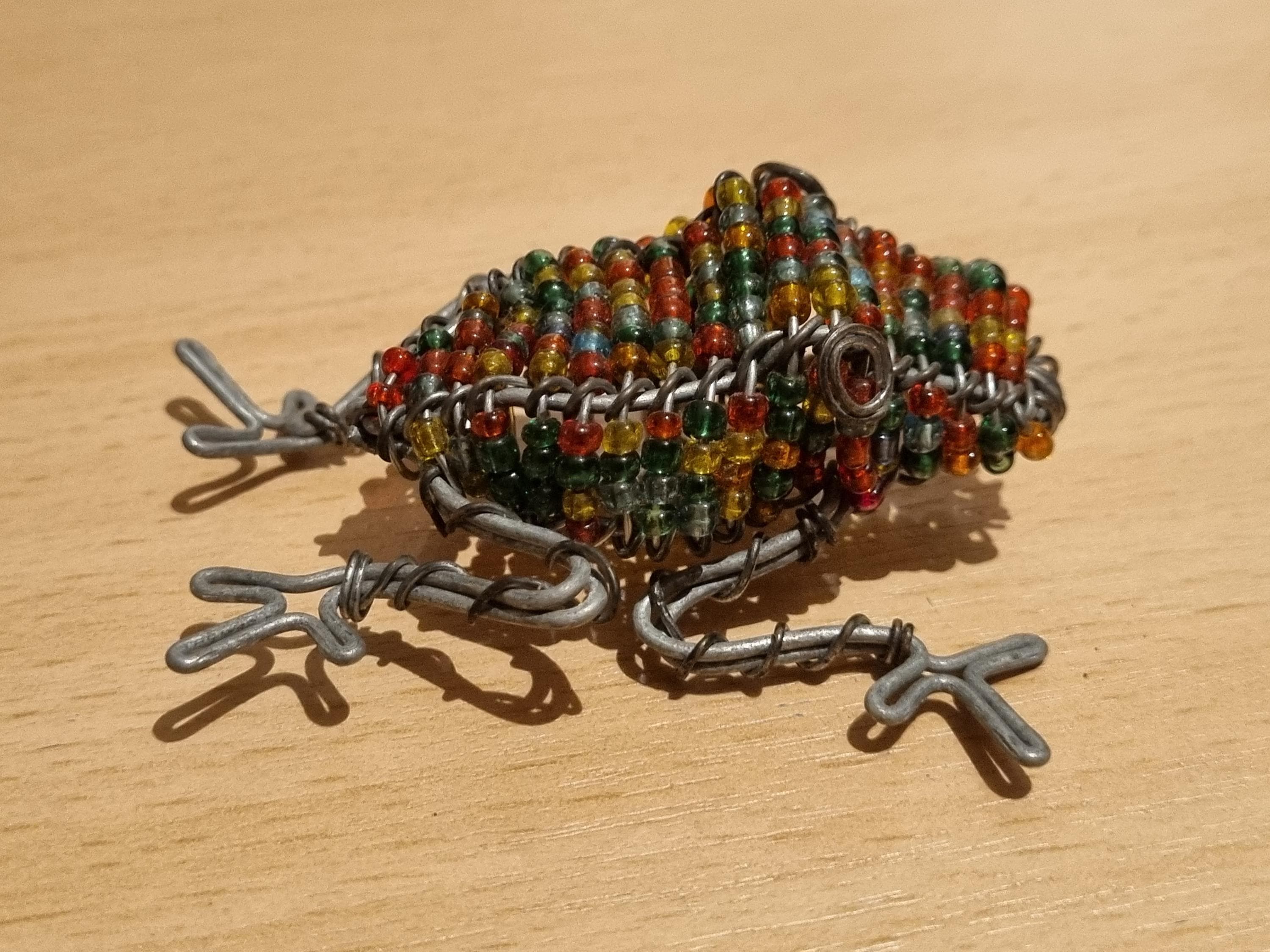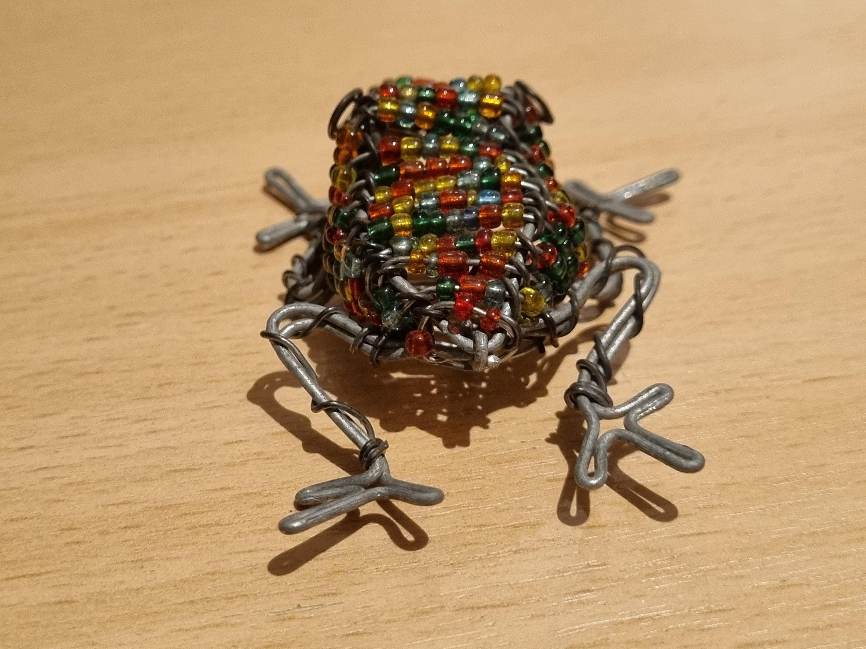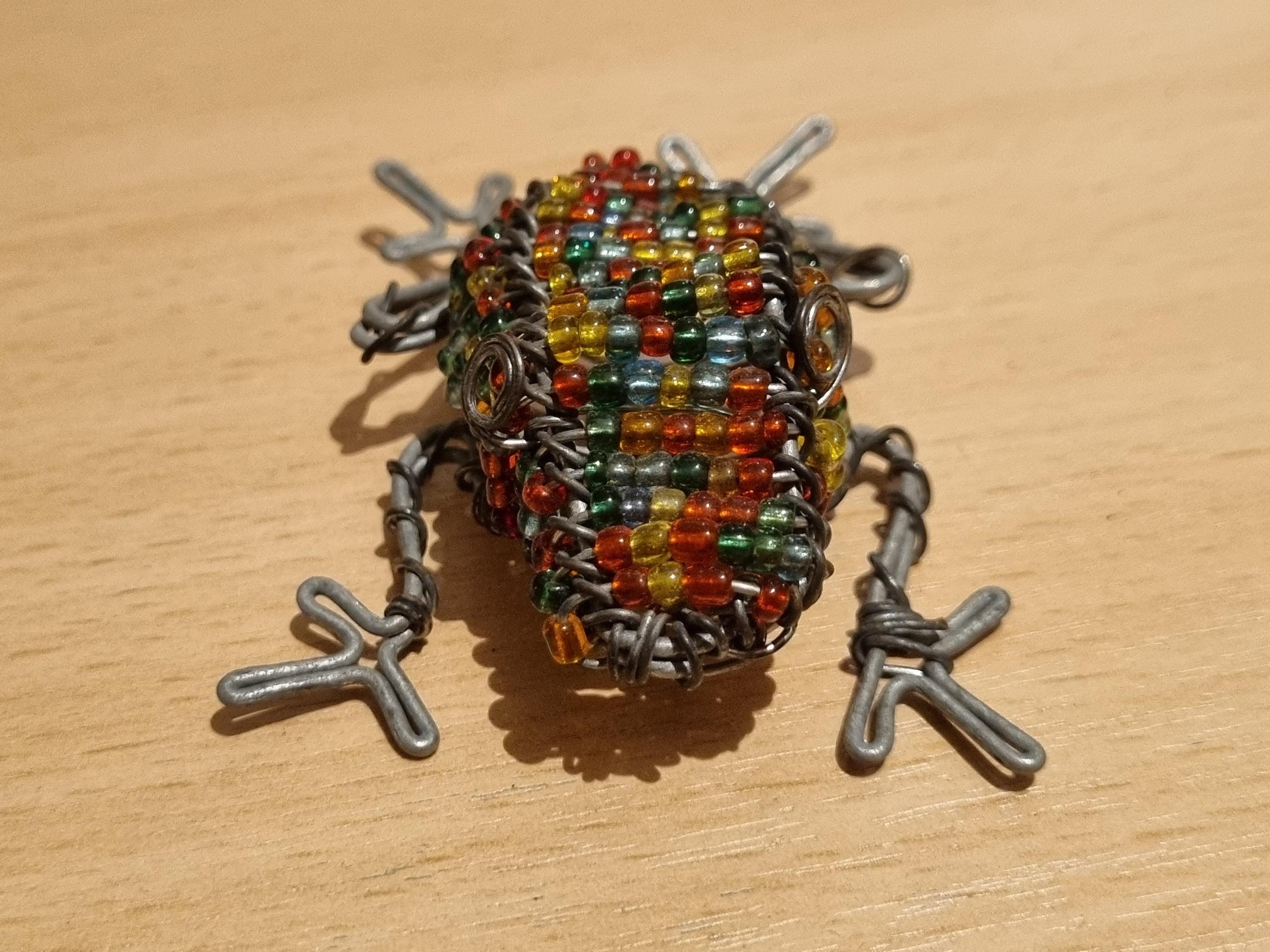 Leap into colour with this vibrant handmade beaded frog sculpture, meticulously crafted by skilled artisans in South Africa. This playful amphibian is shaped with sturdy galvanized wire and adorned with multicoloured glass seed beads that shimmer with personality.