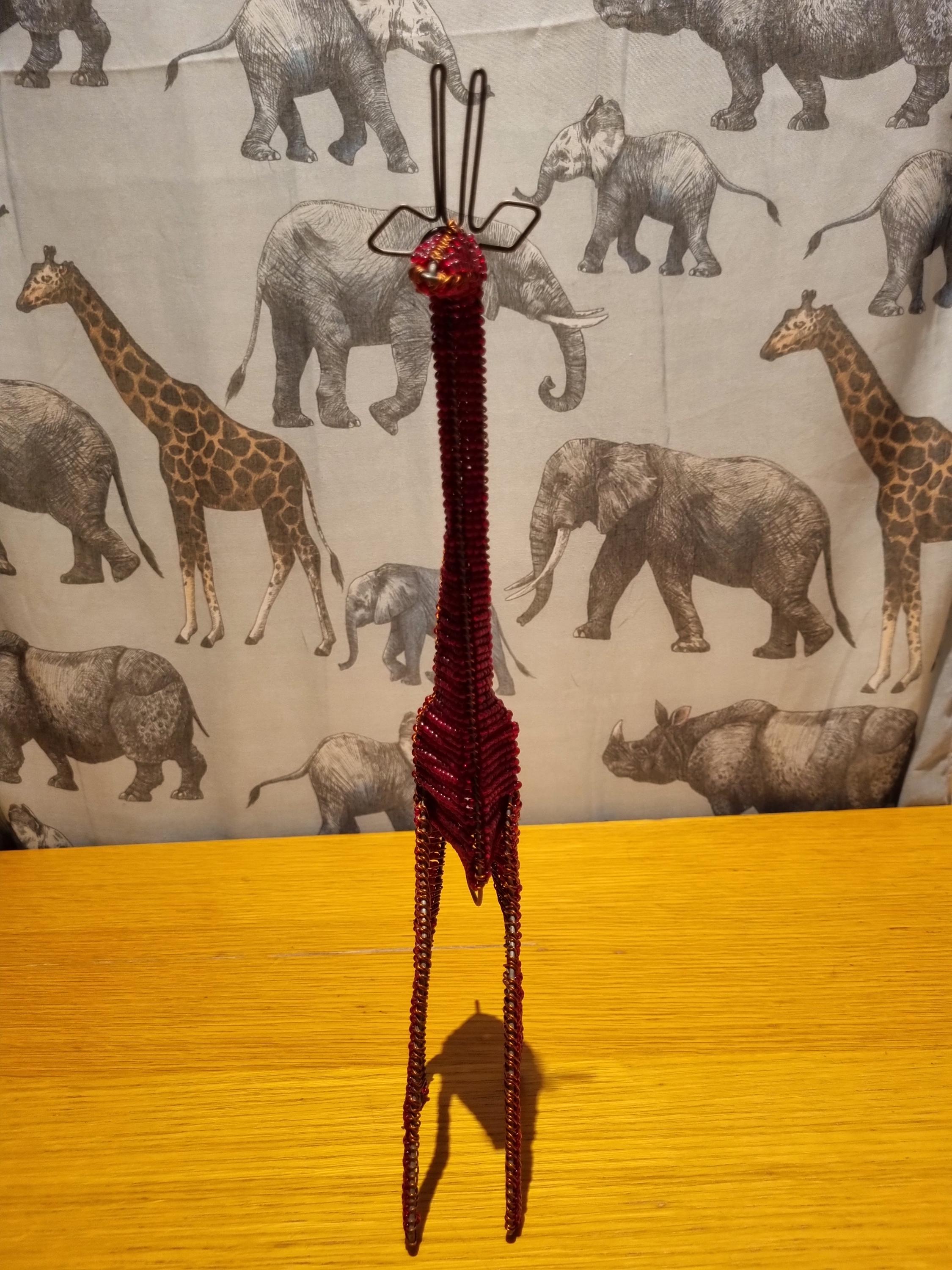 🦒 Red Giraffe – Rich, deep red glass beads with a classic tall-neck stance.
