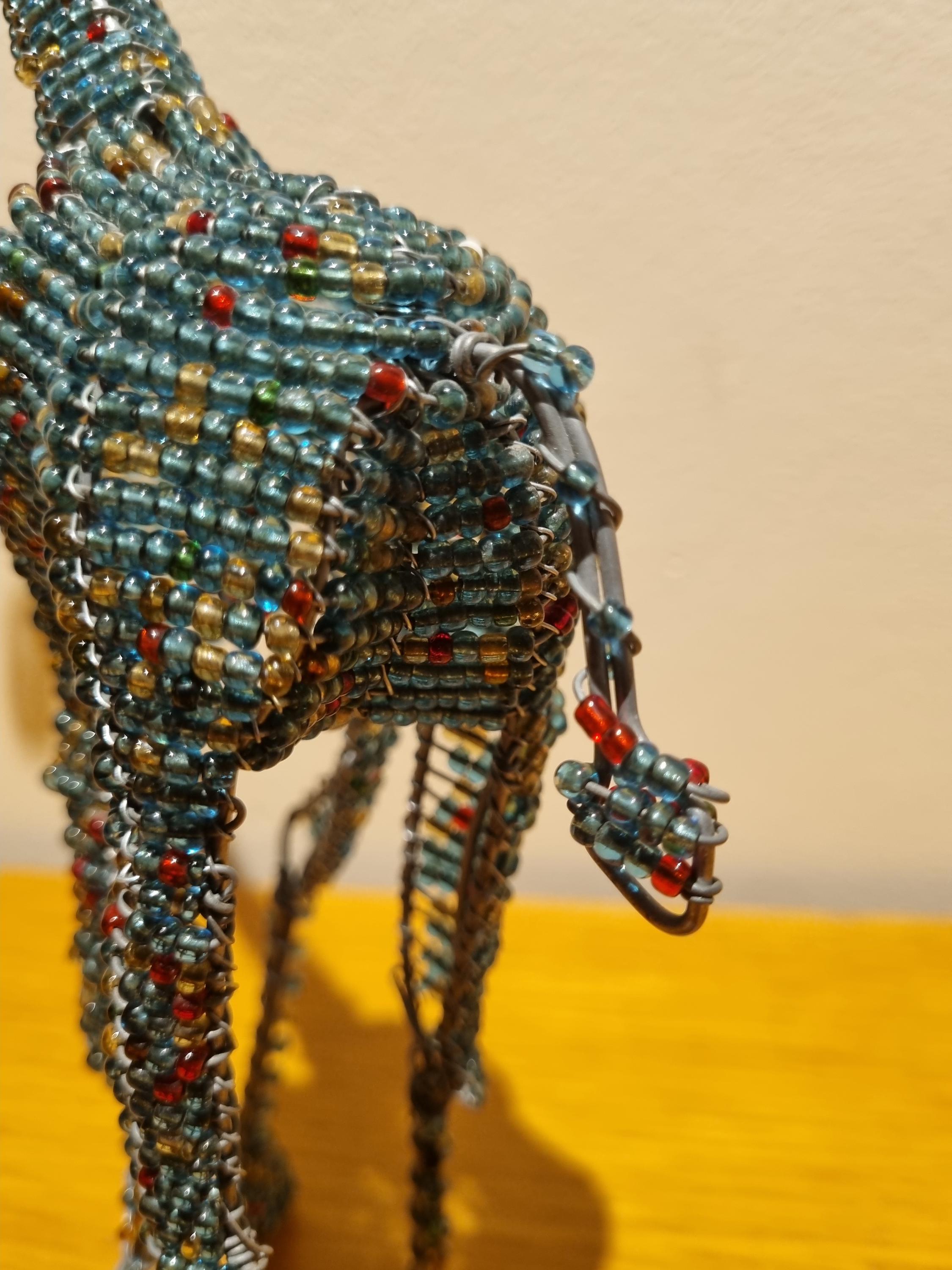 🦒 Multicolour Giraffe – Shimmering blue, red, and amber-toned glass beads for a vibrant, playful look.