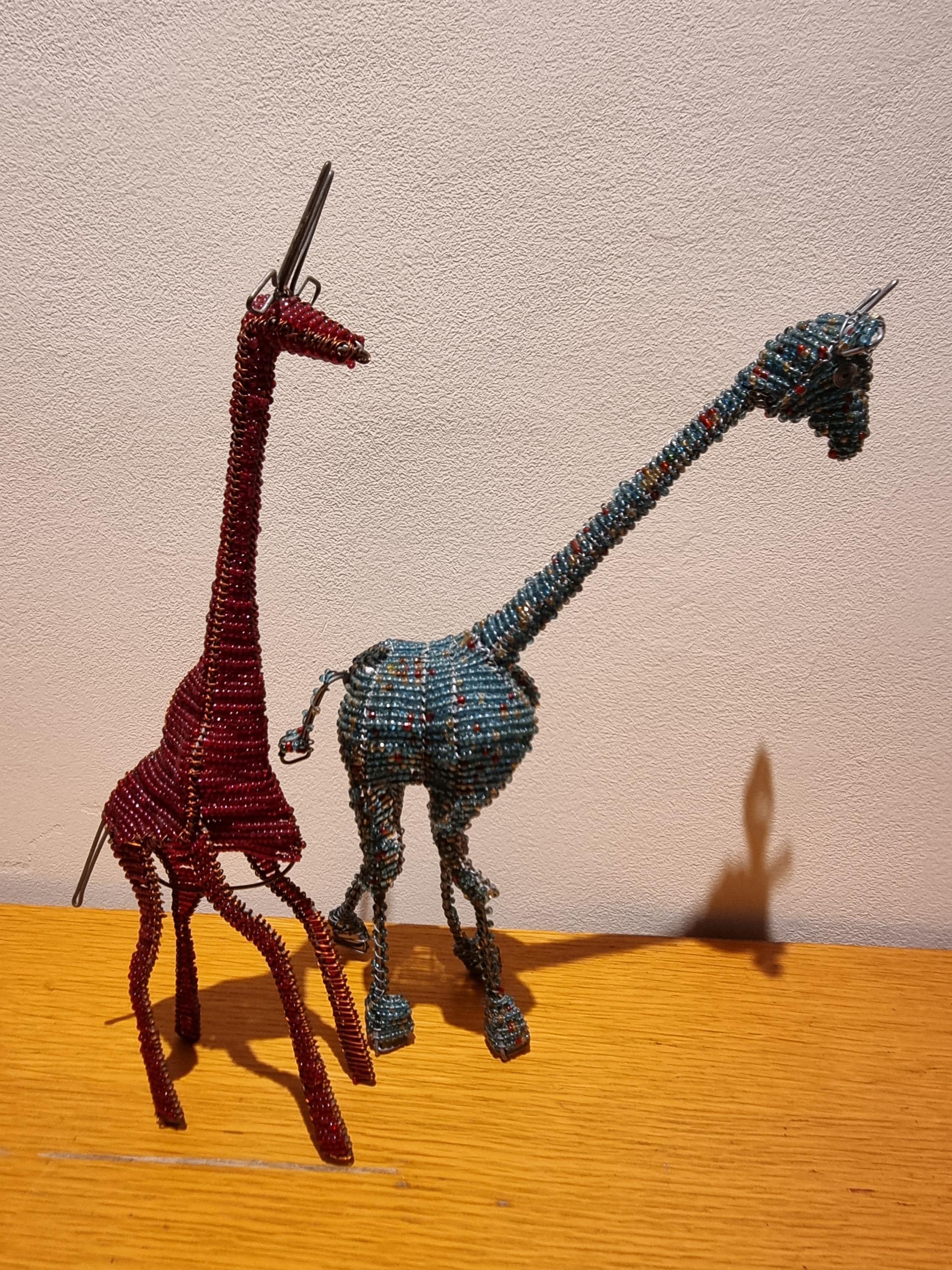Lovingly crafted from sturdy wire and sparkling glass beads, these giraffes make eye-catching decor for a shelf, desk, or mantle, and a thoughtful gift for wildlife lovers.
