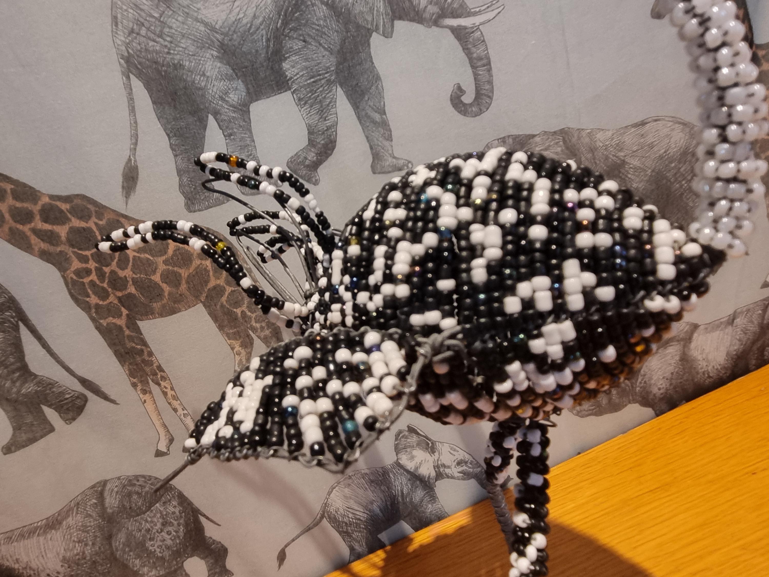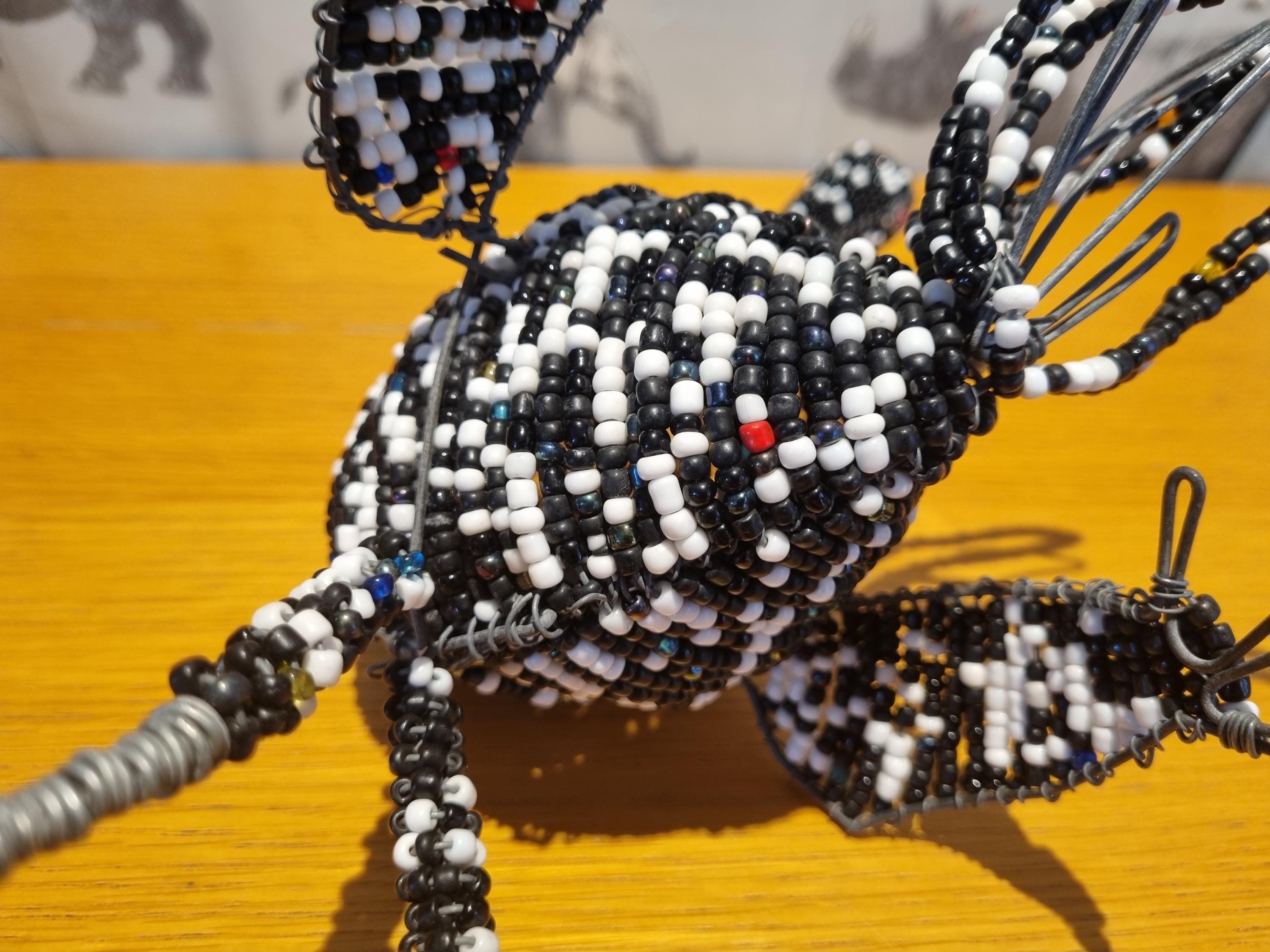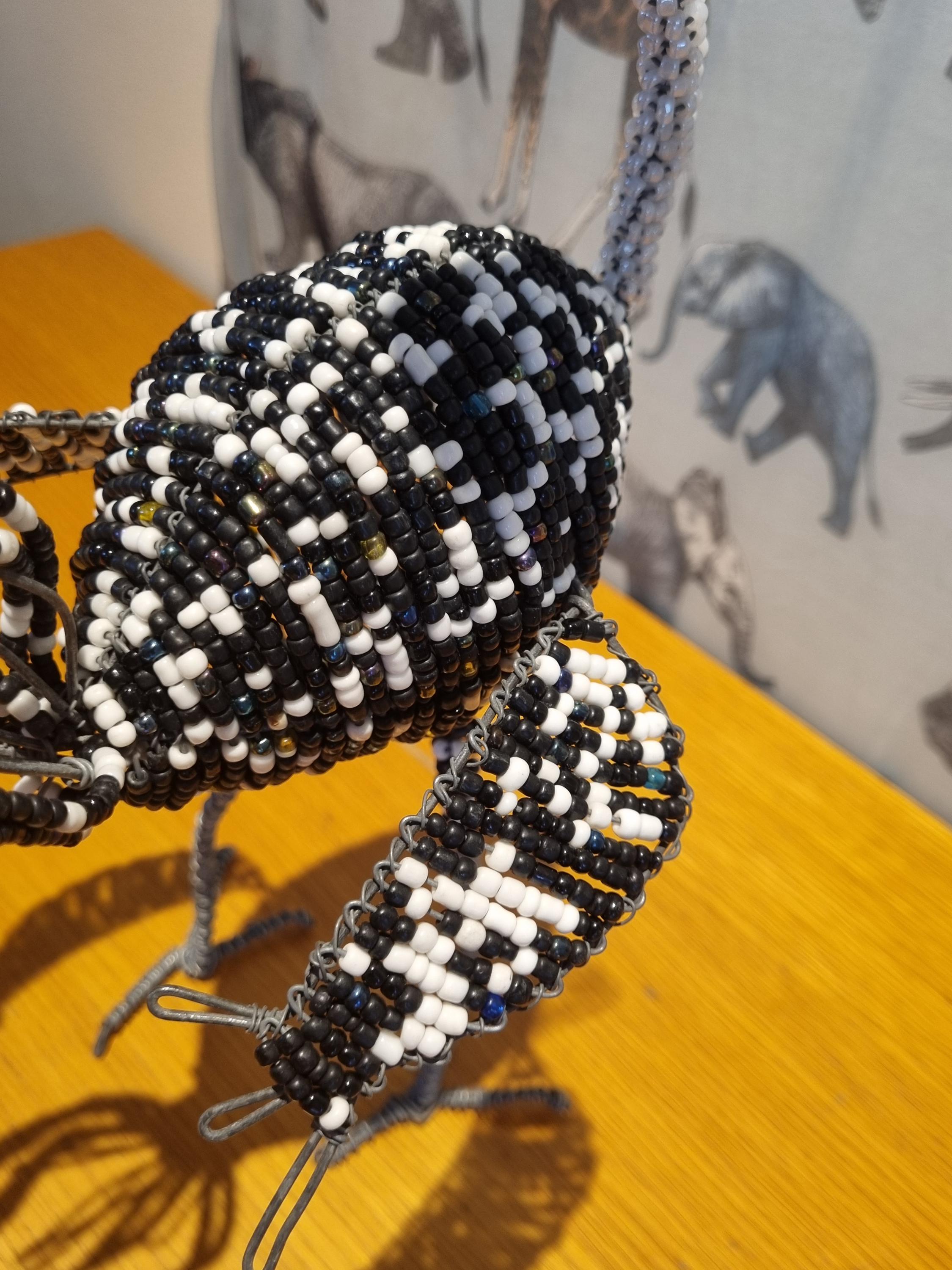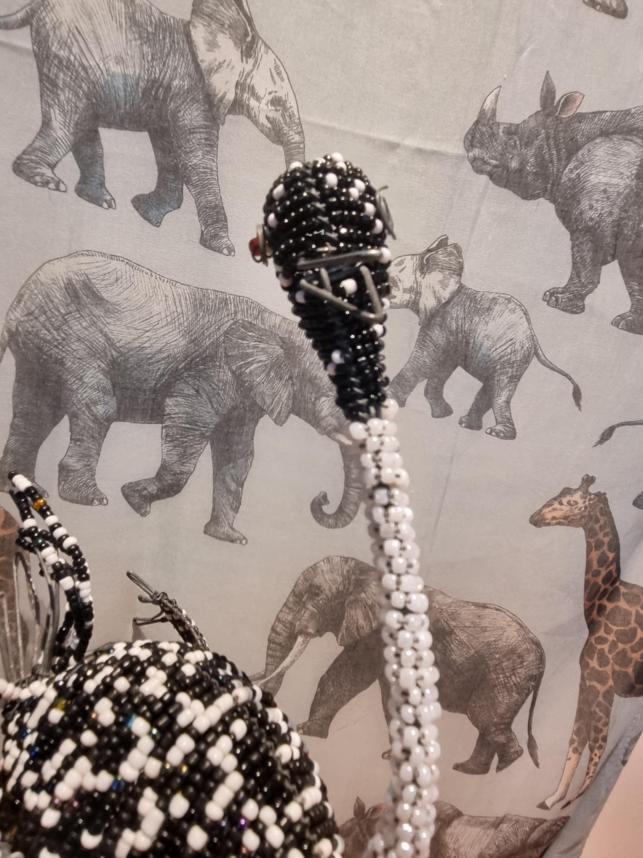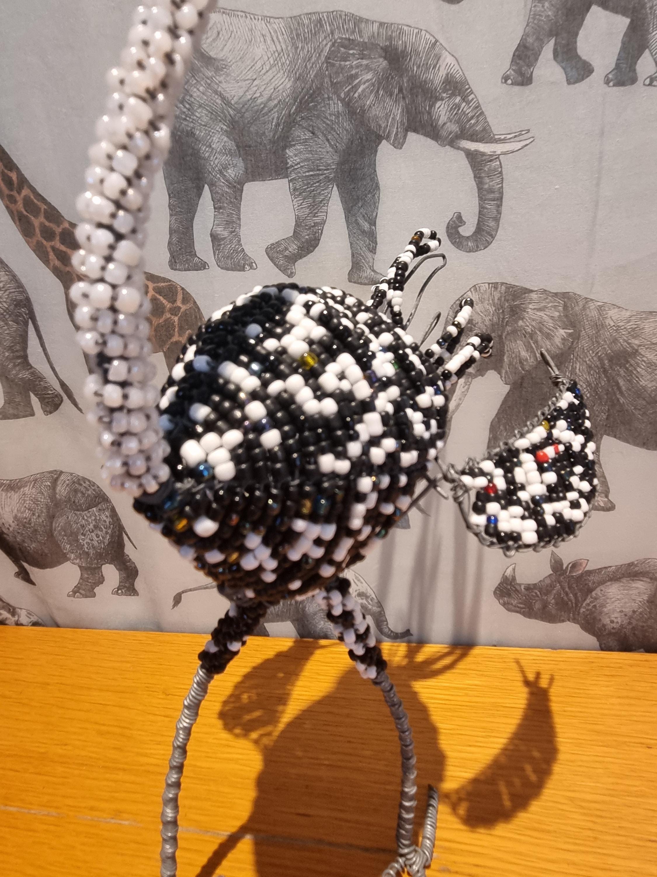 Celebrate the grace and wonder of Africa’s largest bird with this Black & White Beaded Ostrich Sculpture, a handcrafted marvel of artisan skill and sustainable creativity. Standing proudly at 37cm tall, this monochrome ostrich is meticulously made from recycled wire and glass seed beads by fair trade artisans in Southern Africa.