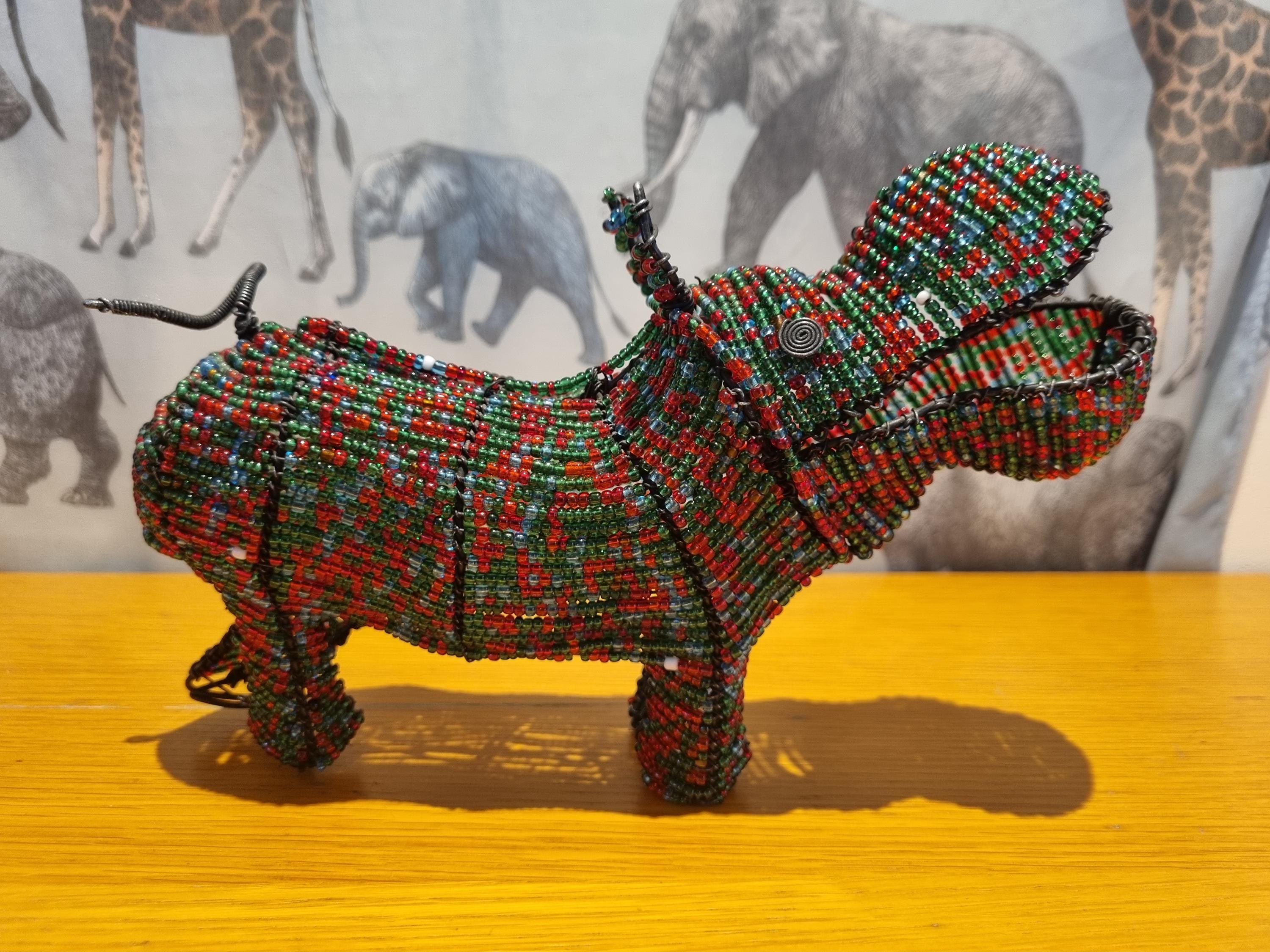 Crafted by skilled artisans using traditional beading techniques, this sculpture makes a meaningful ethical gift or a striking conversation piece for your shelf, windowsill or safari-themed display.