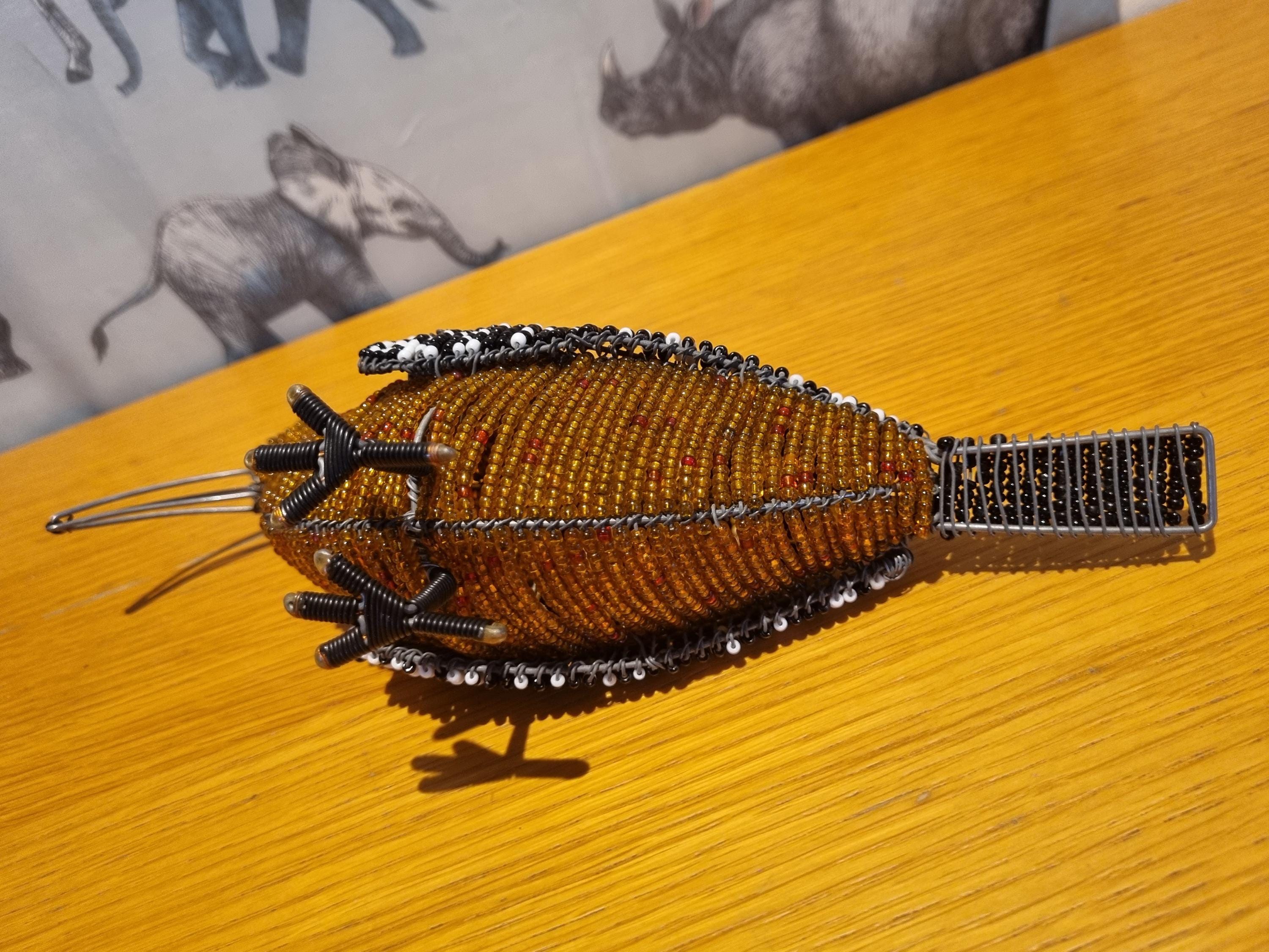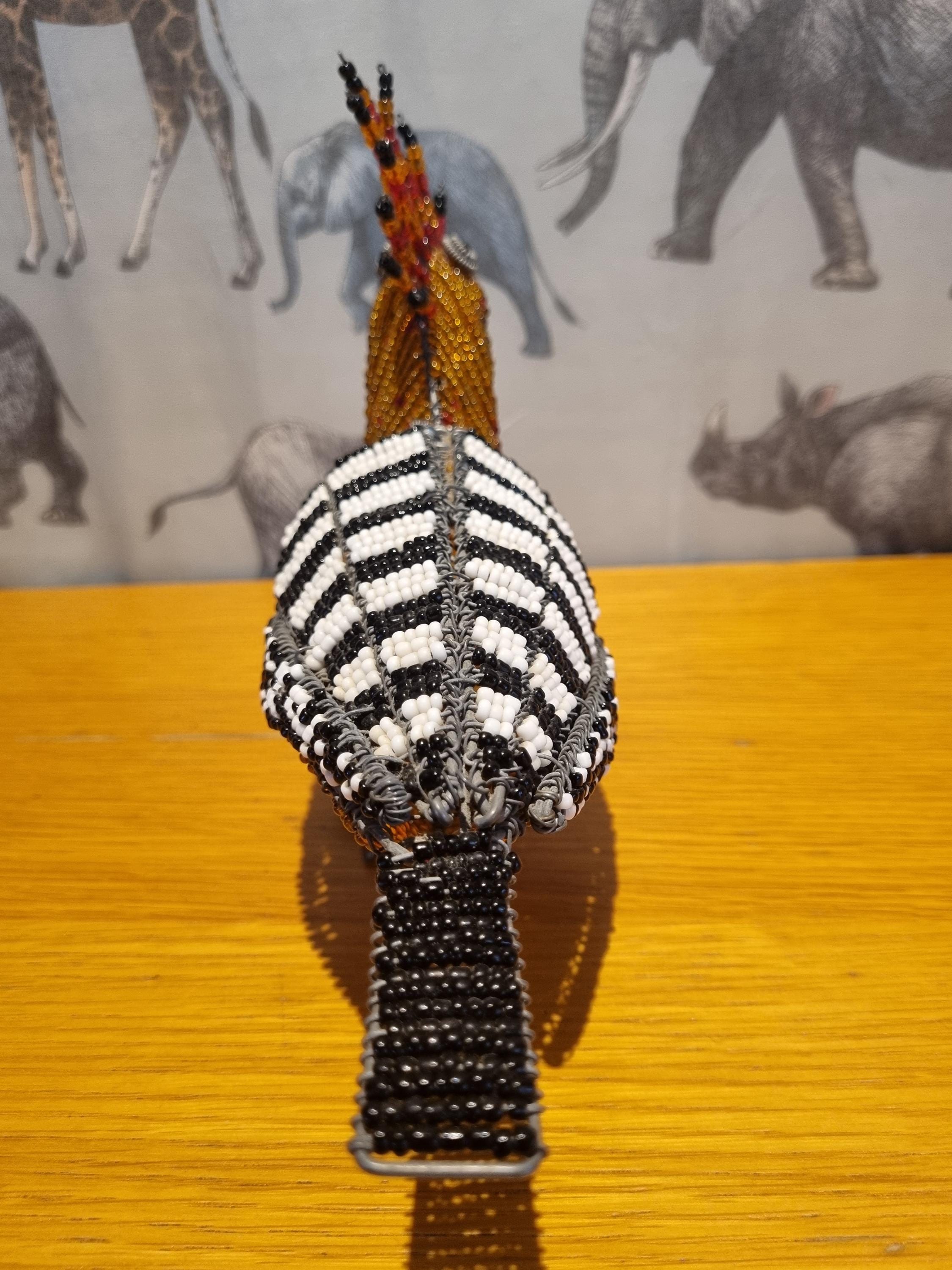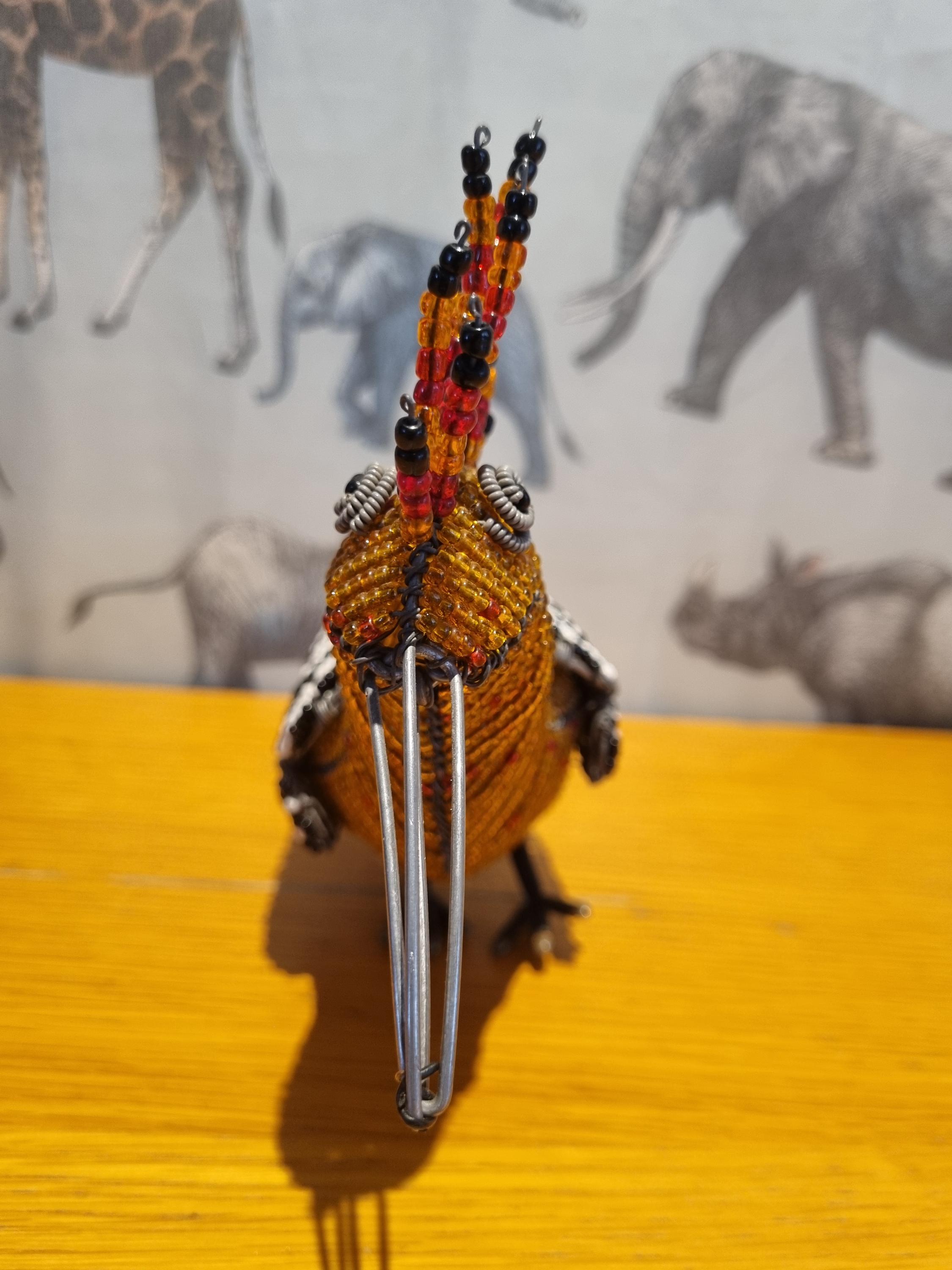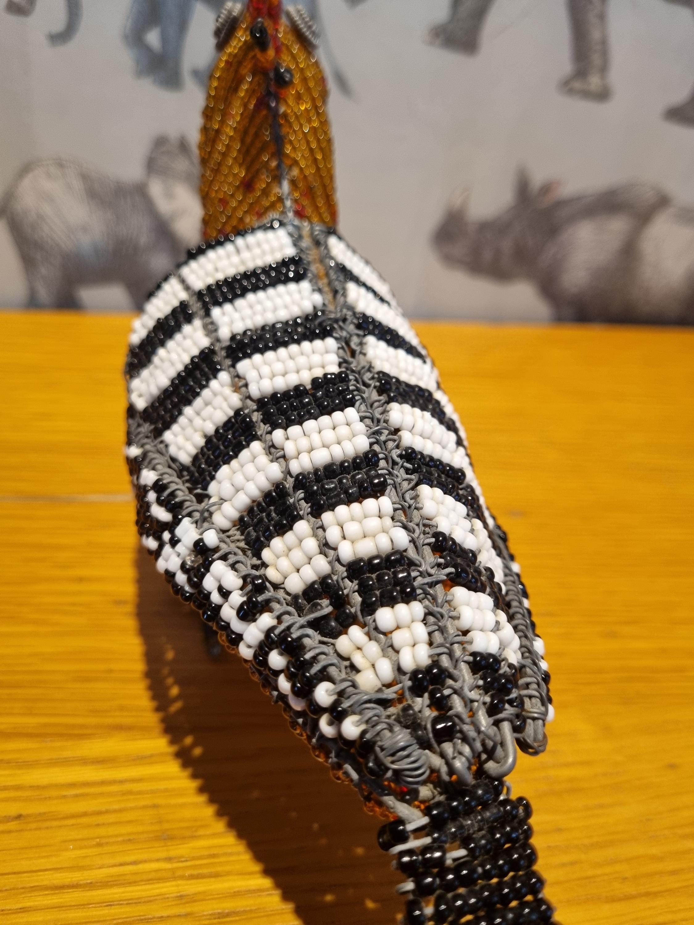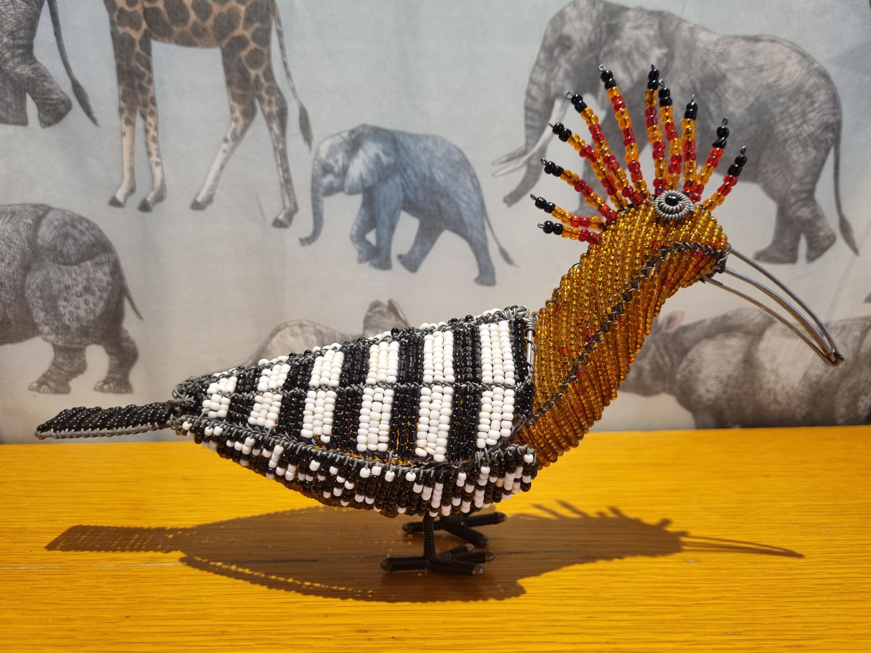Celebrate one of nature’s most striking birds with this beautiful handmade beaded Hoopoe sculpture, crafted with skill and care by talented artisans in Southern Africa. Featuring the iconic crown of the Hoopoe and its distinctive colouring, this wire and bead artwork is a bold and characterful addition to any home.