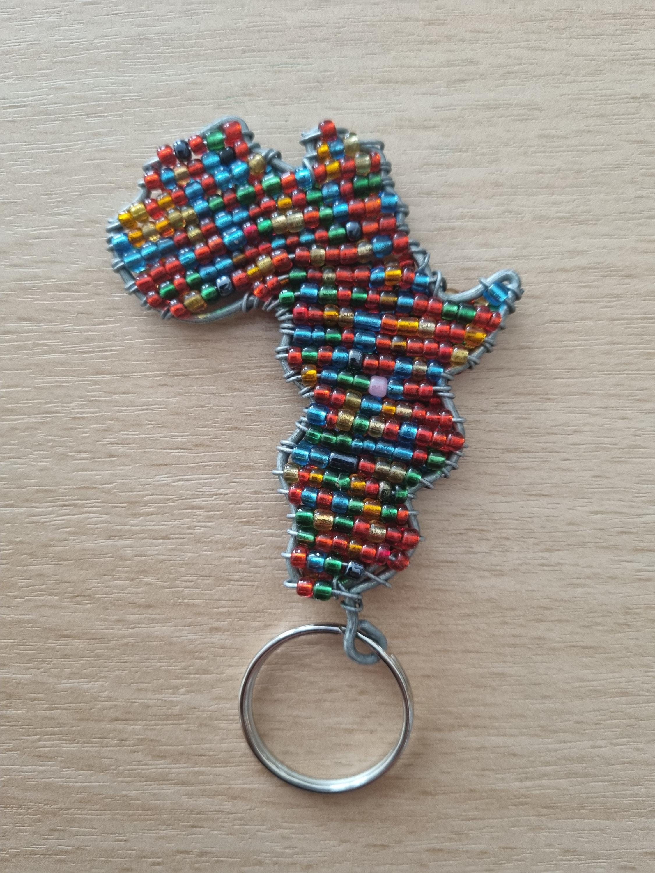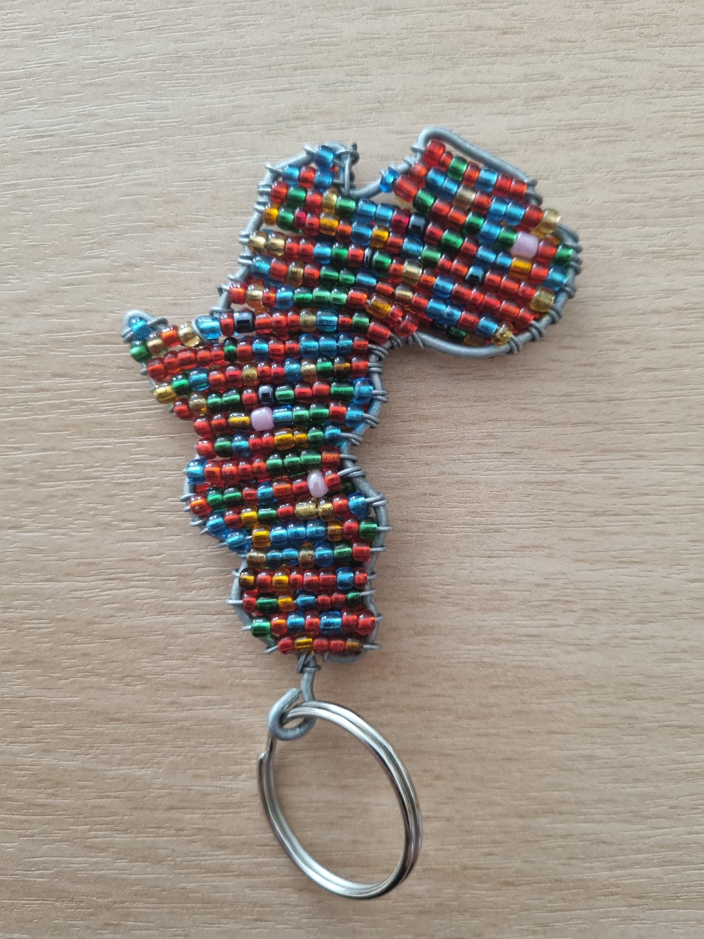 Each keyring is individually handmade by skilled artisans using traditional beading and wire techniques passed down through generations. The contours of the continent are shaped with care and attention, and the colourful beadwork adds charm and personality to a functional, everyday item.