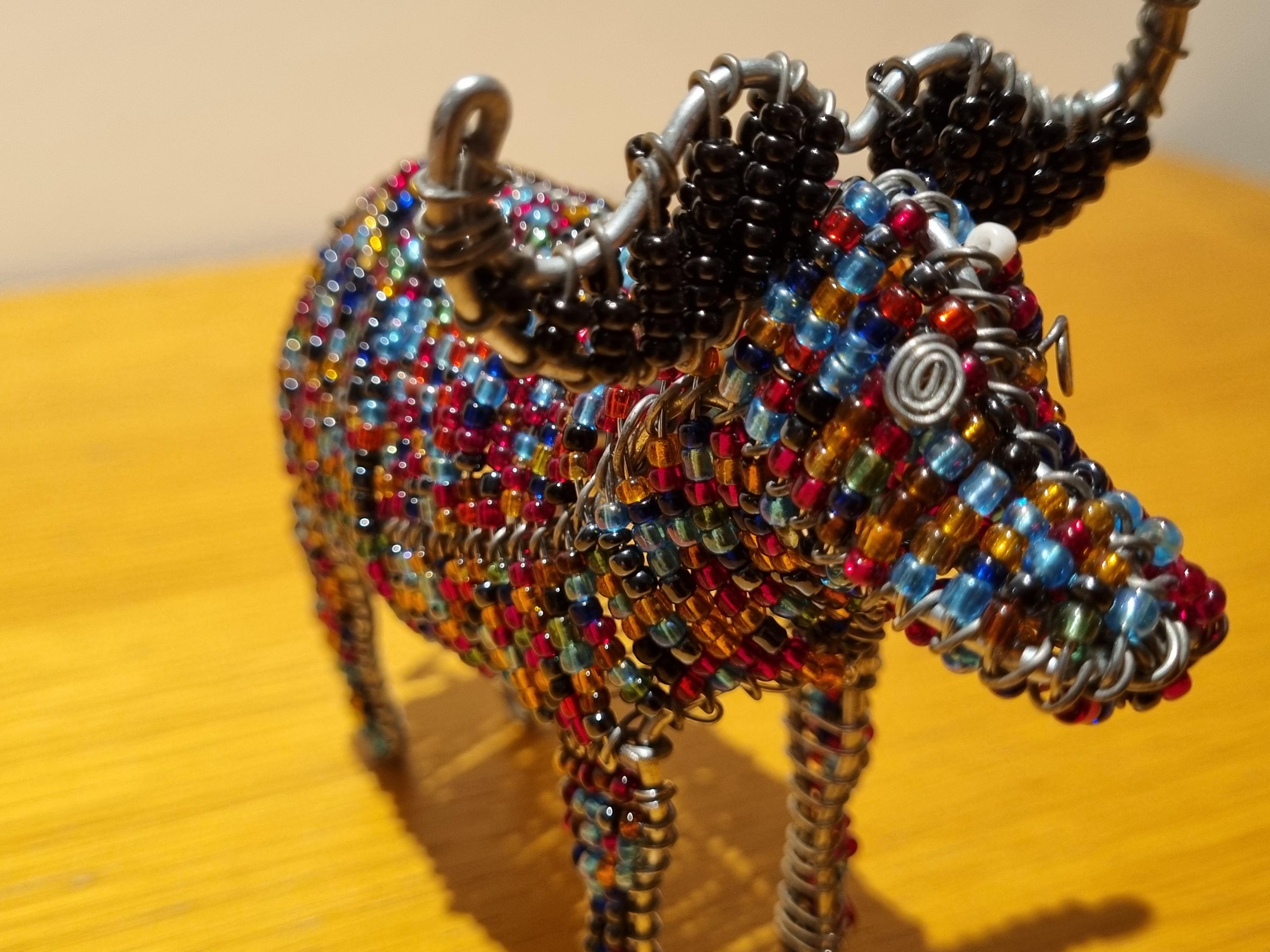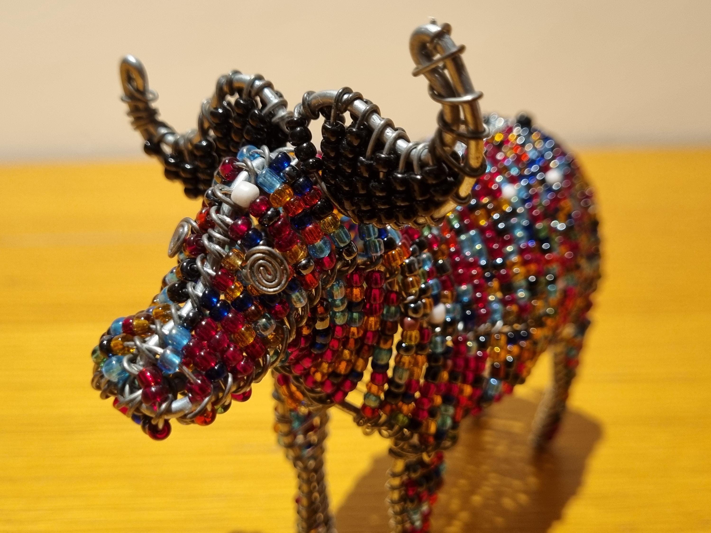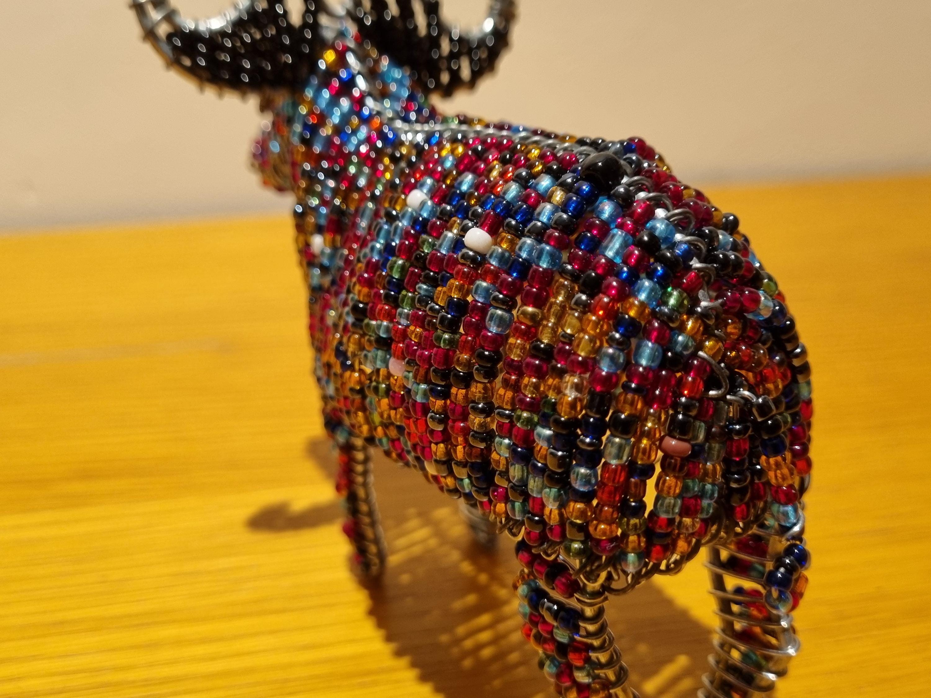 Bring the beauty of African wildlife into your home with this handmade beaded sculpture.