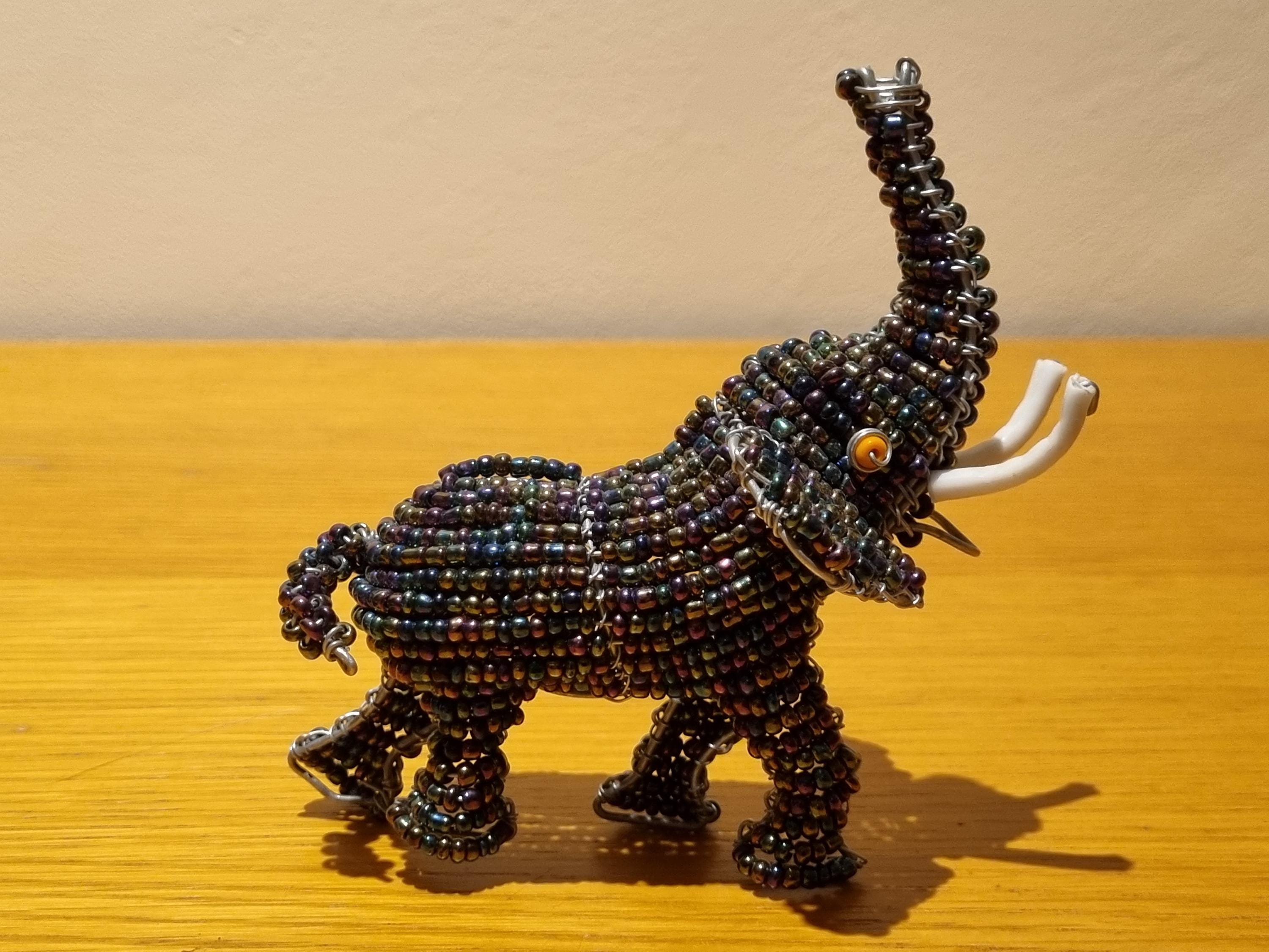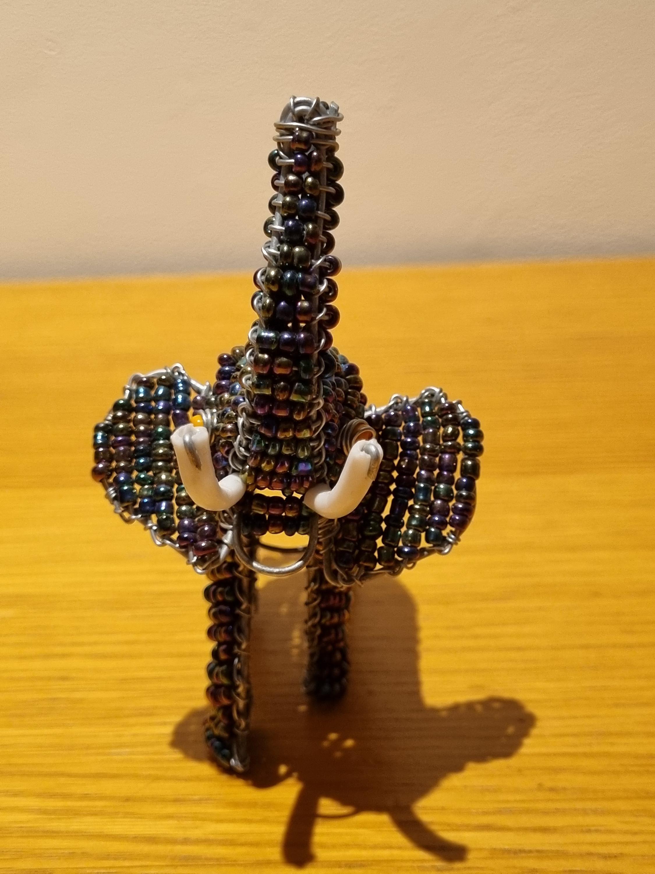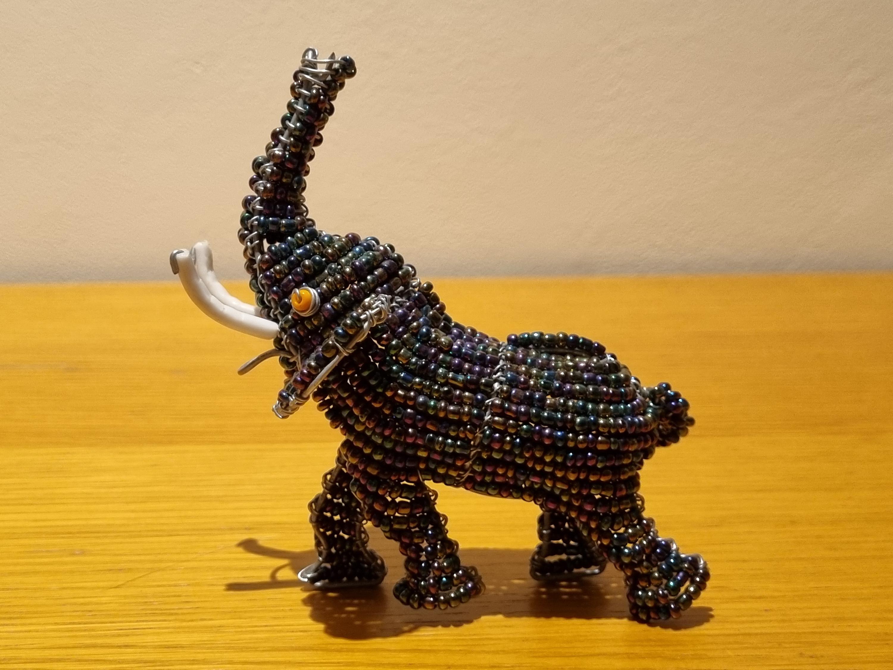 Bring the beauty of African wildlife into your home with this handmade beaded elephant sculpture.