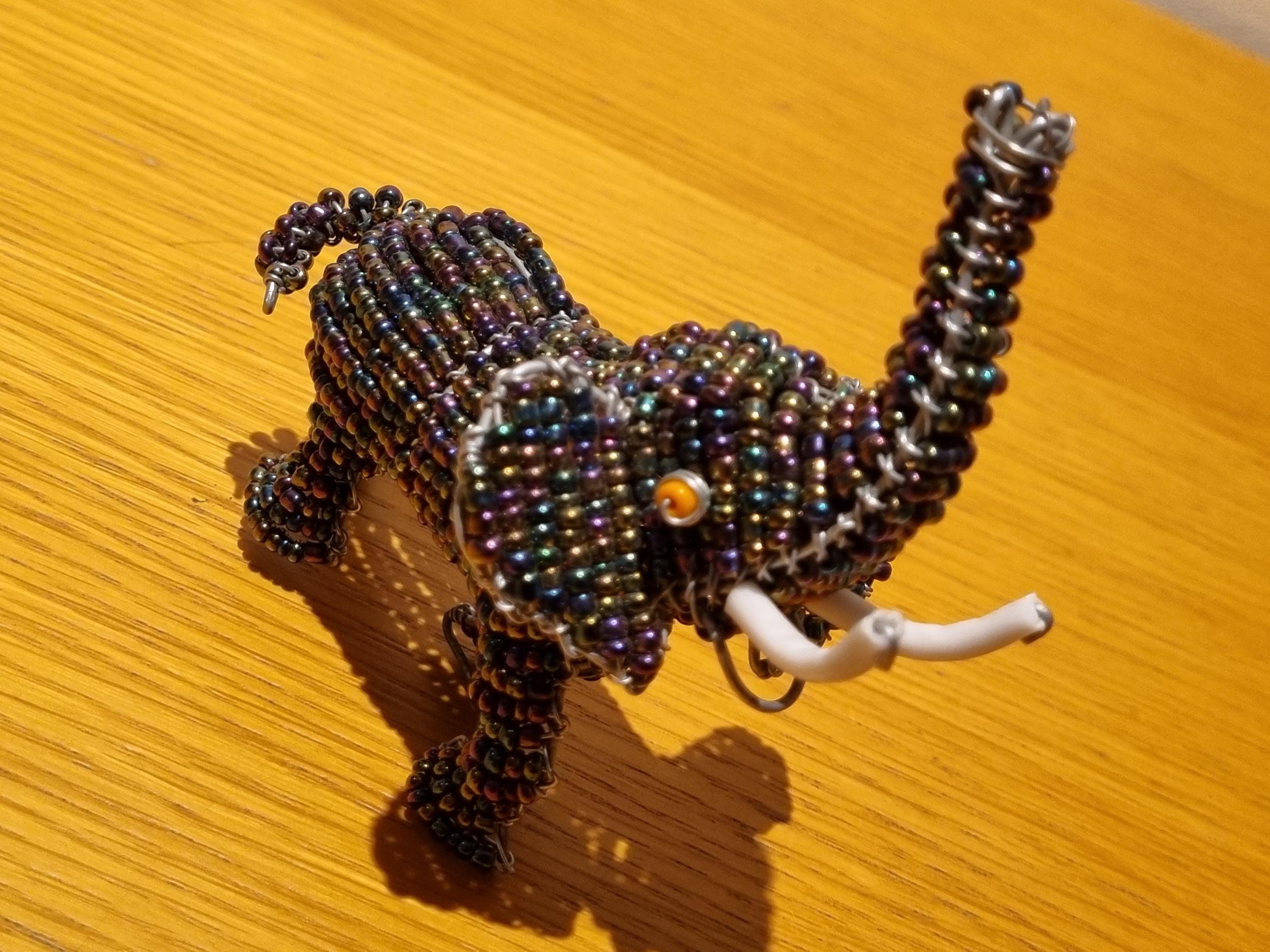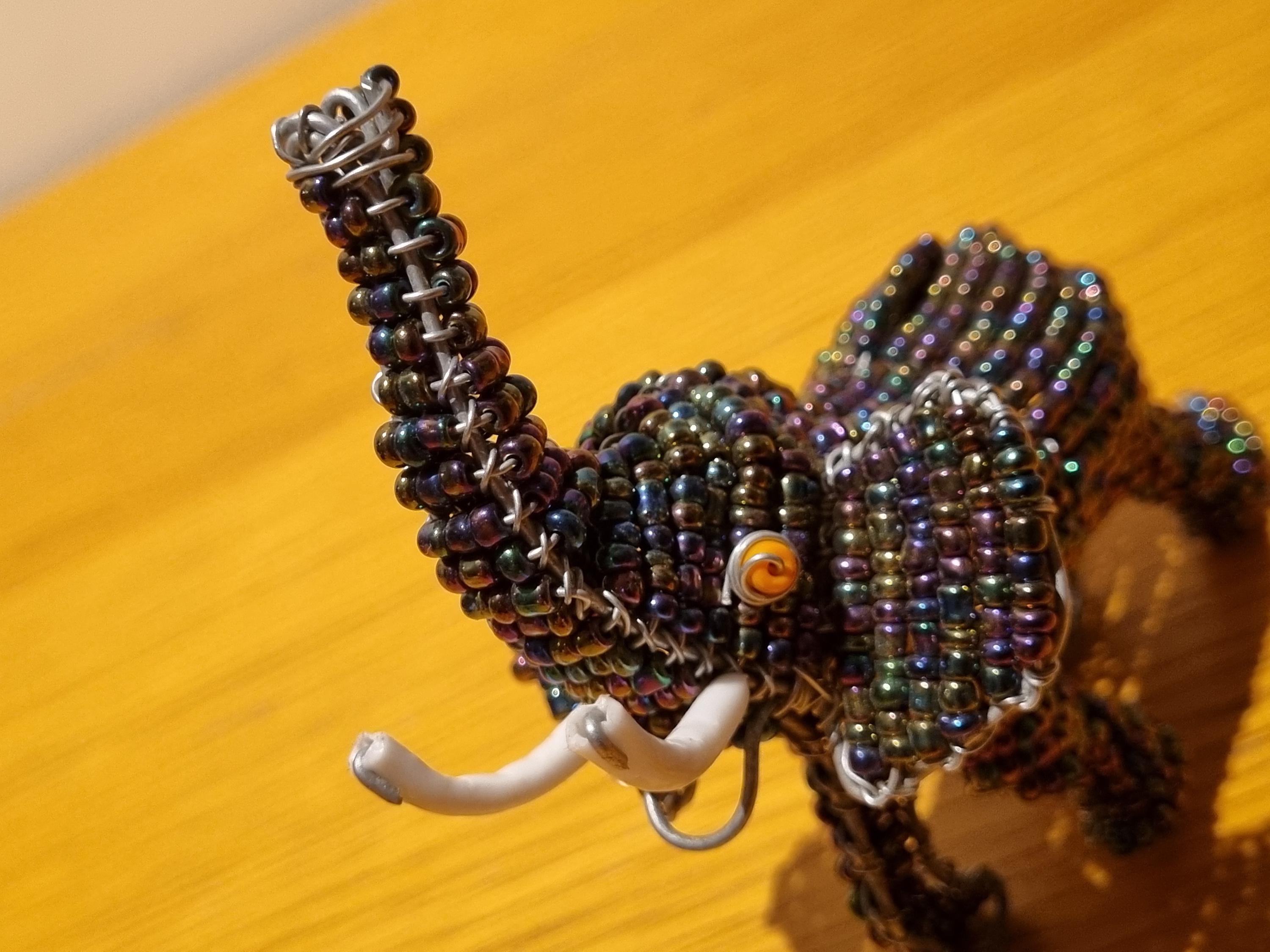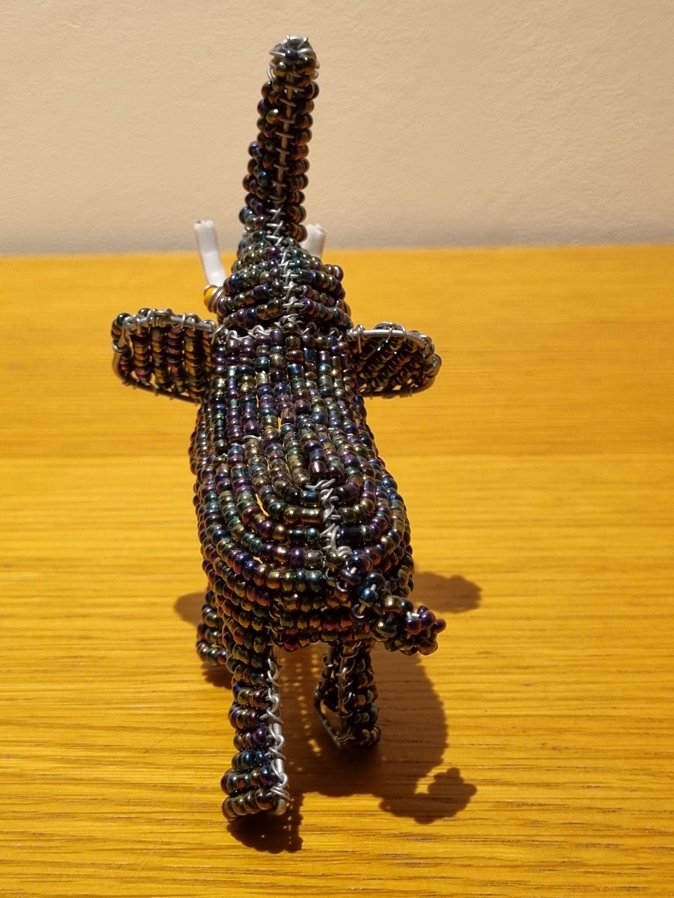 Bring the beauty of African wildlife into your home with this handmade beaded elephant sculpture.