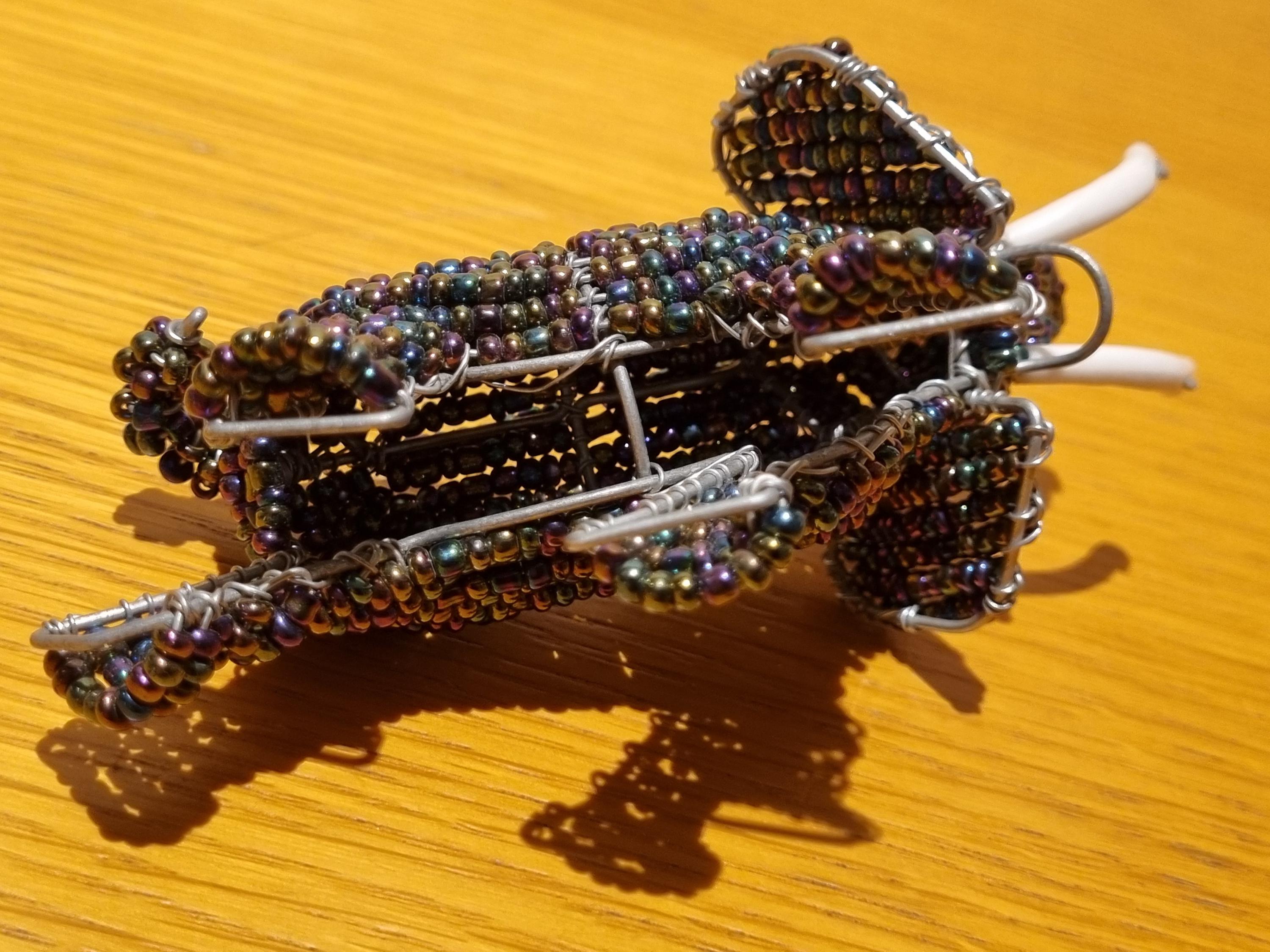 Beaded African Wild Dog Sculpture: Handmade Wire & Glass Bead Art