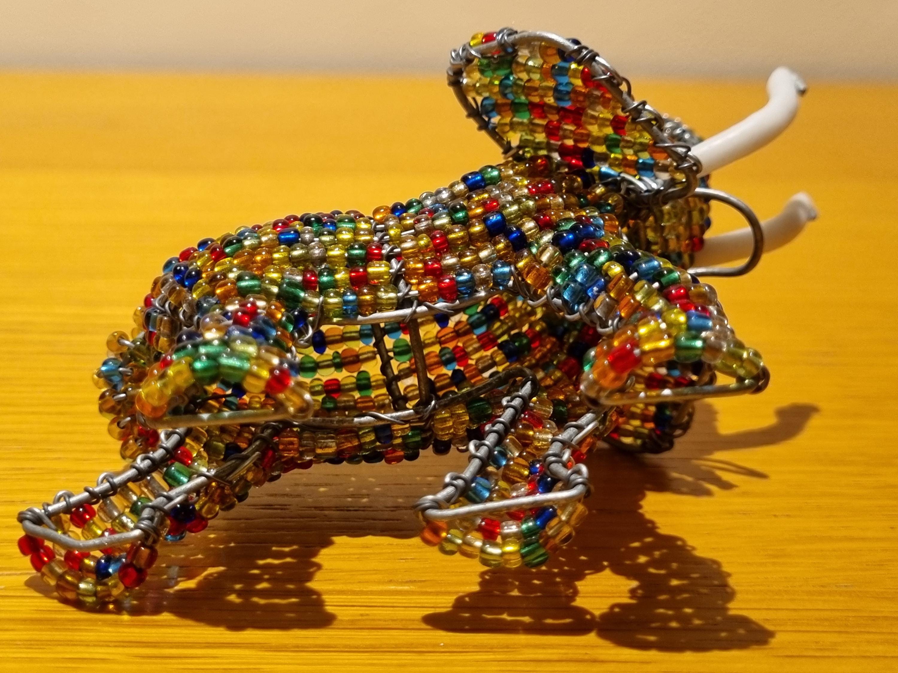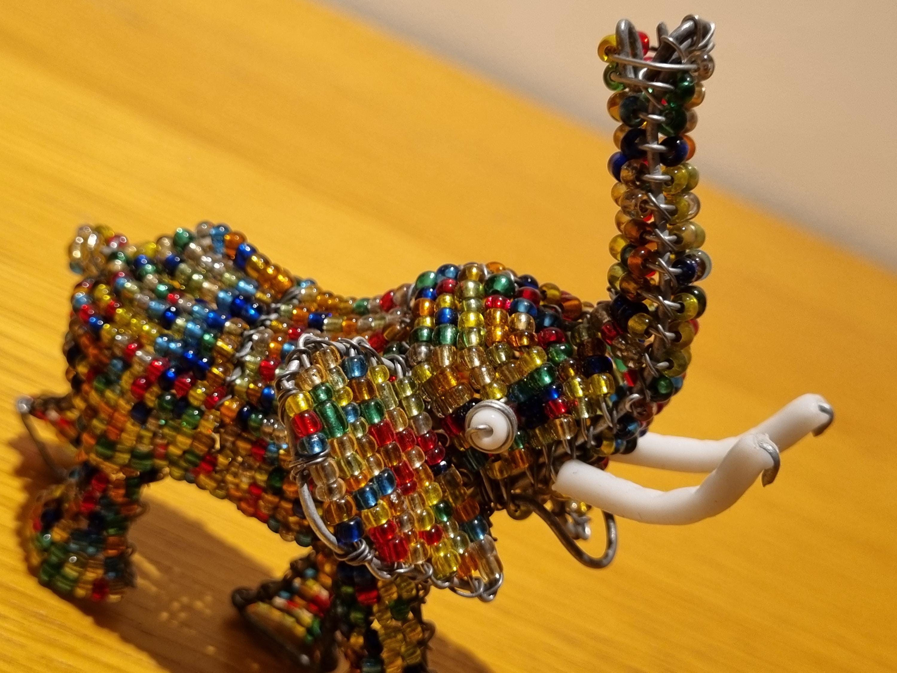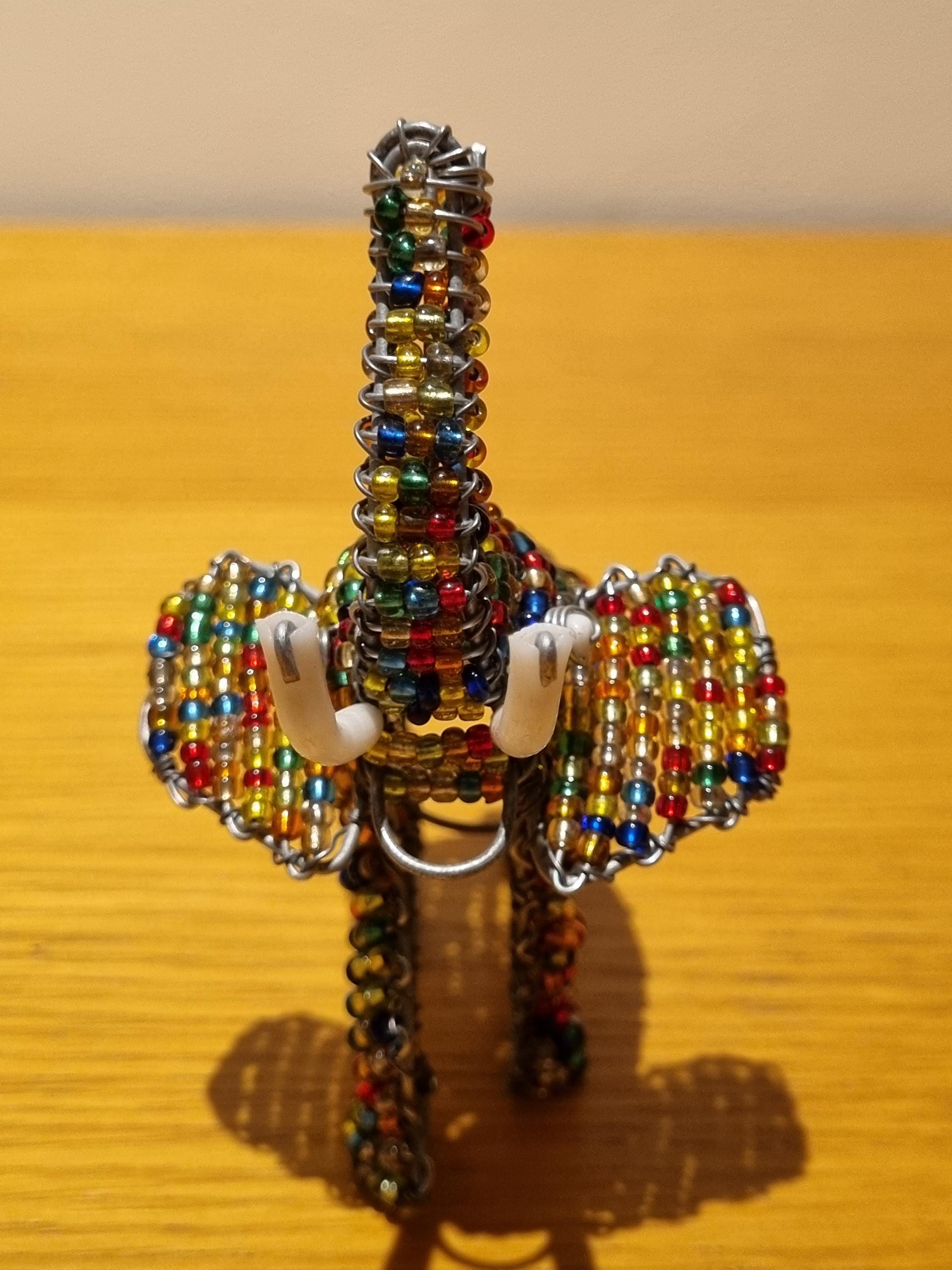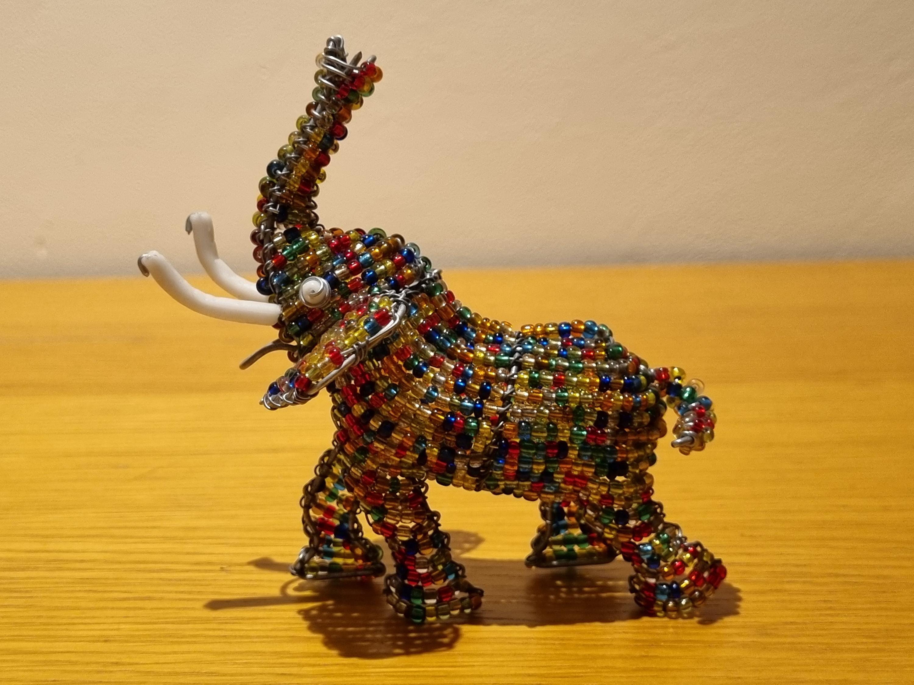 Bring the beauty of African wildlife into your home with this handmade beaded elephant sculpture.