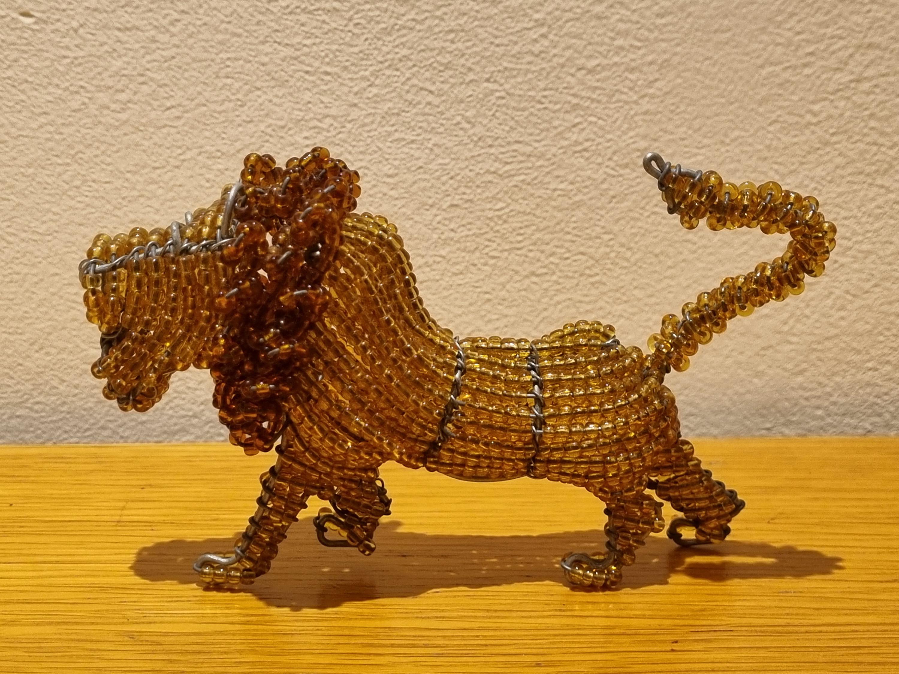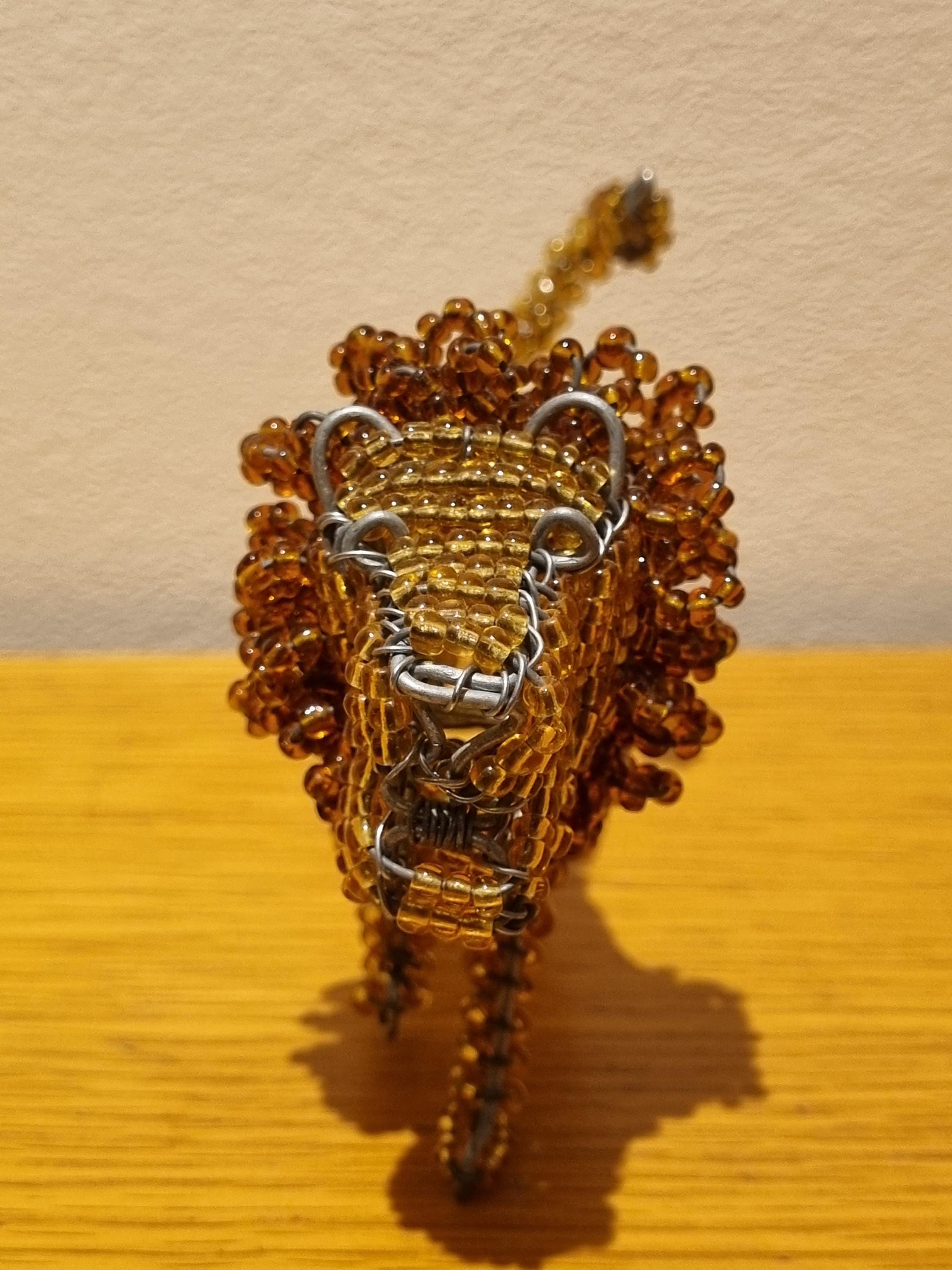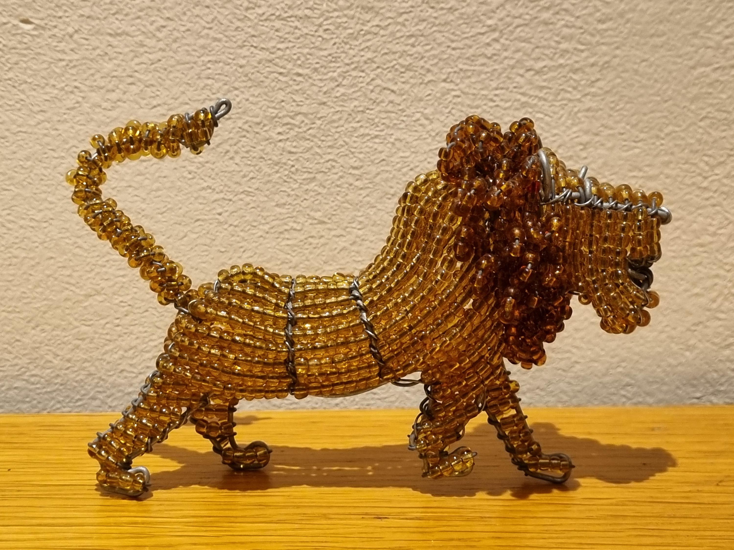 Bring the beauty of African wildlife into your home with this handmade beaded lion sculpture.