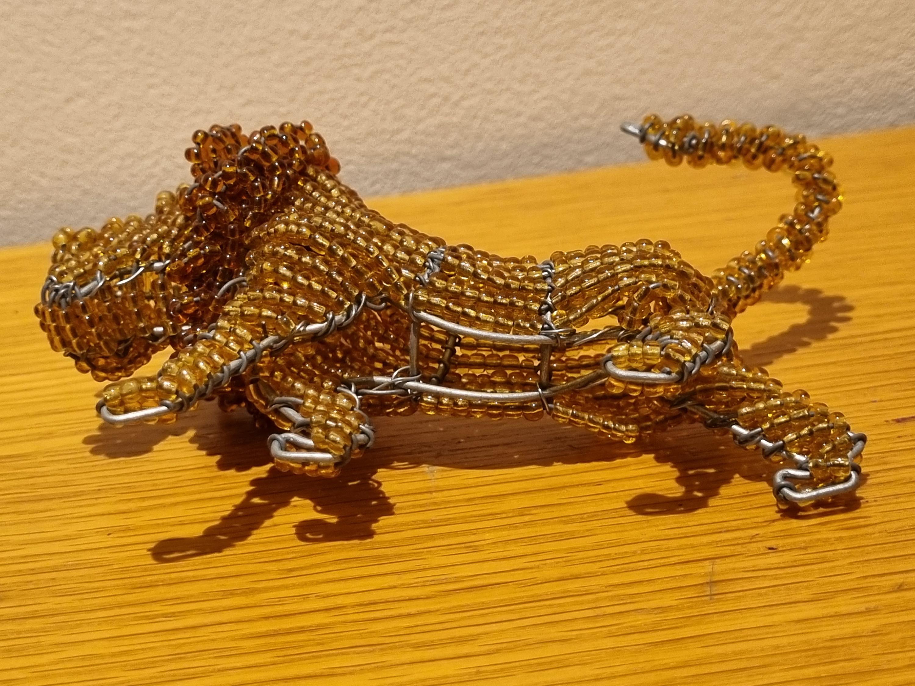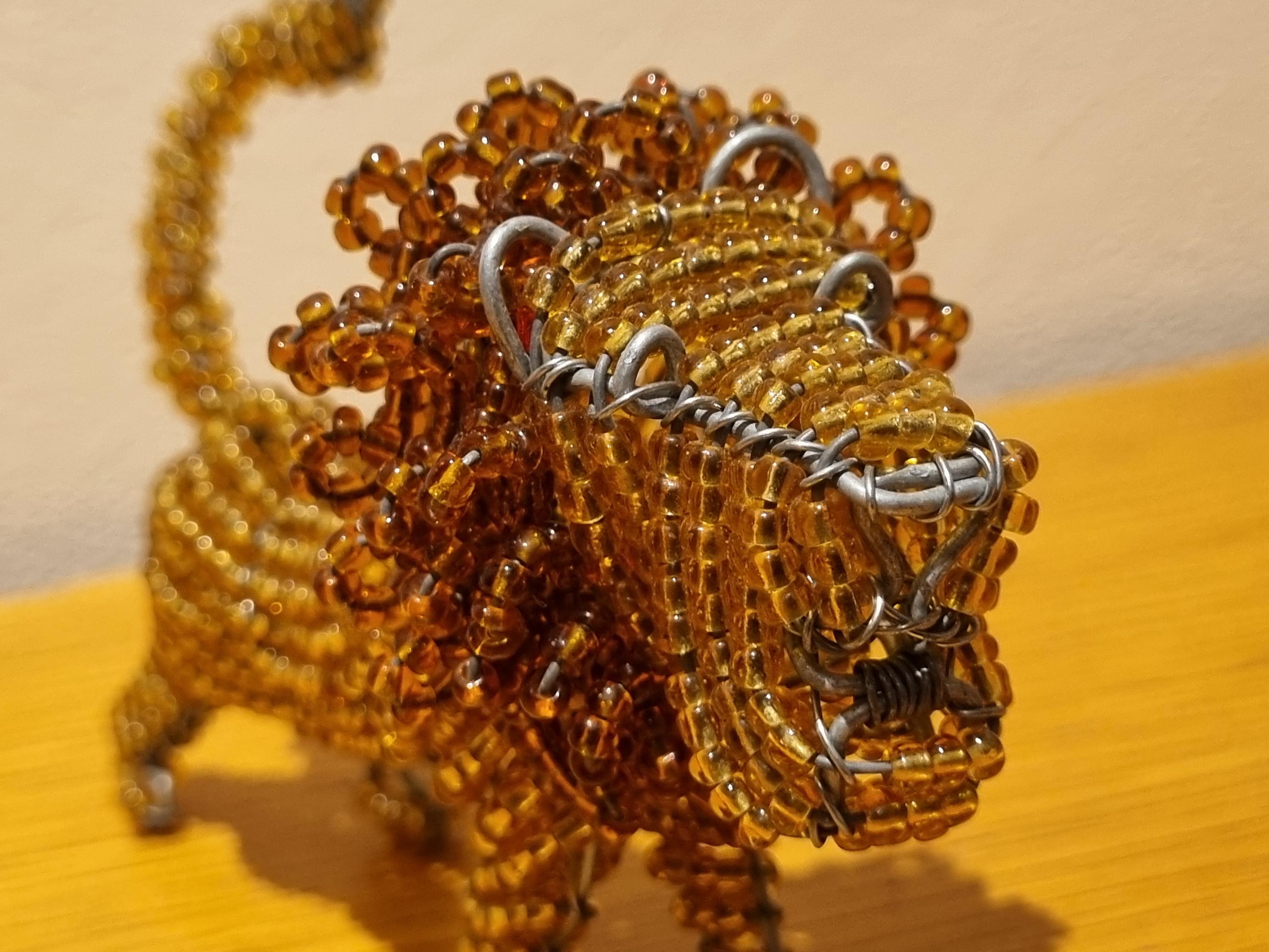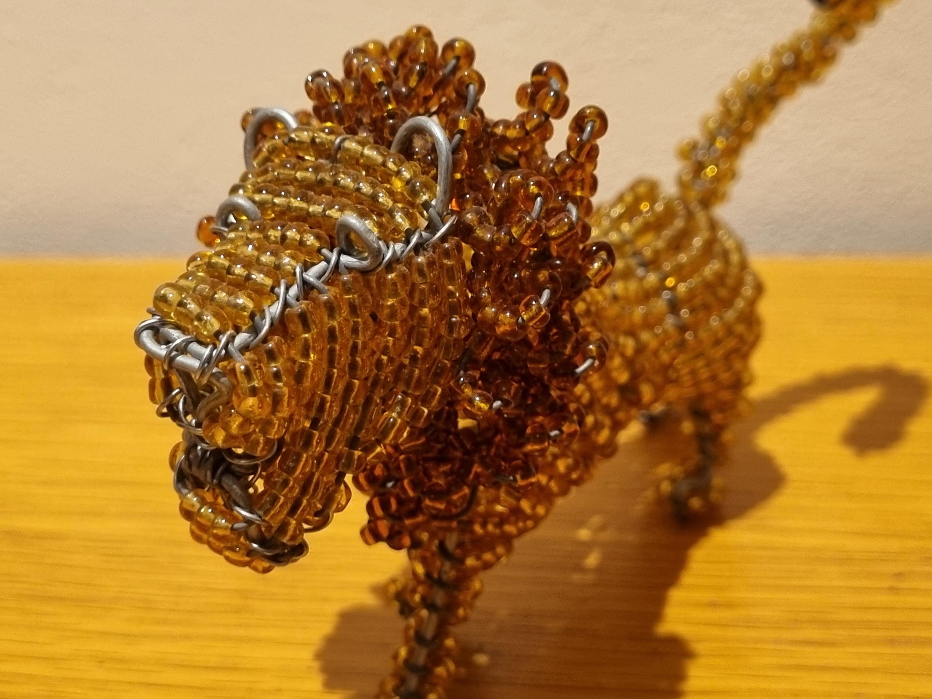 Bring the beauty of African wildlife into your home with this handmade beaded lion sculpture.
