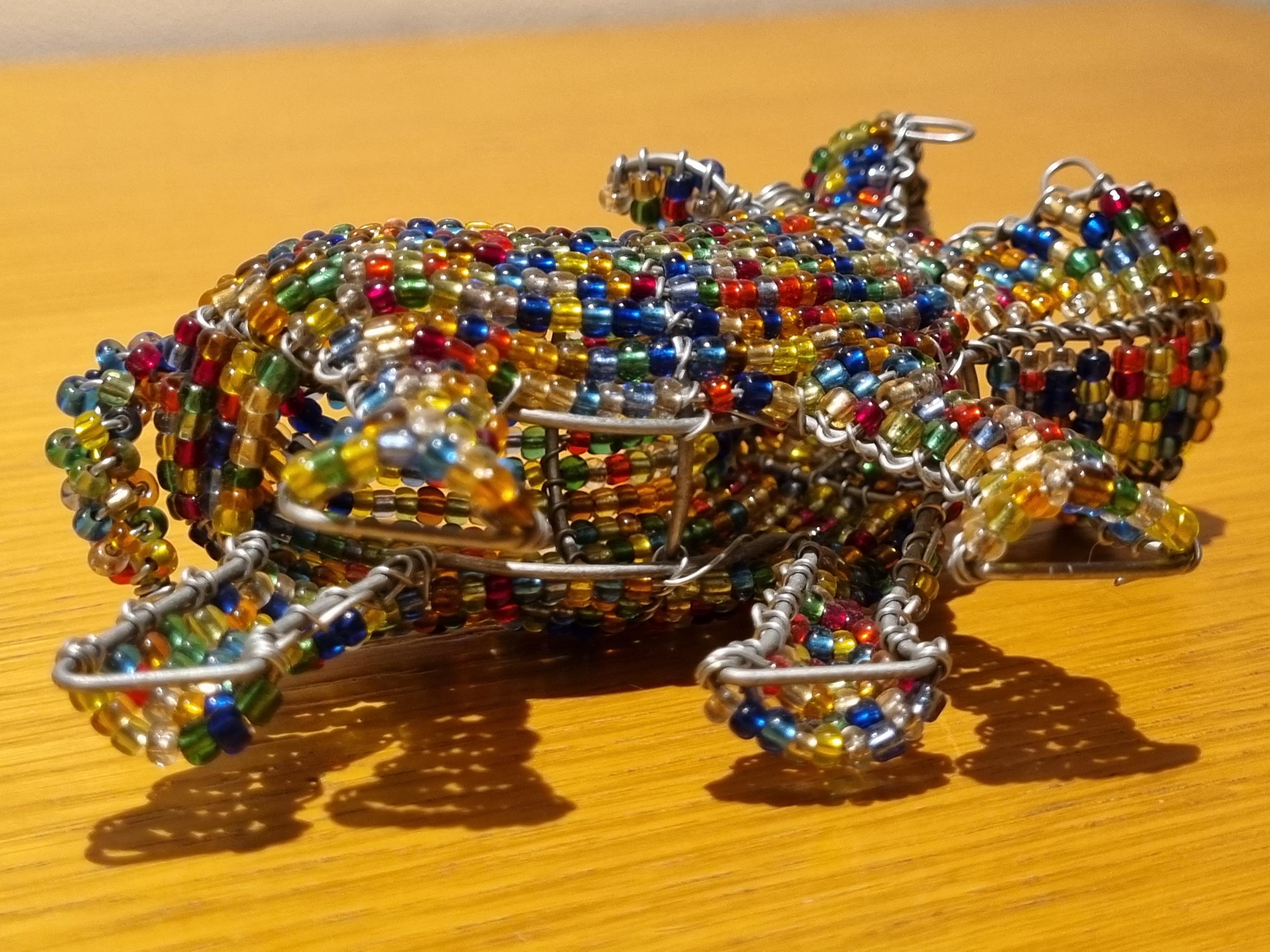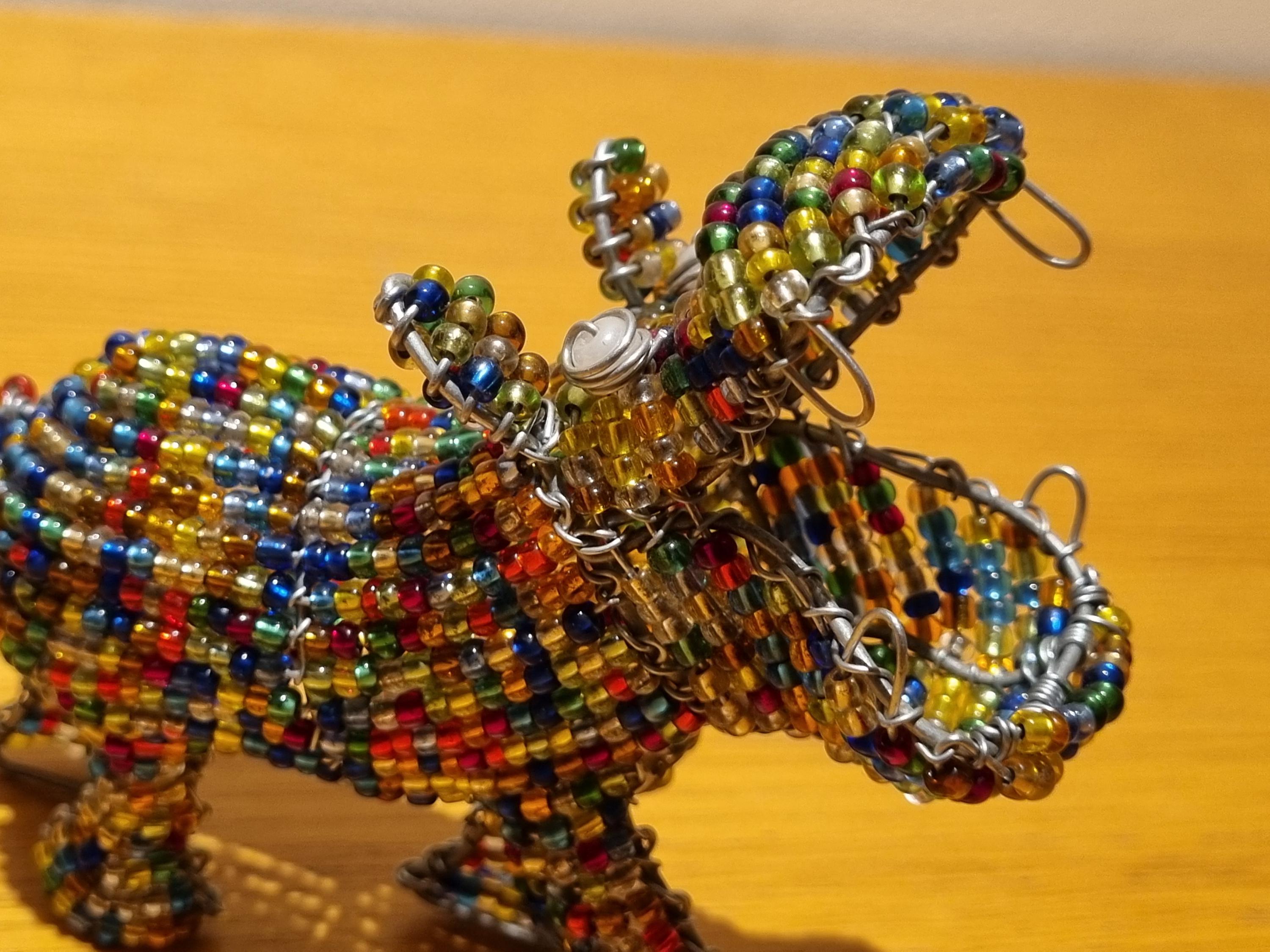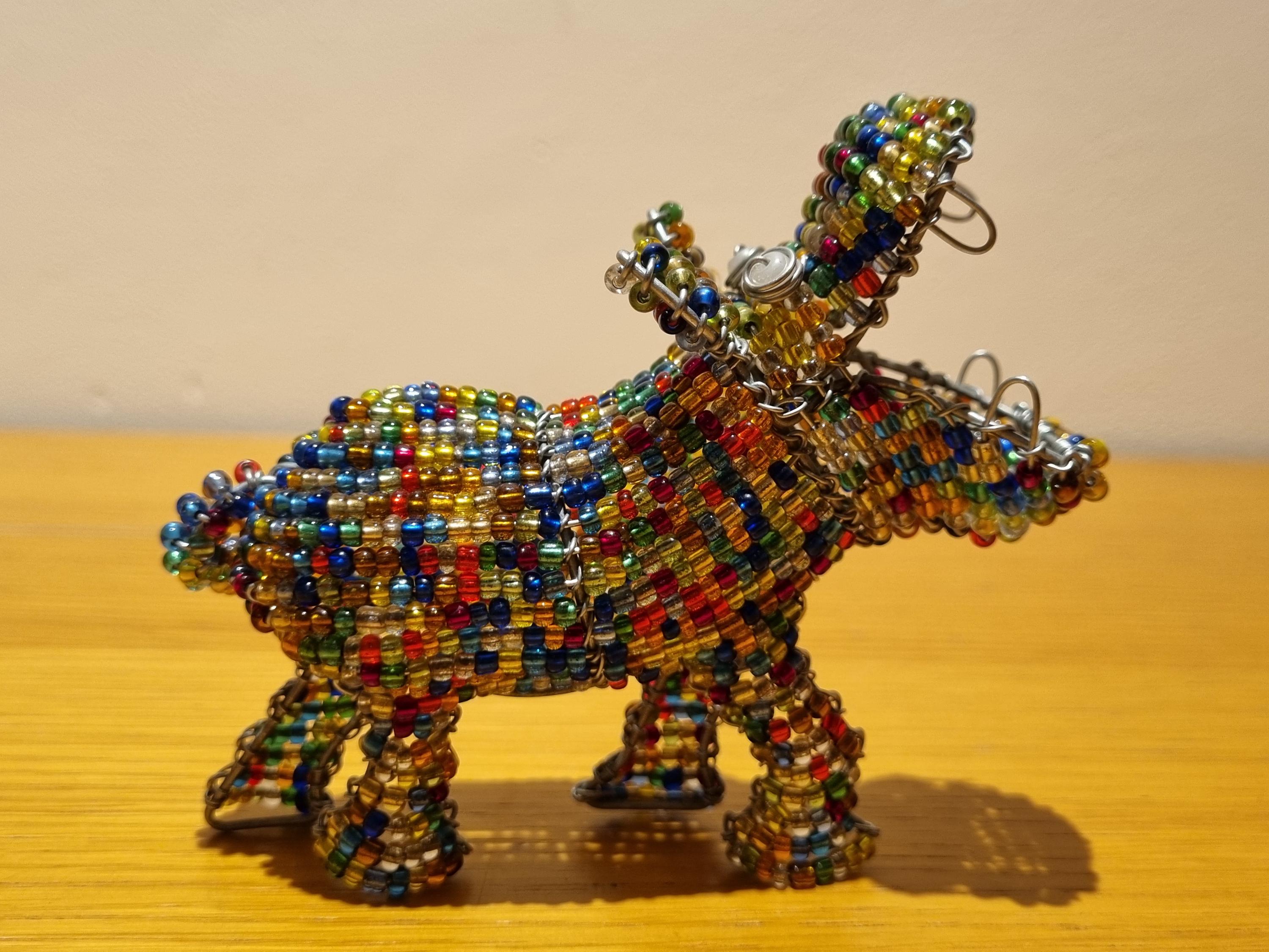 Bring a touch of vibrant craftsmanship into your home with this handmade beaded hippo sculpture.