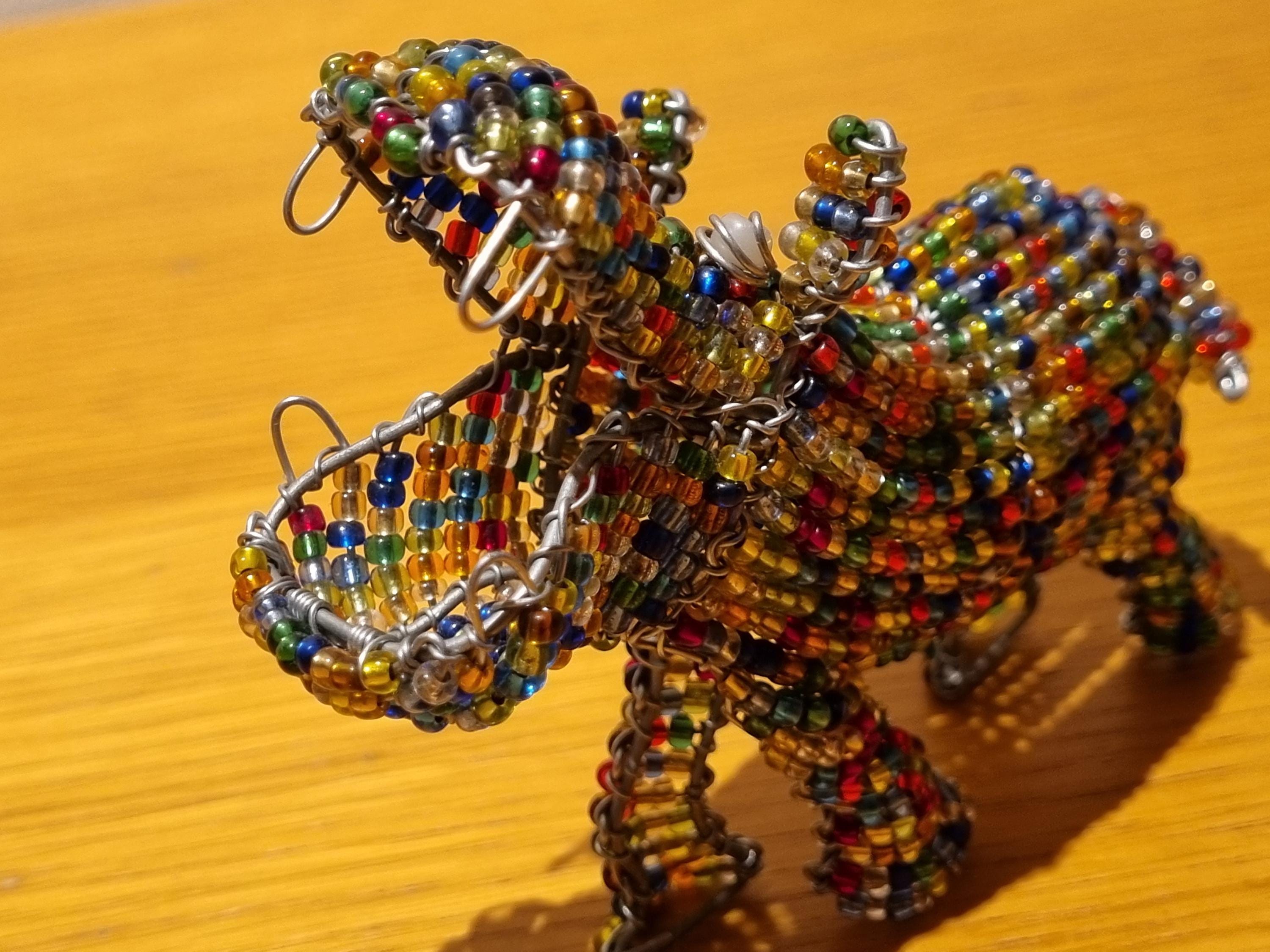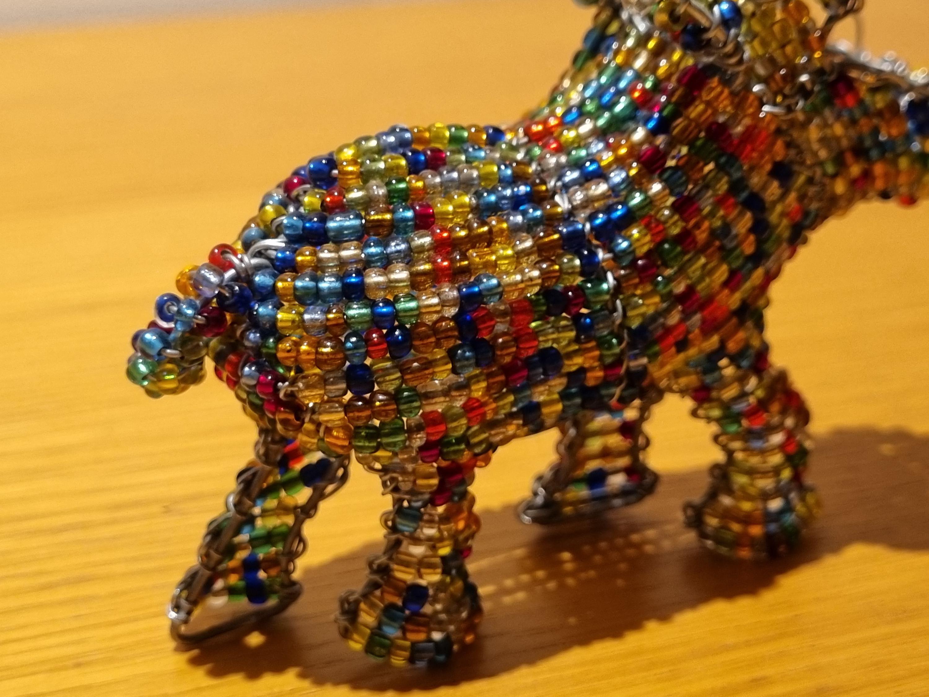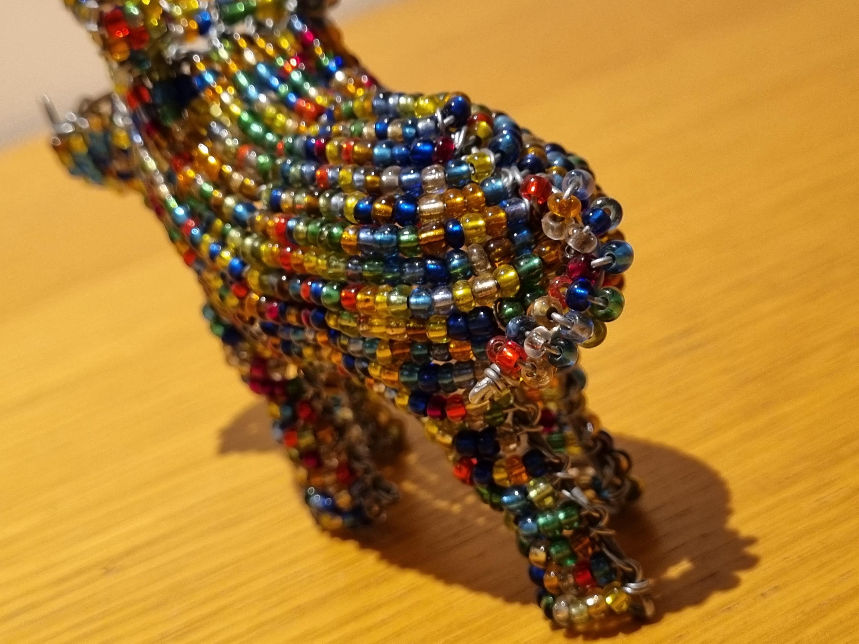 Bring a touch of vibrant craftsmanship into your home with this handmade beaded hippo sculpture.