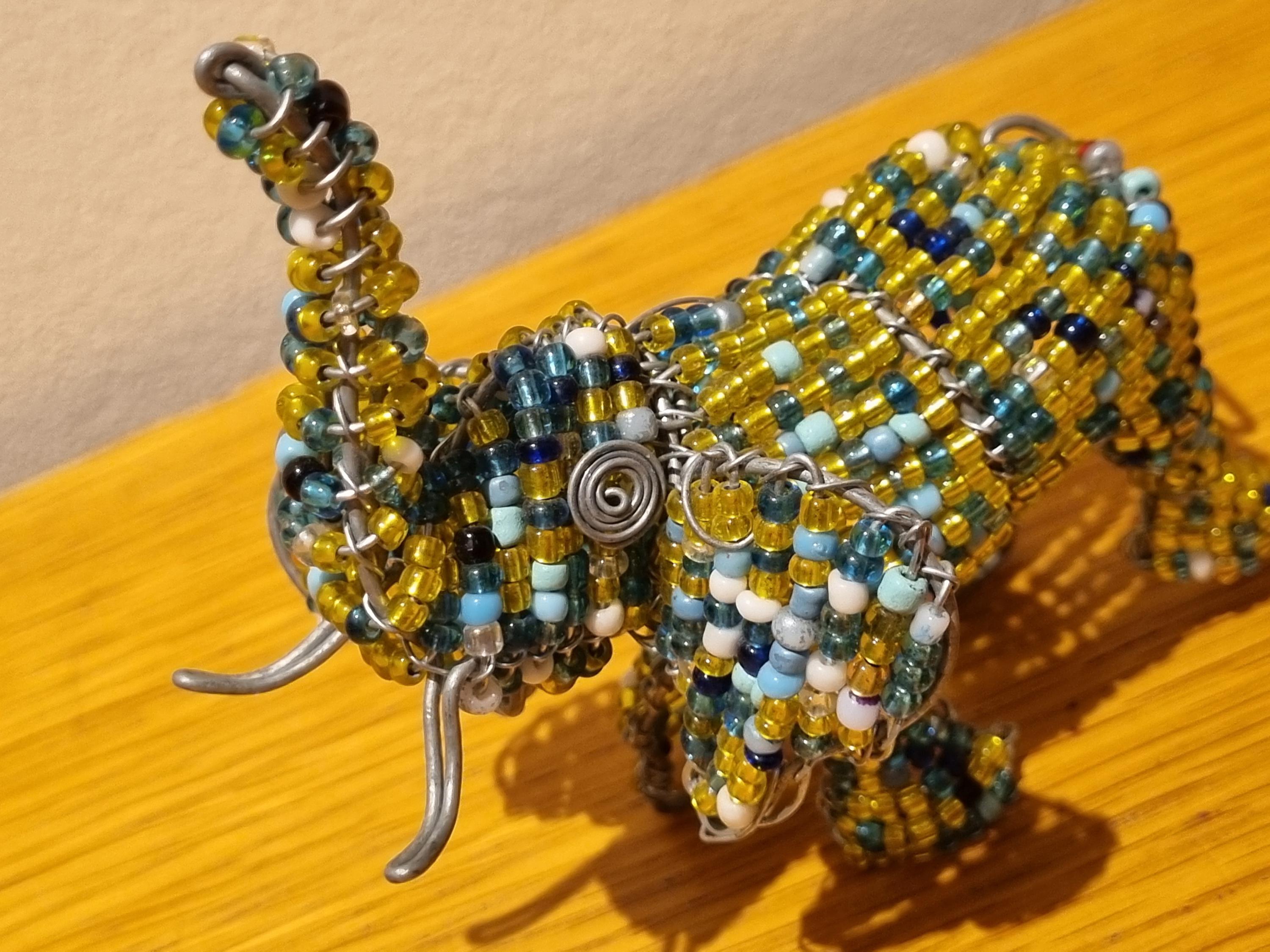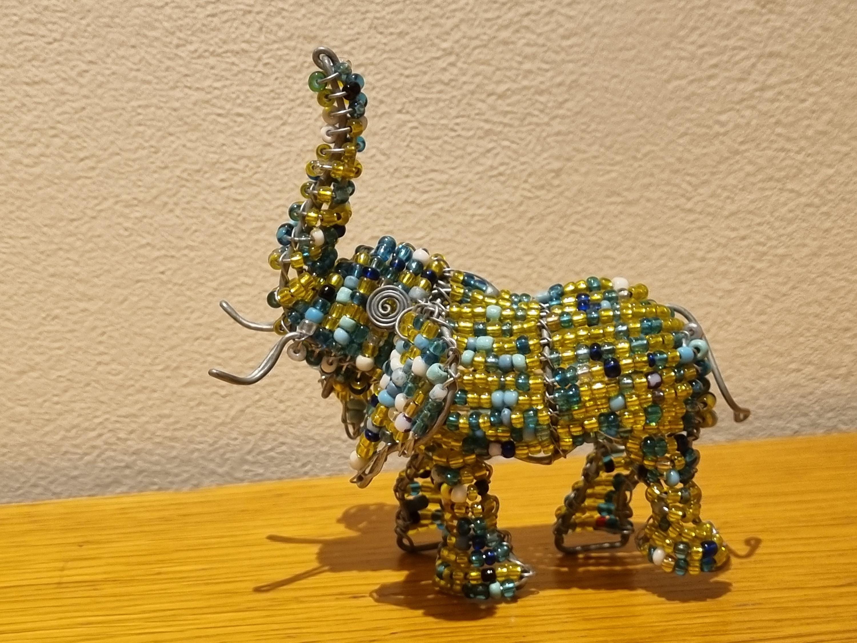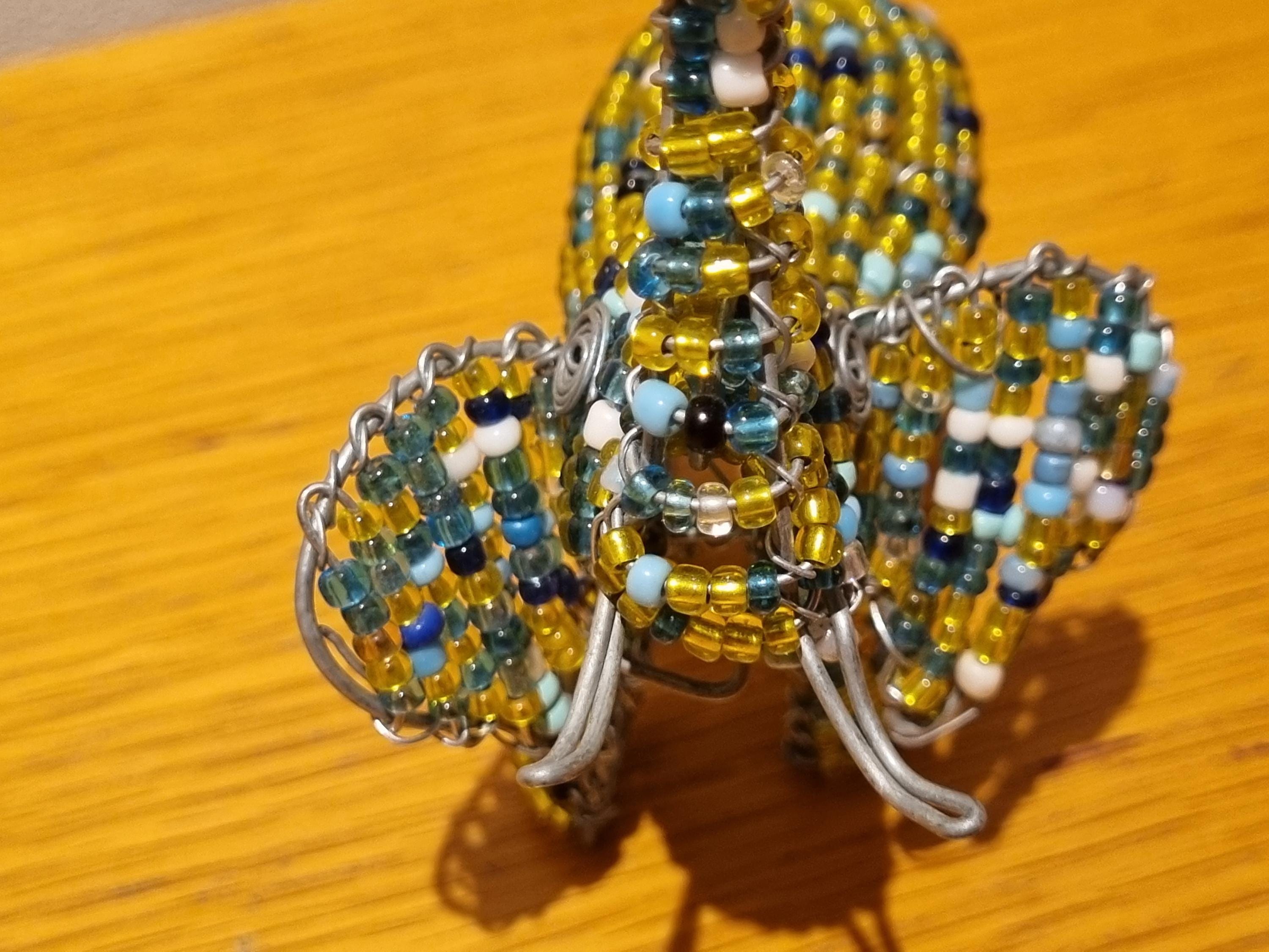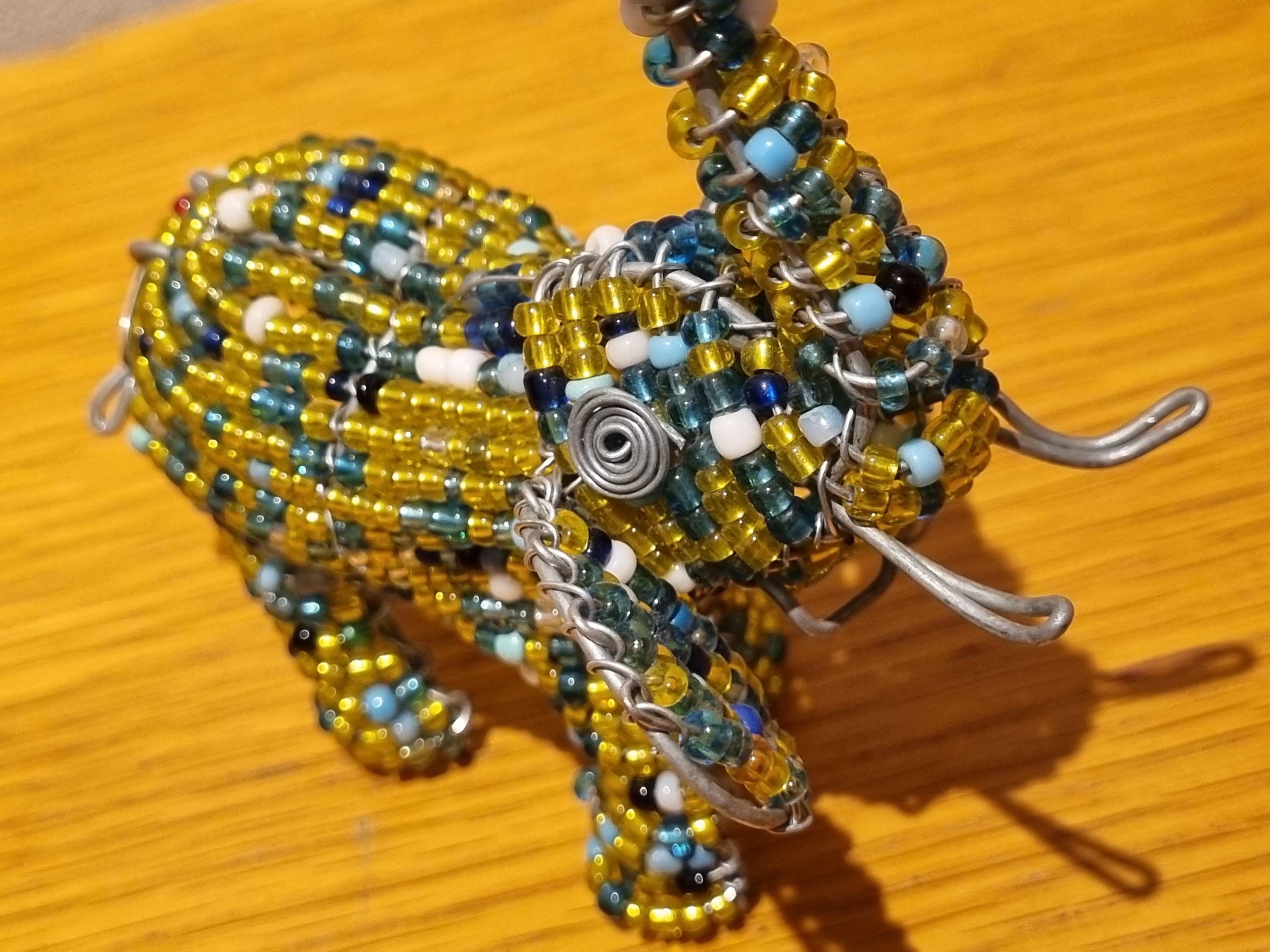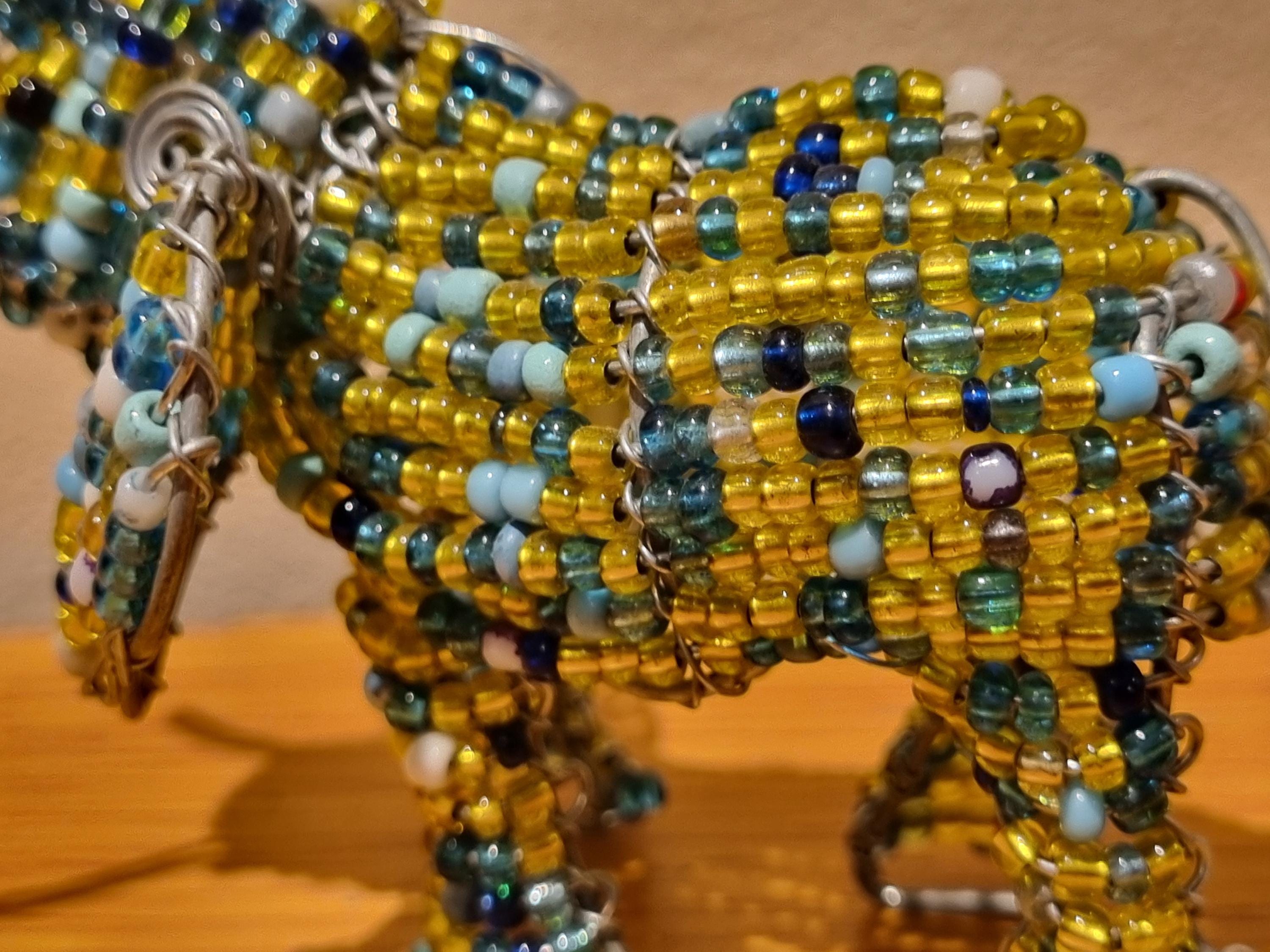 Bring the beauty of African wildlife into your home with this handmade beaded elephant sculpture.