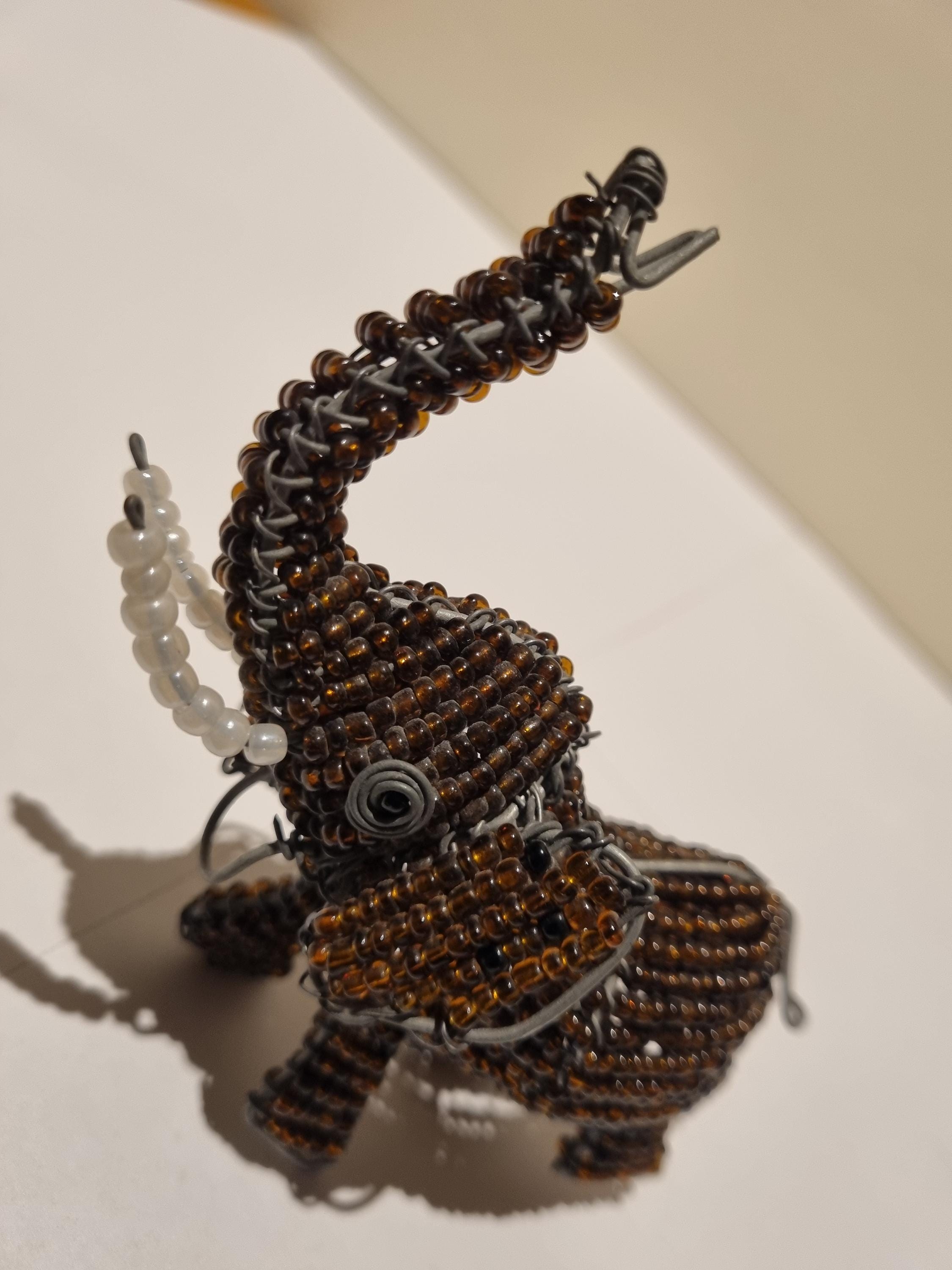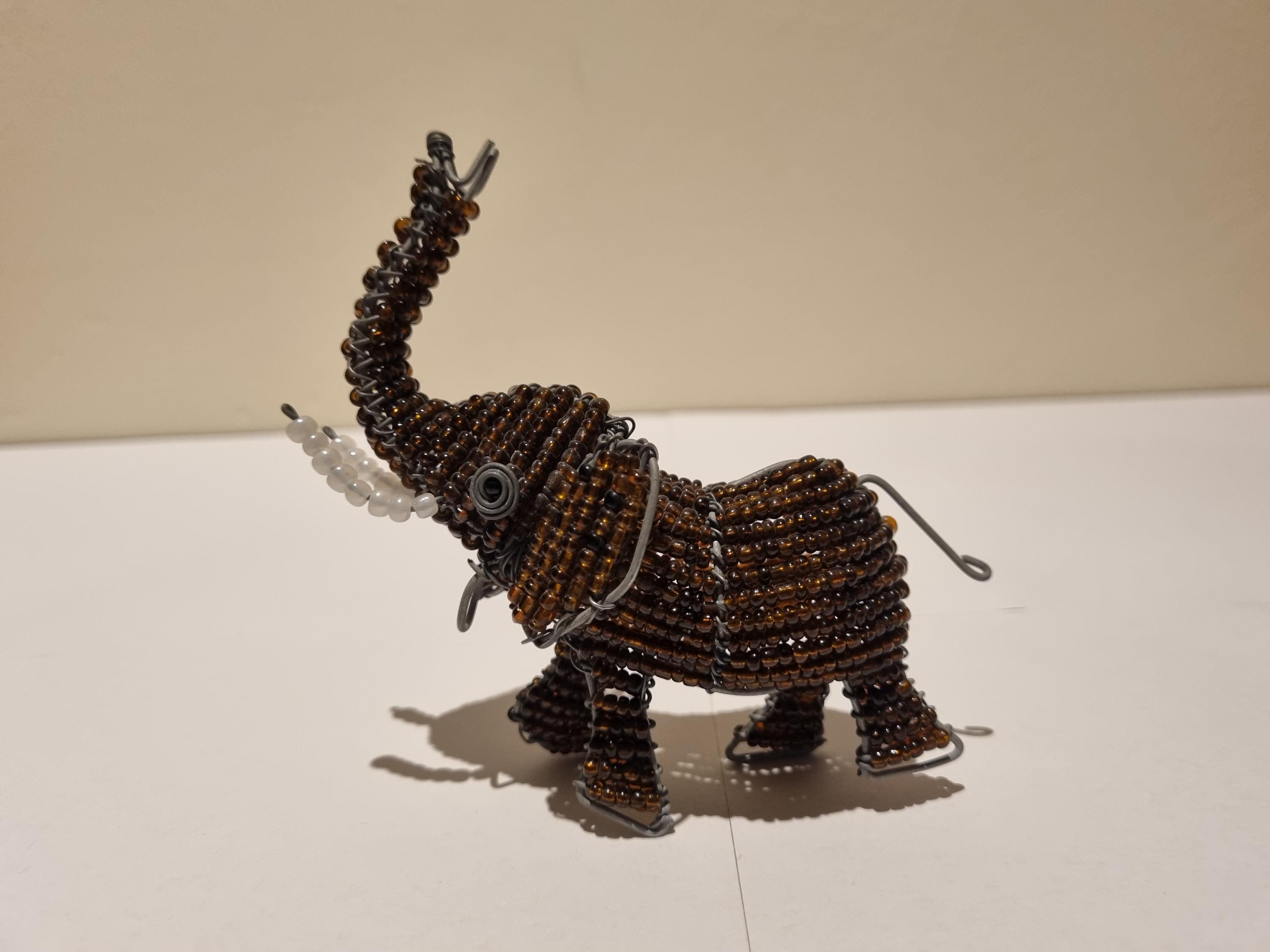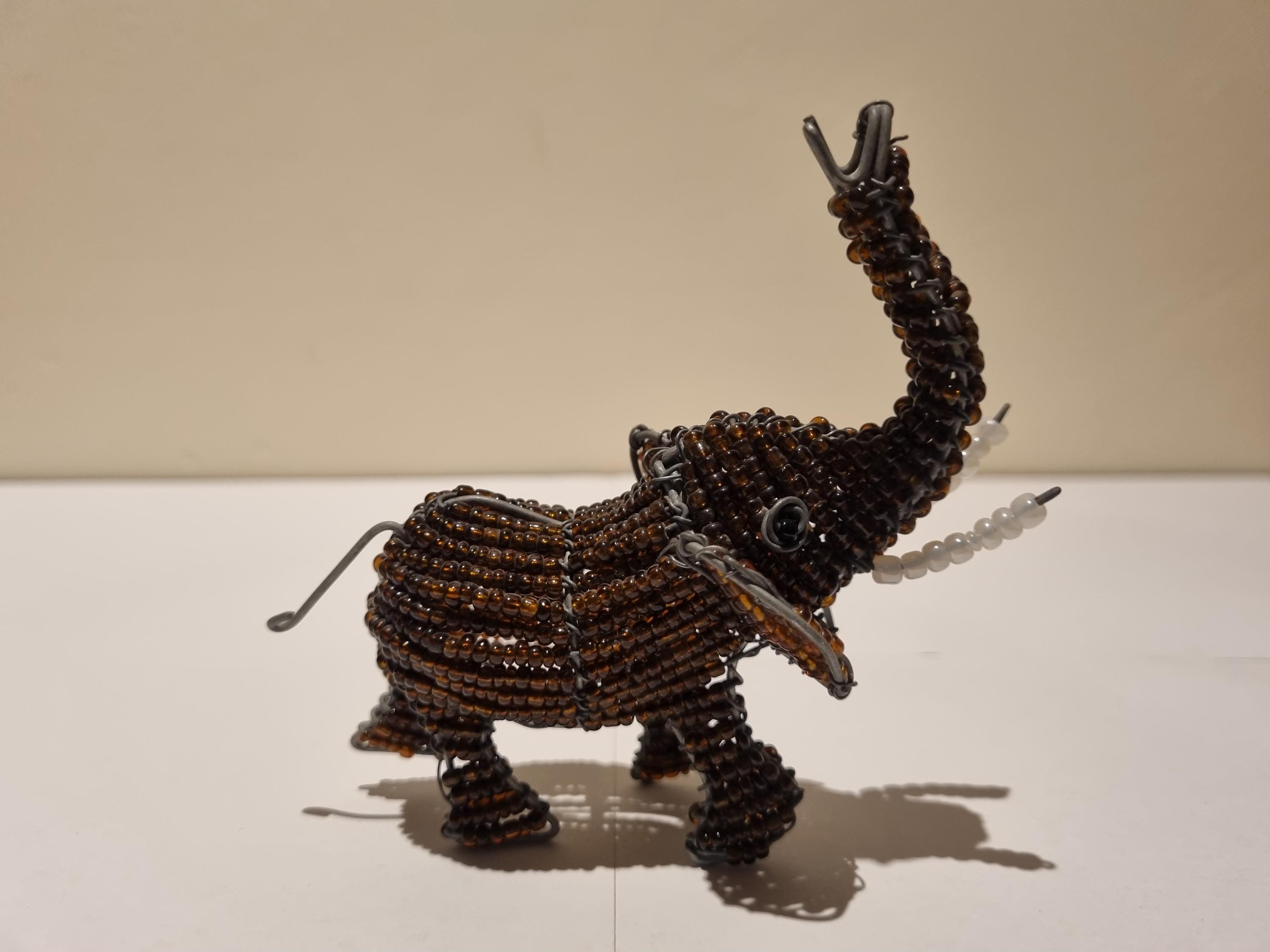 Bring the beauty of African wildlife into your home with this handmade brown beaded elephant.