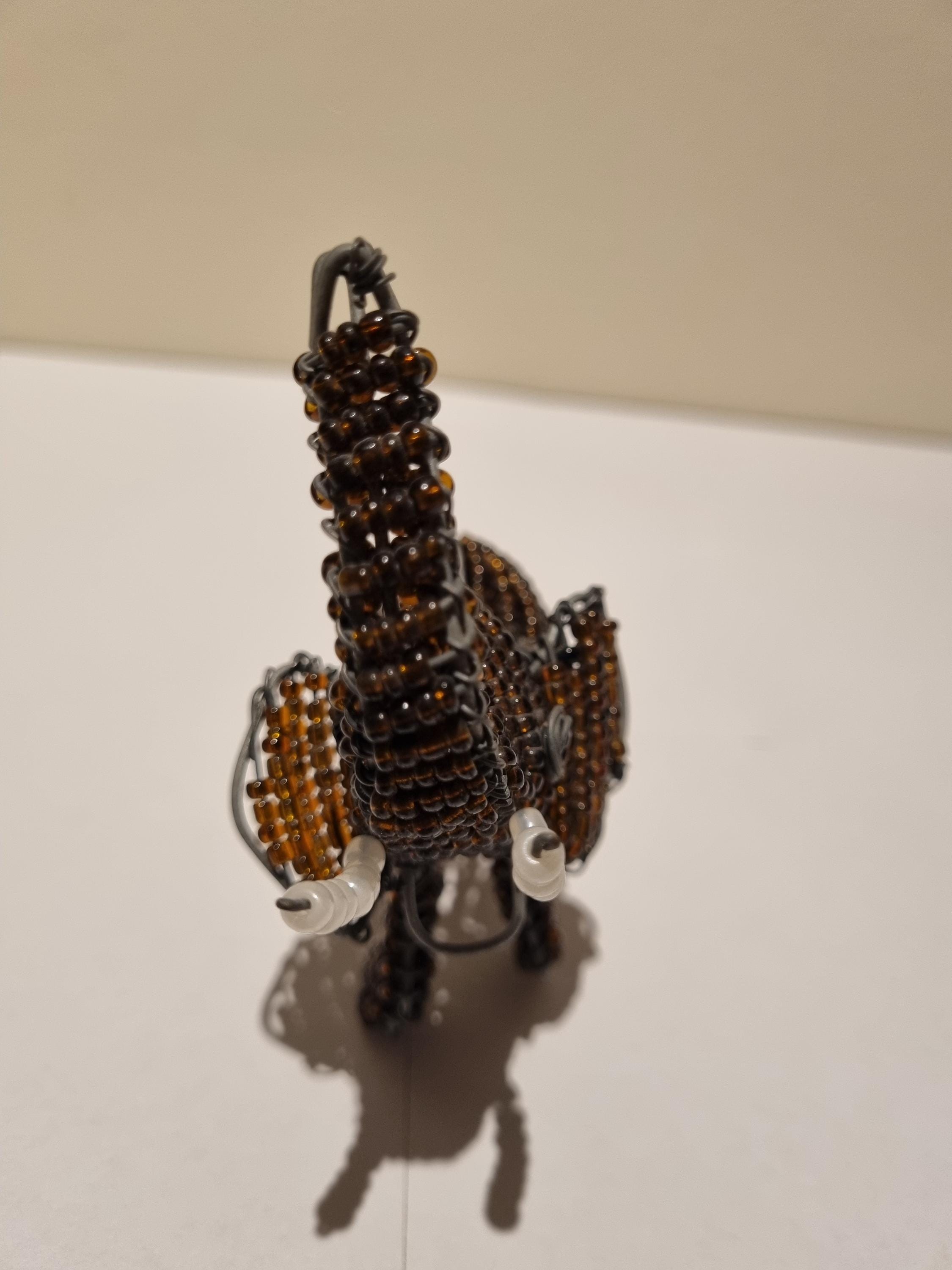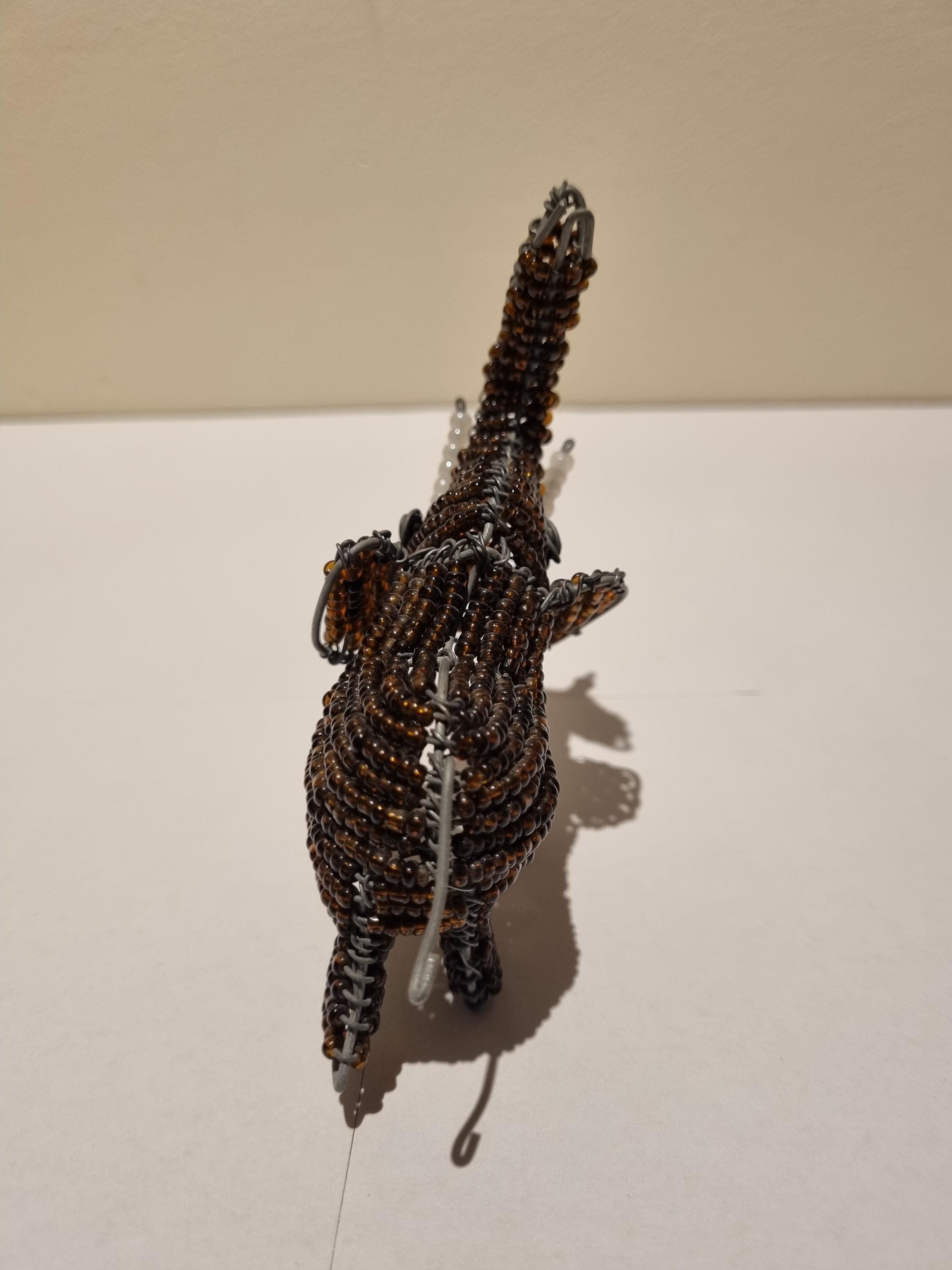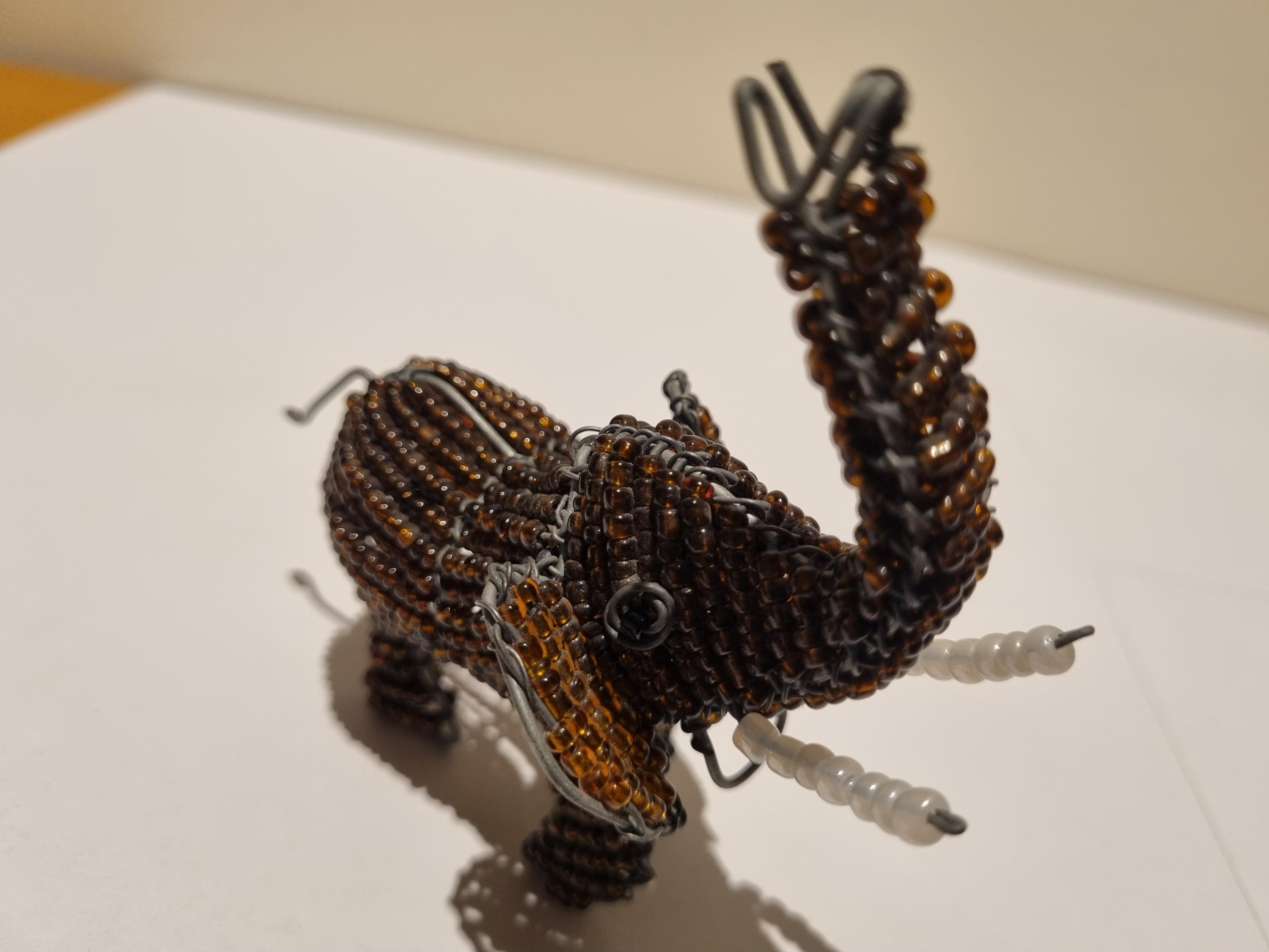 Bring the beauty of African wildlife into your home with this handmade brown beaded elephant.