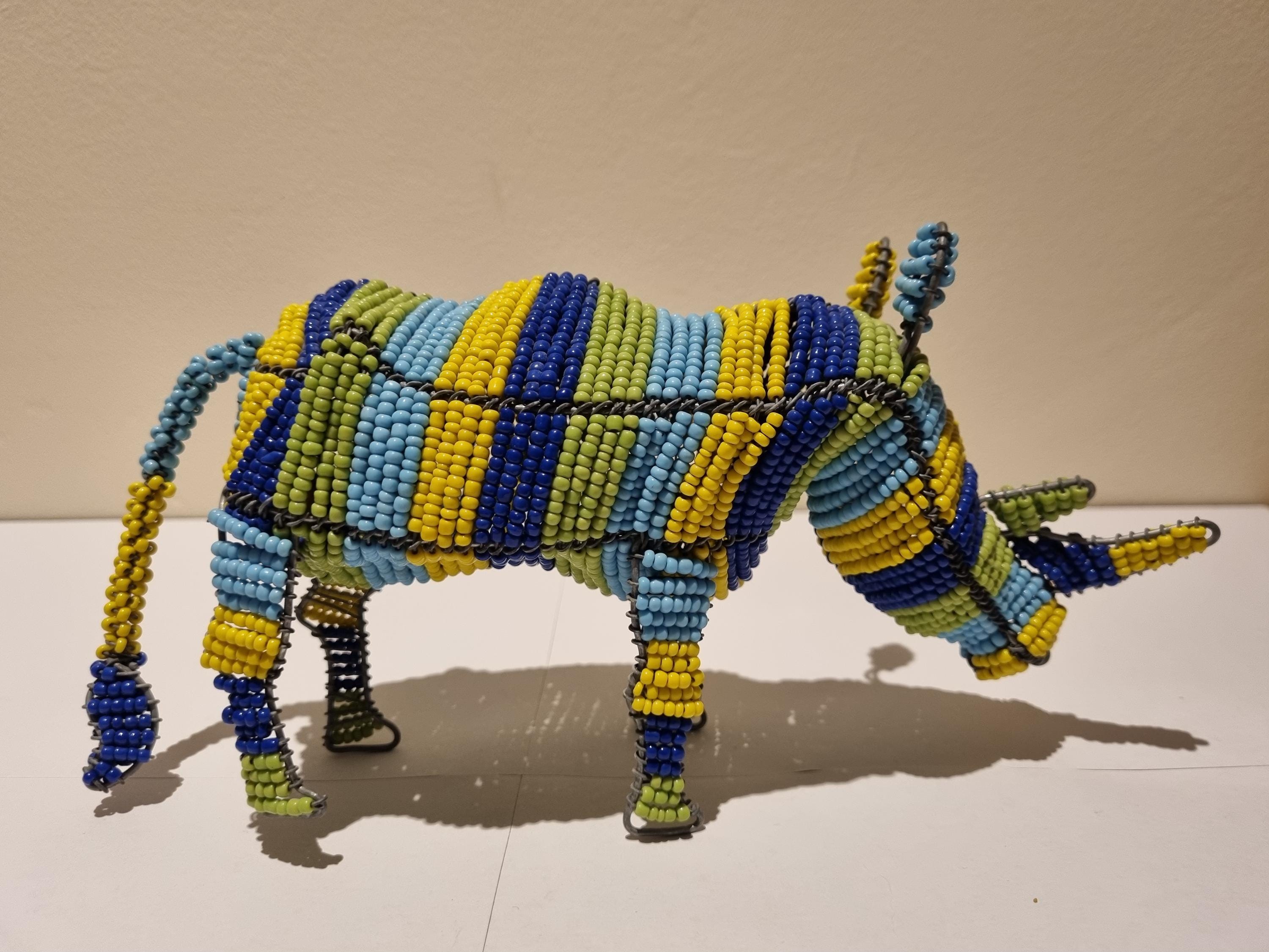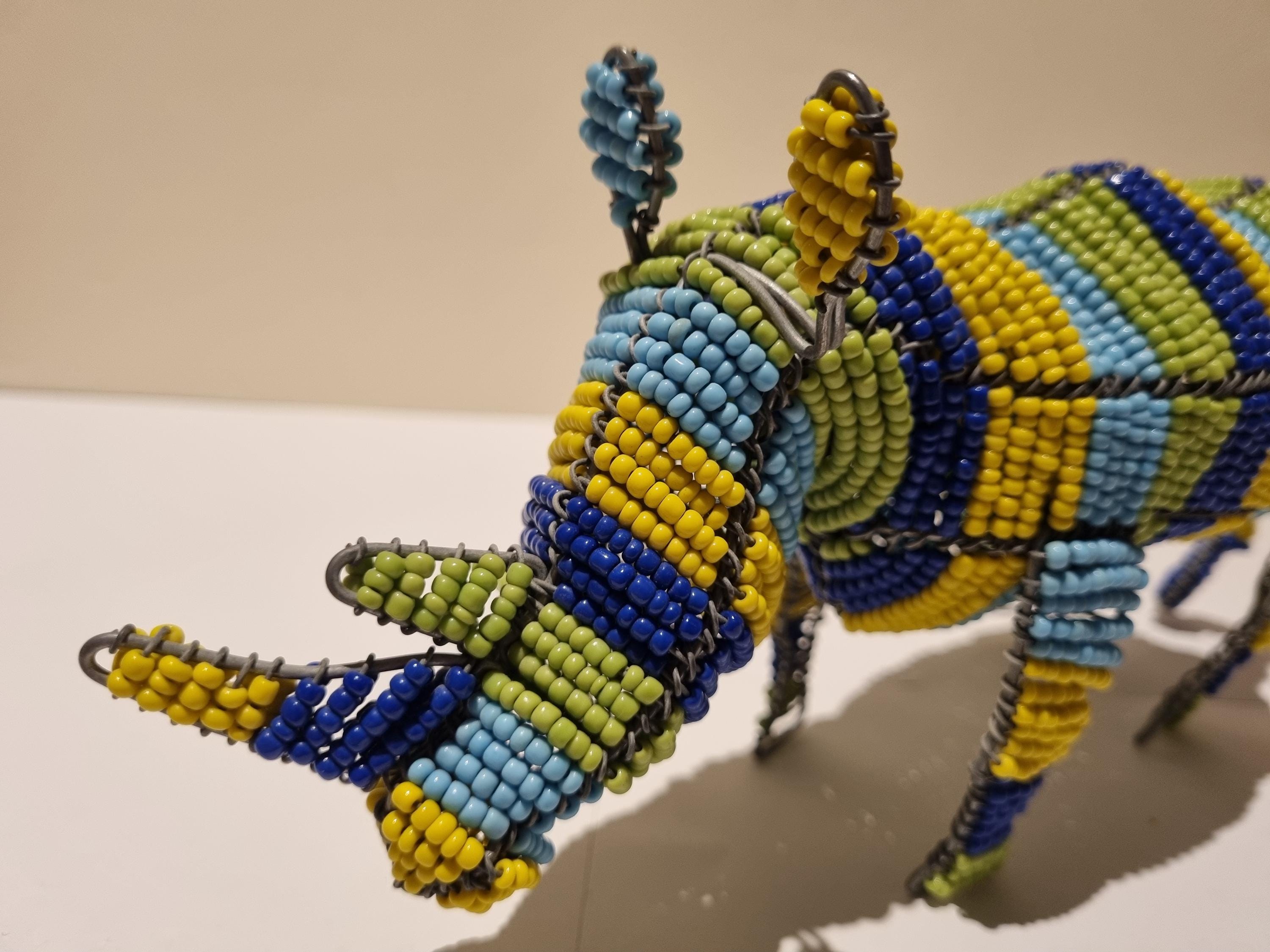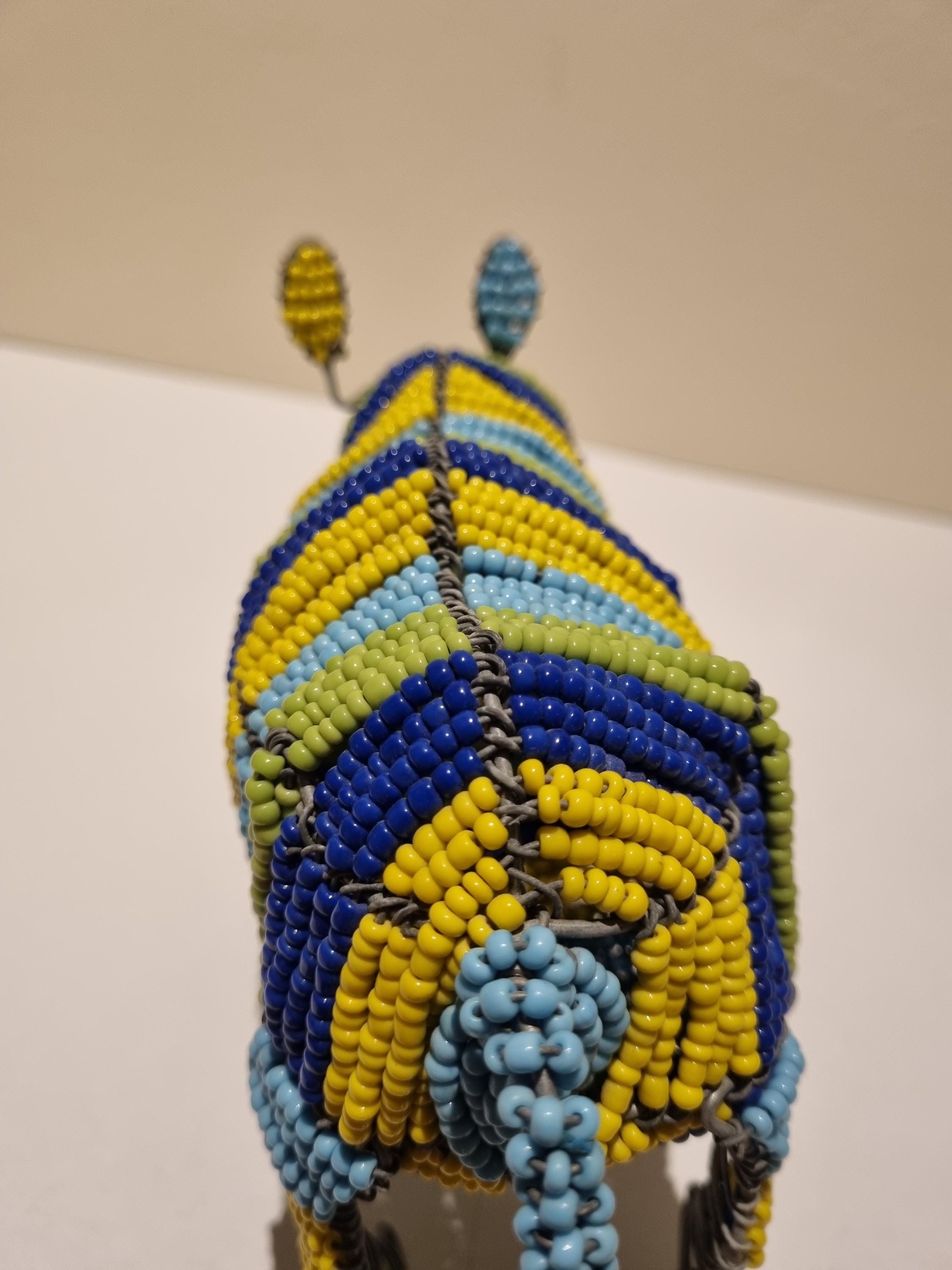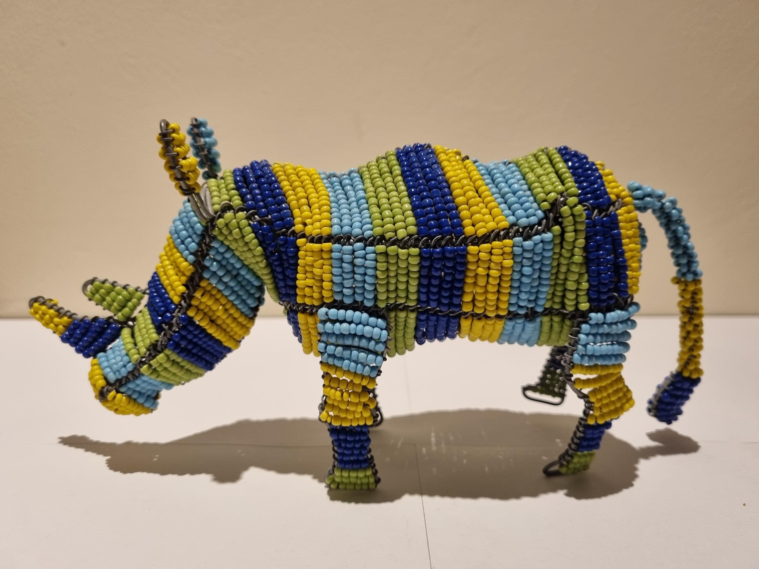 Bring the beauty of African wildlife into your home with this handmade colorful beaded rhino.