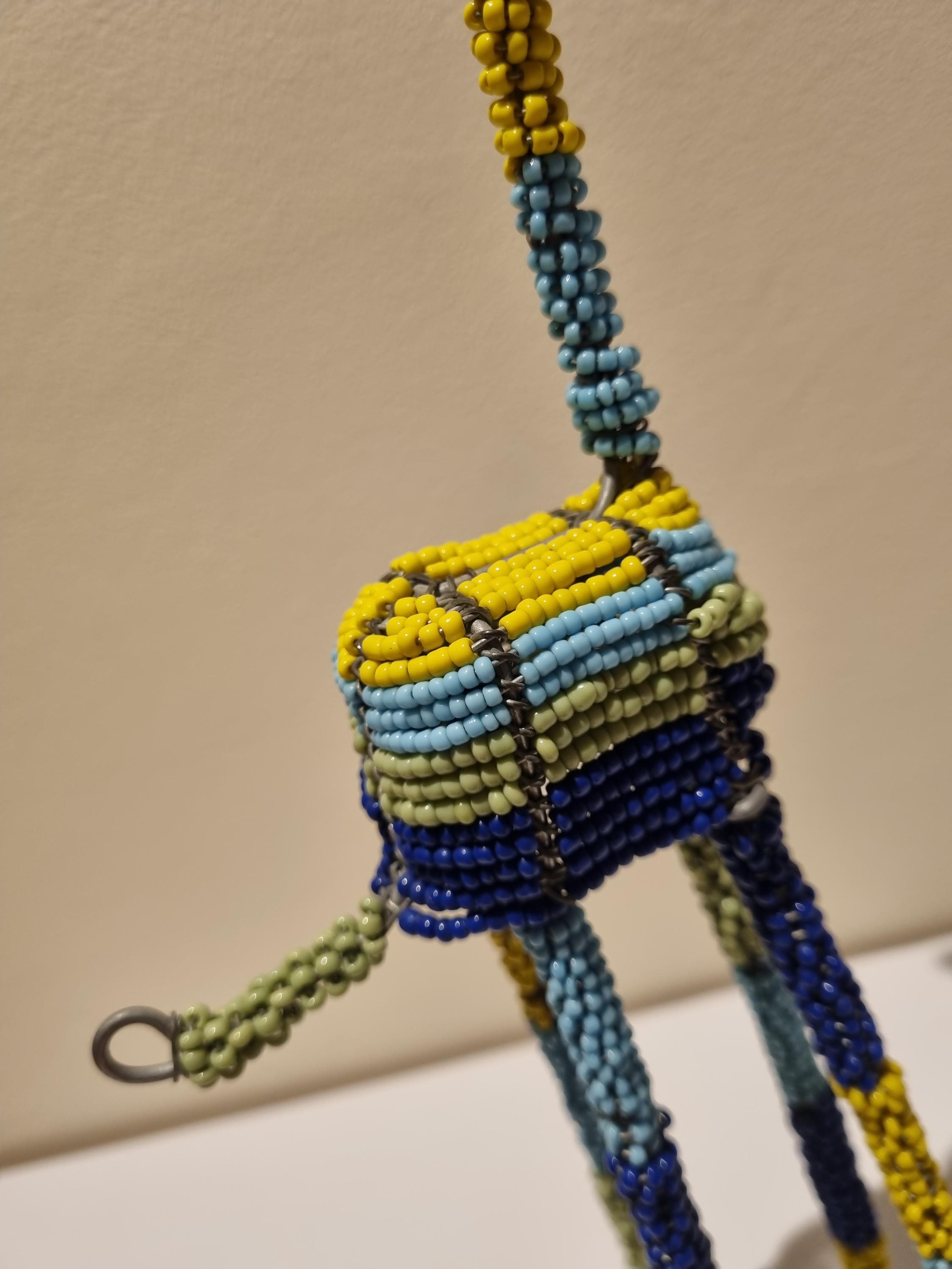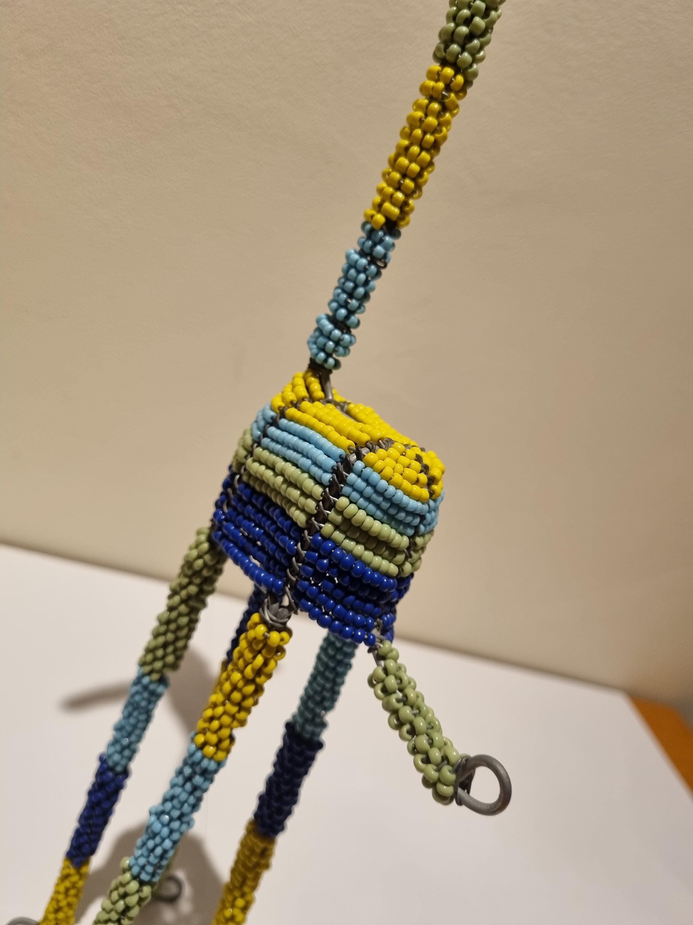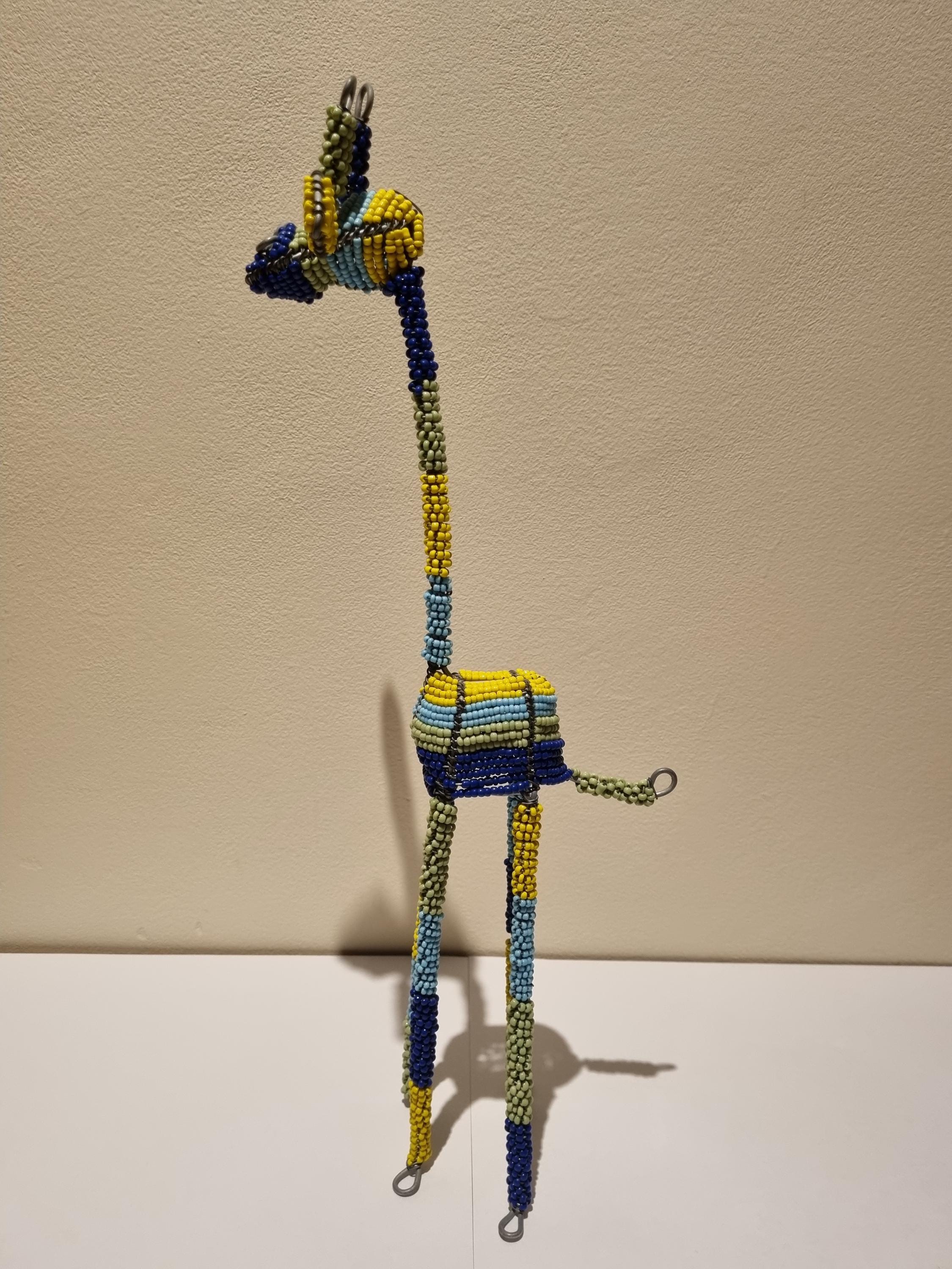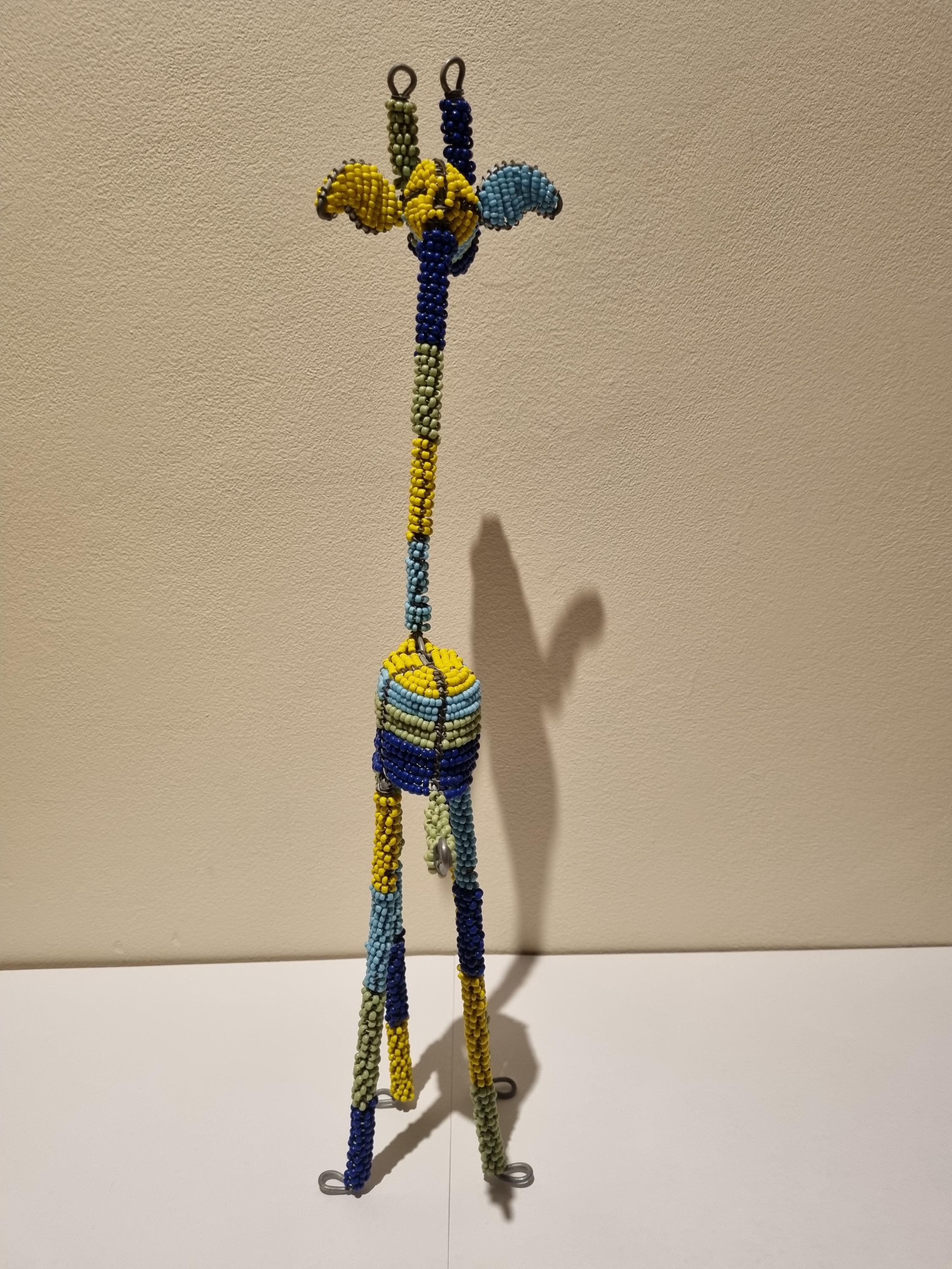Bring the beauty of African wildlife into your home with this handmade colorful beaded giraffe.