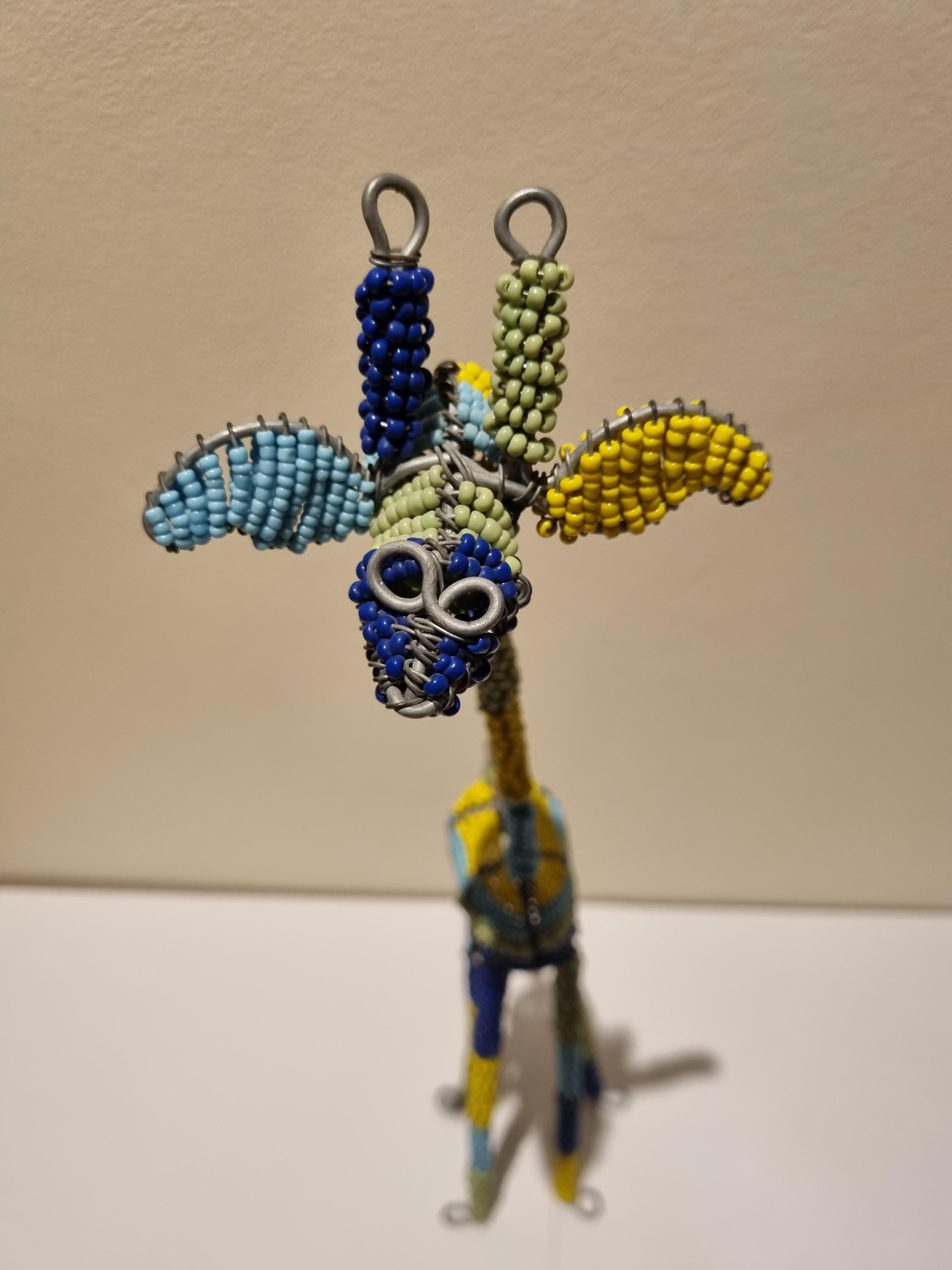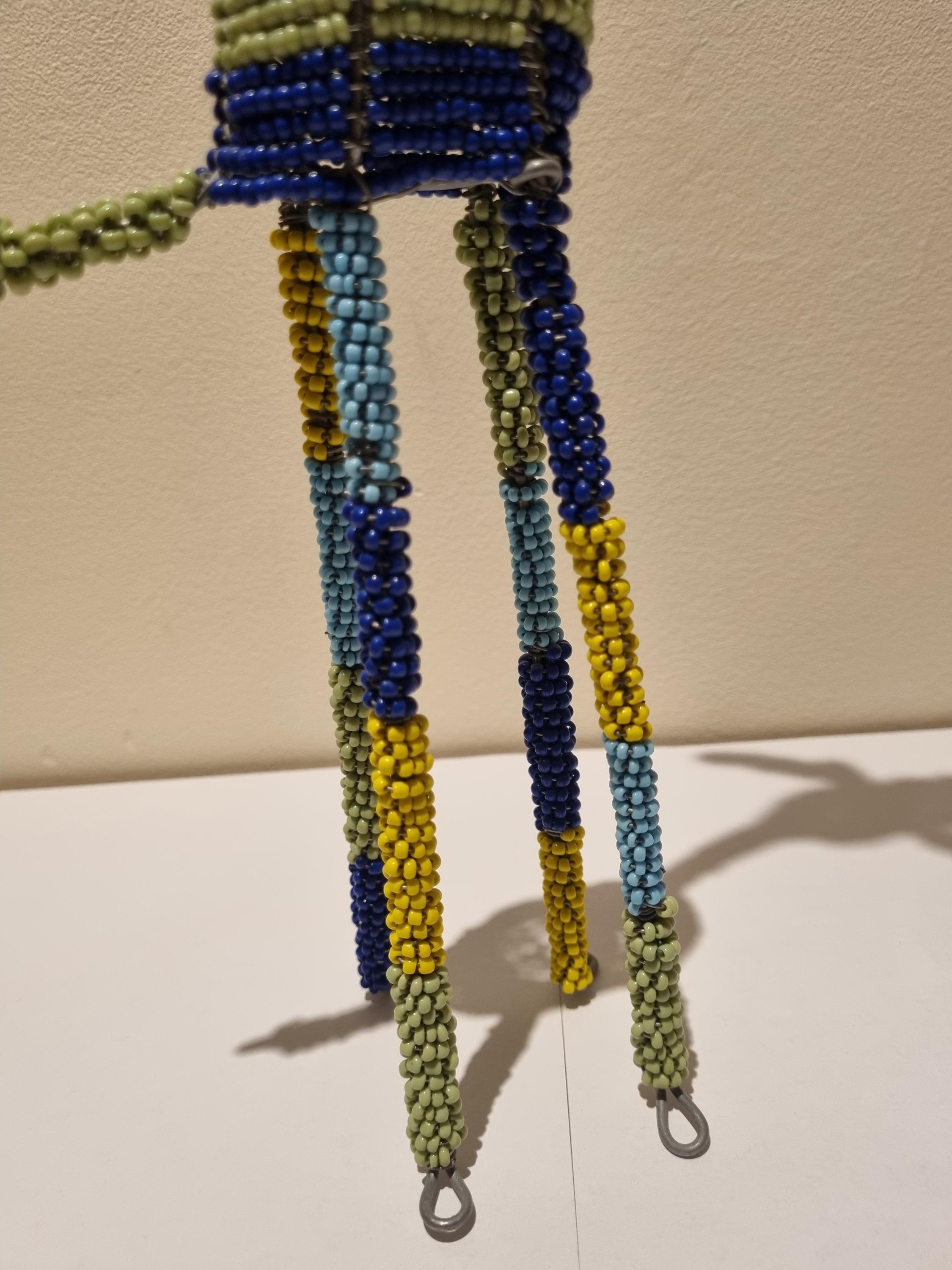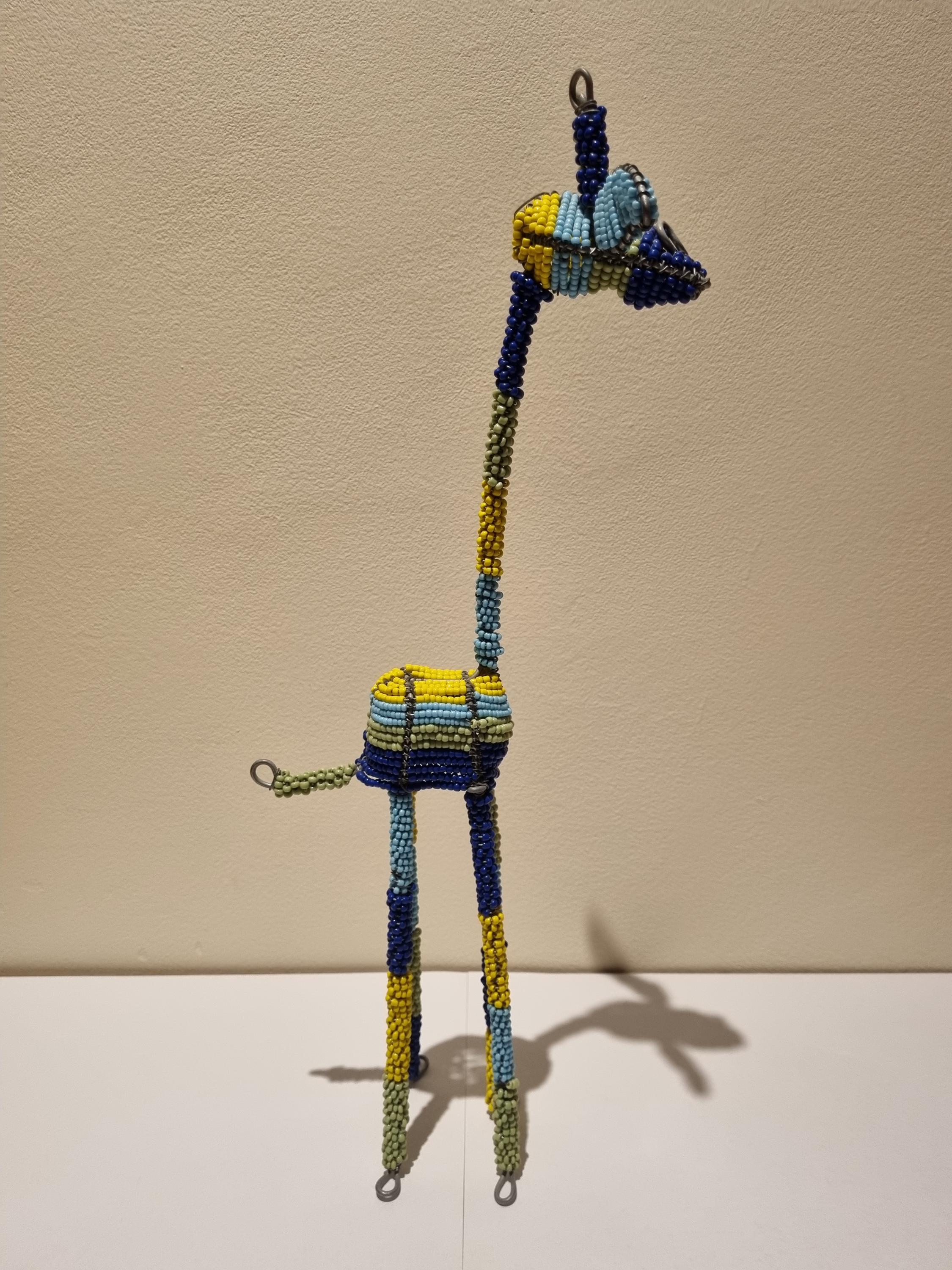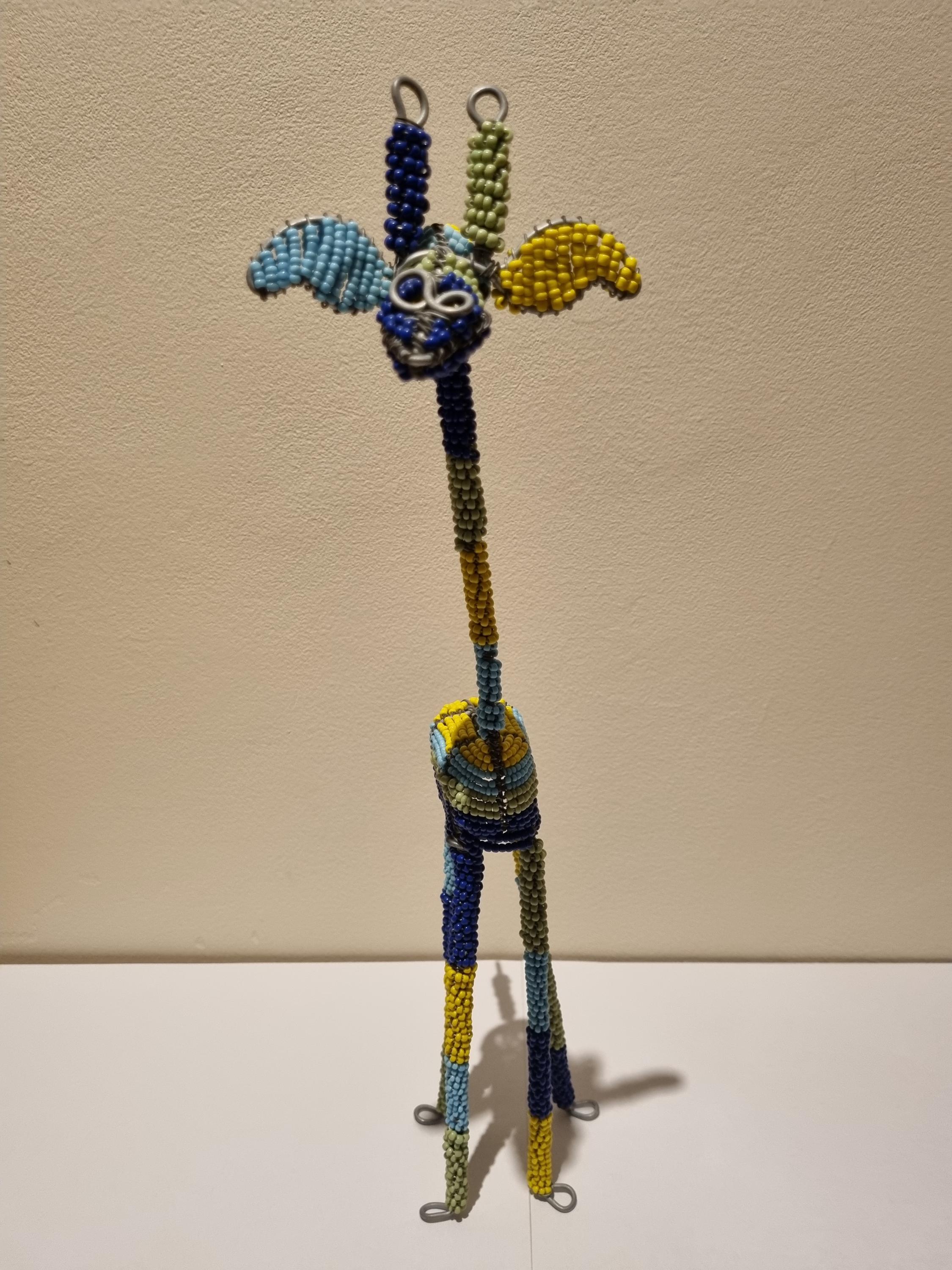 Bring the beauty of African wildlife into your home with this handmade colorful beaded giraffe.