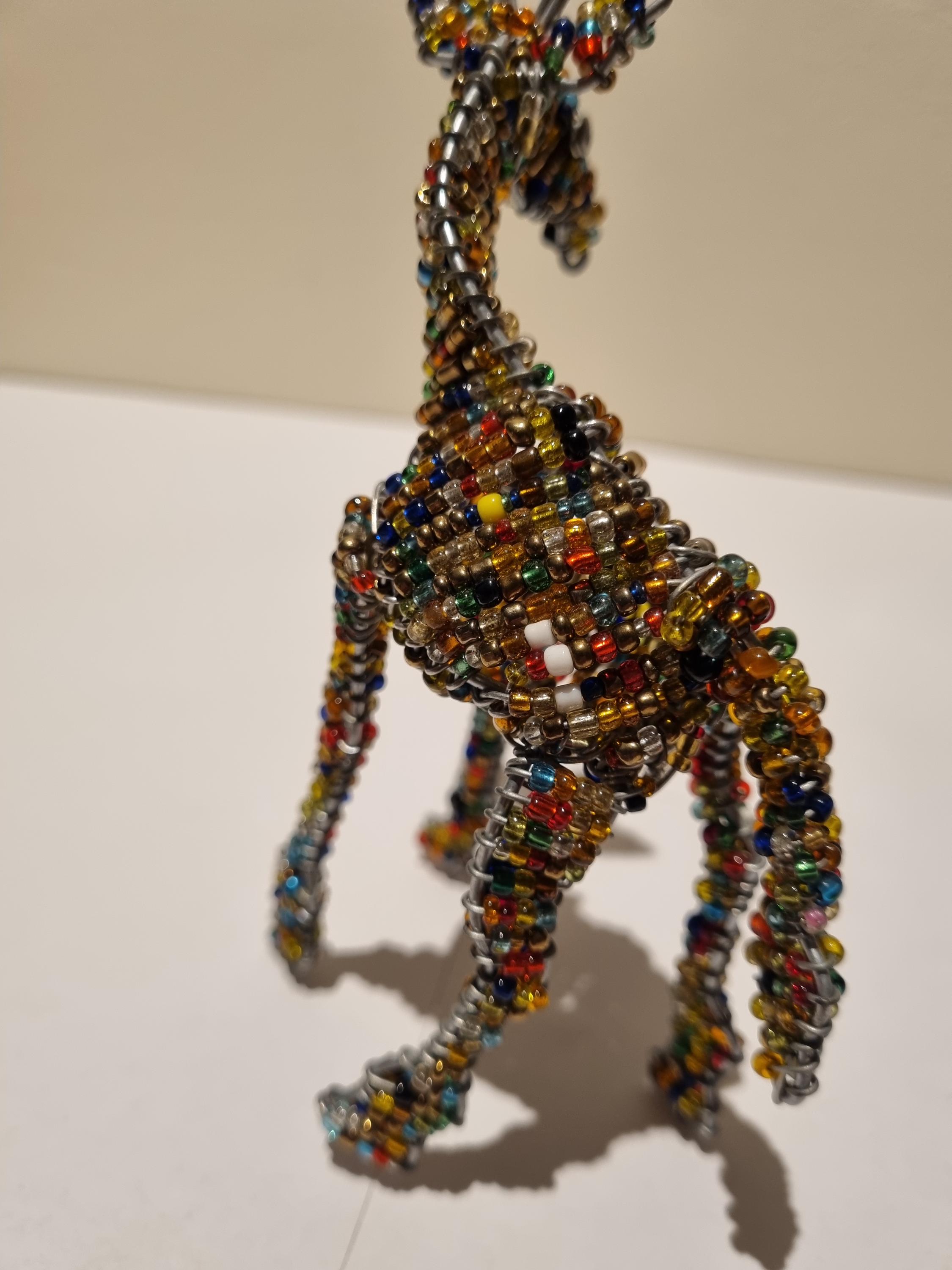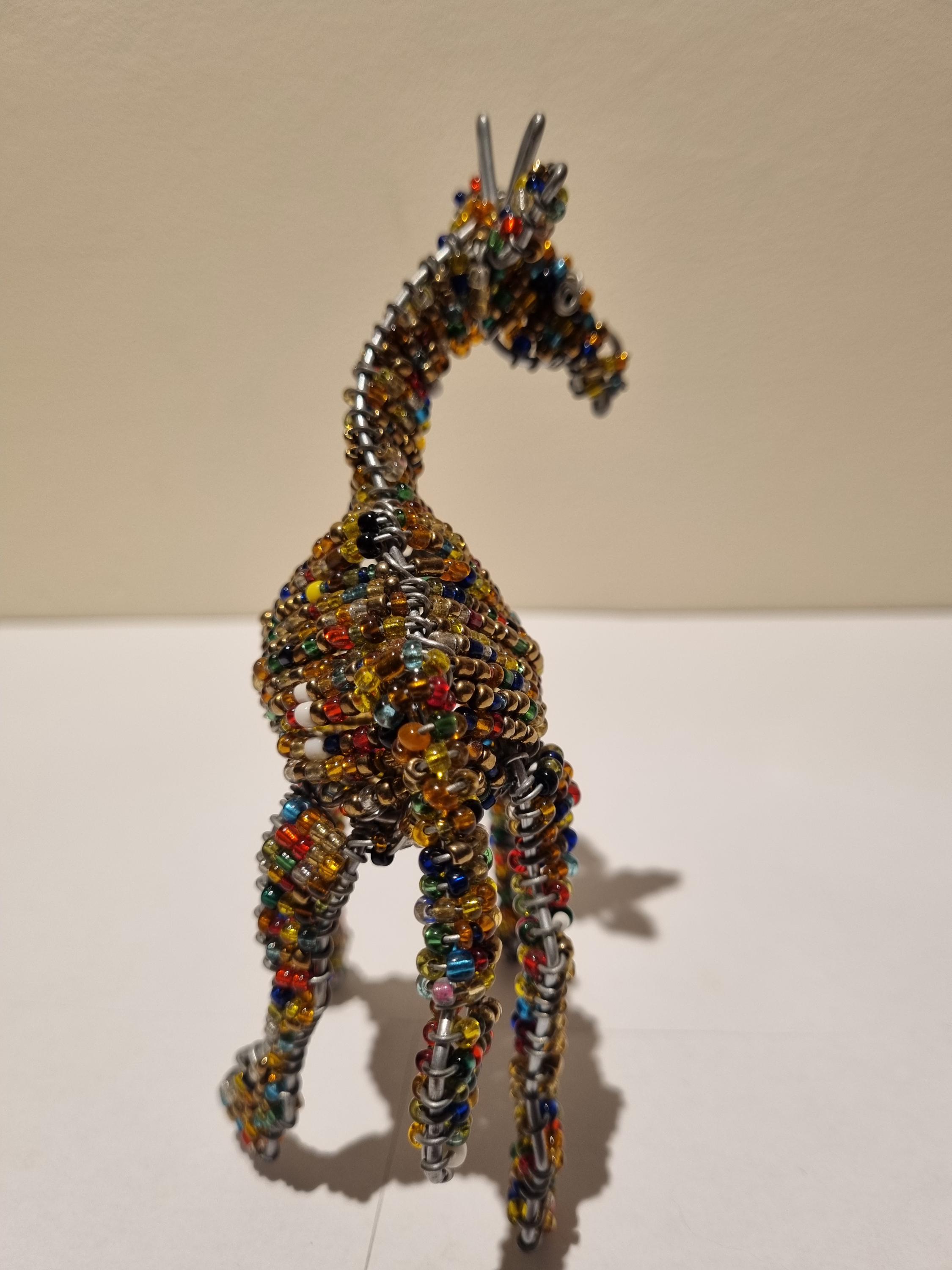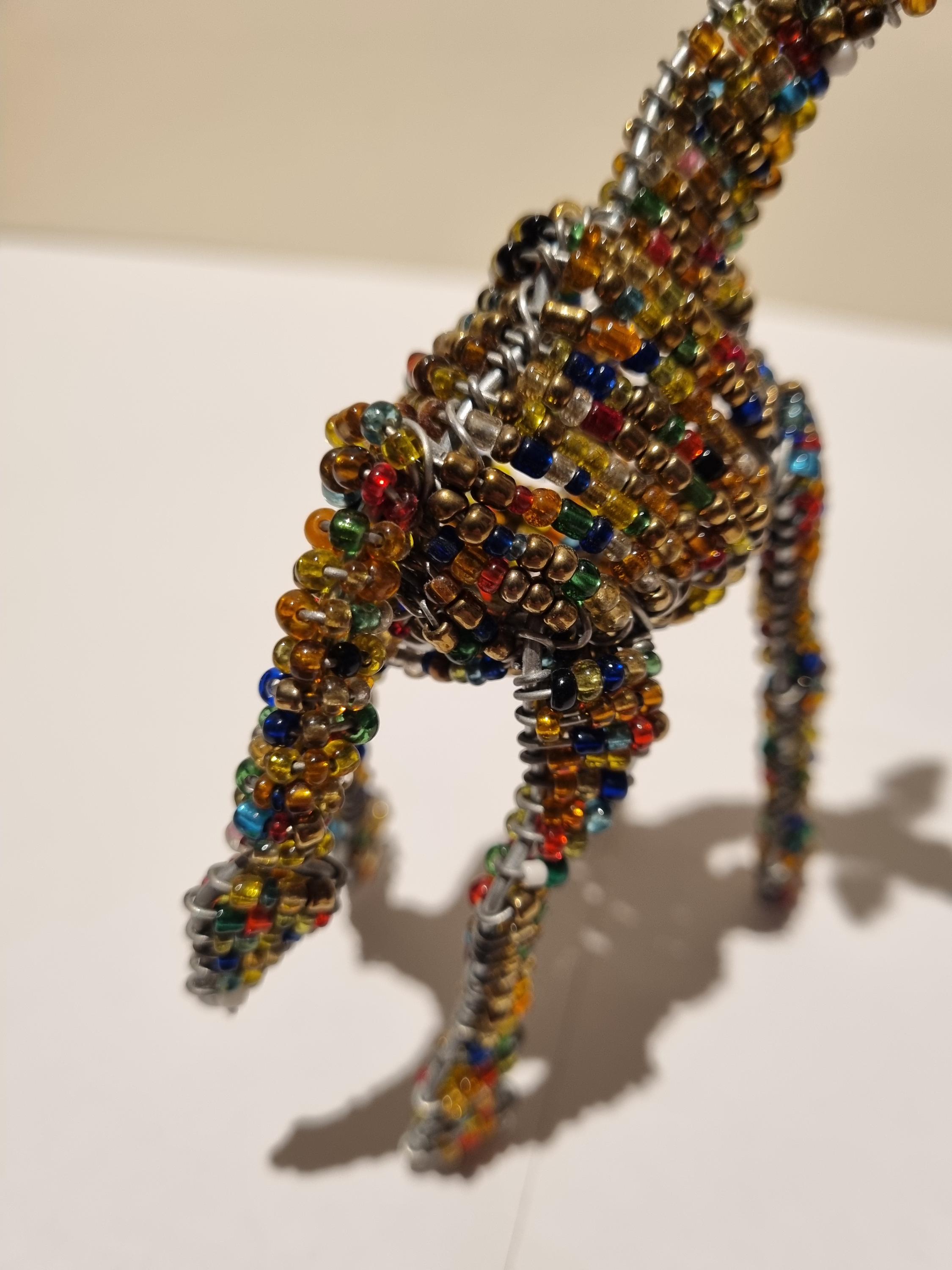 Bring the beauty of African wildlife into your home with this handmade colorful beaded short giraffe.