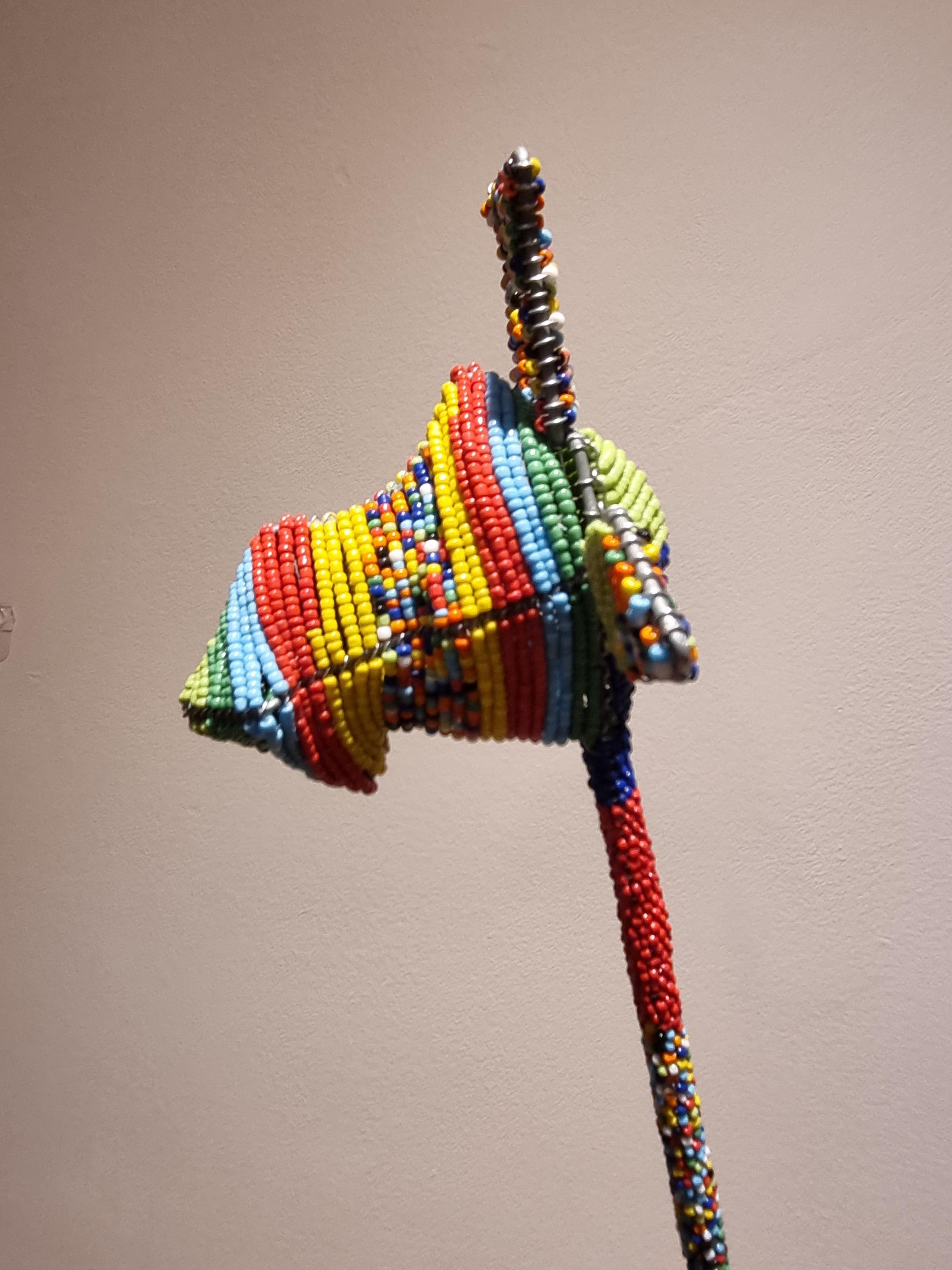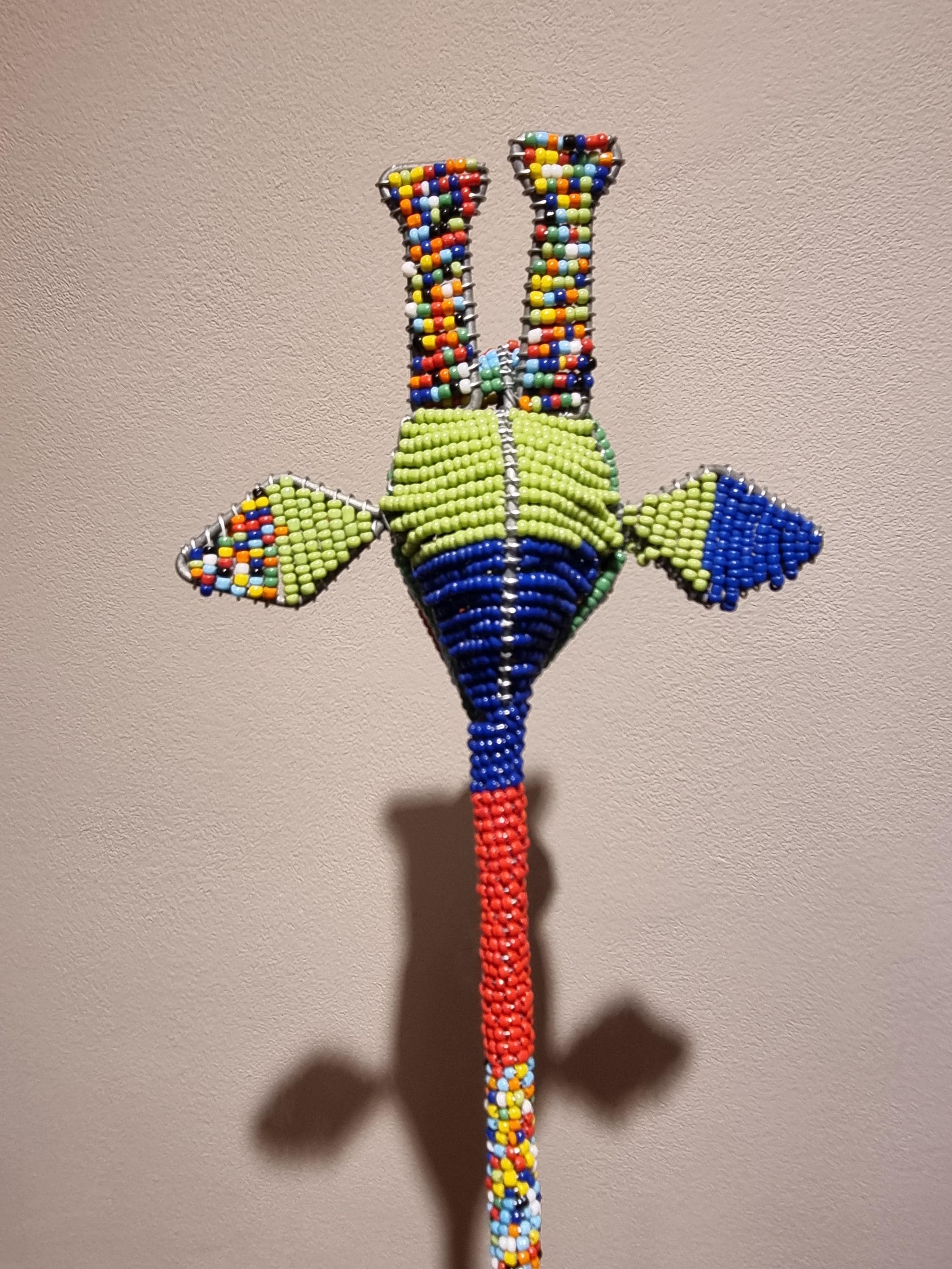 Rare Beadwork Design – Striking concentric bead circles set this giraffe apart from typical styles.