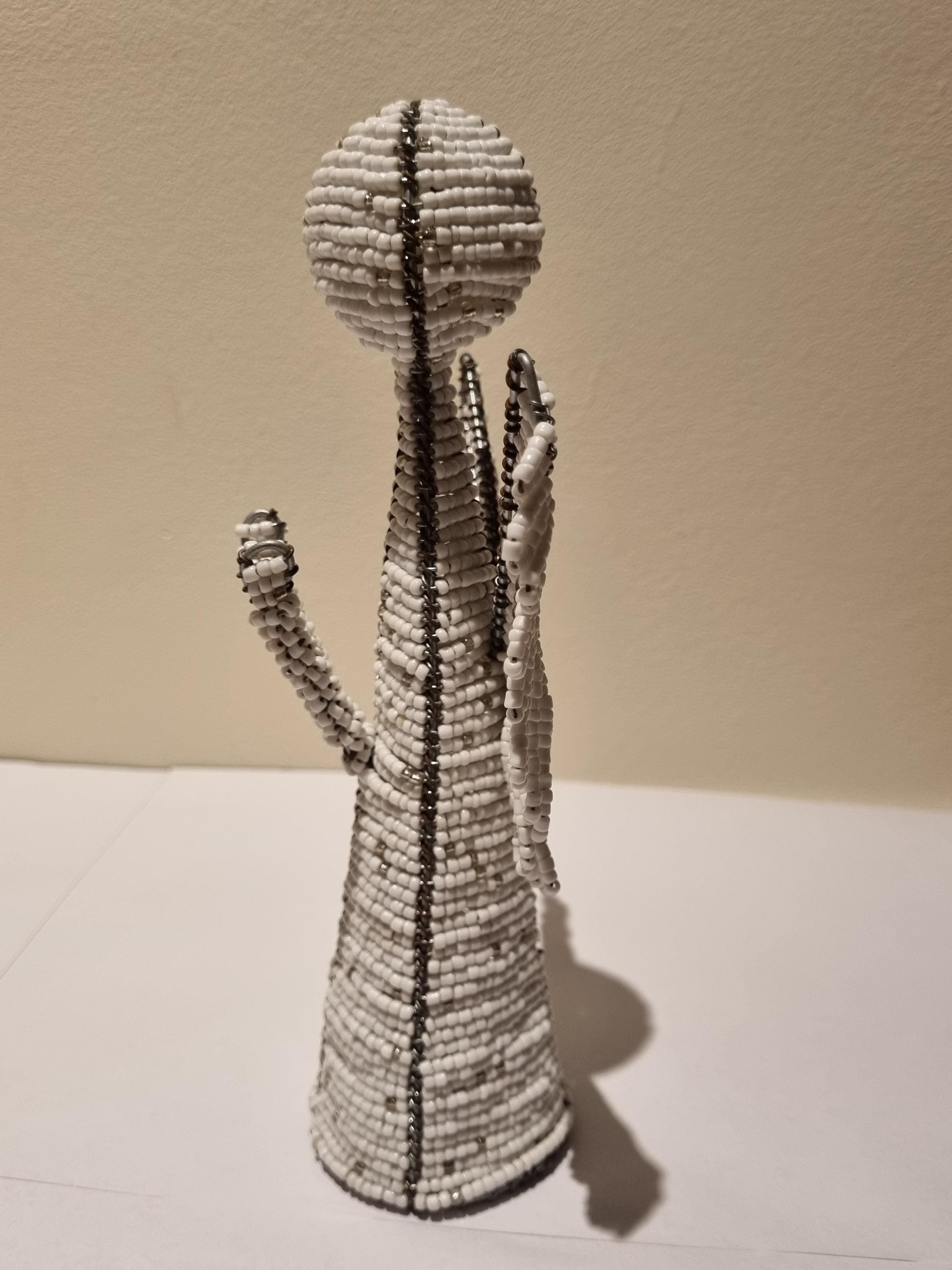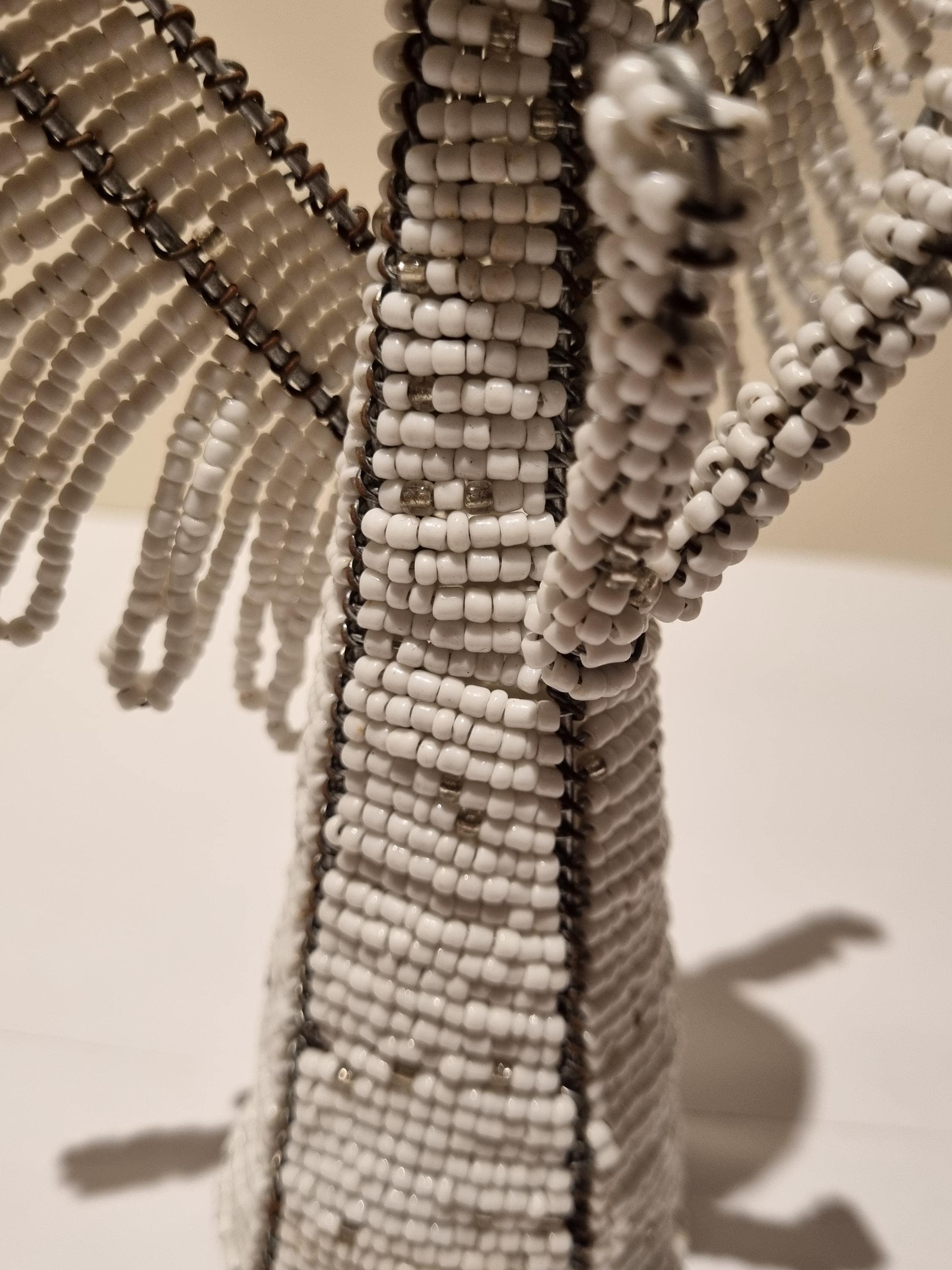 Bring timeless elegance to your Christmas décor with this handcrafted Beaded Angel Tree Topper. Carefully made from white and random silver beads woven onto a strong wire frame, this angel adds a touch of artisanal beauty to your festive celebrations.
