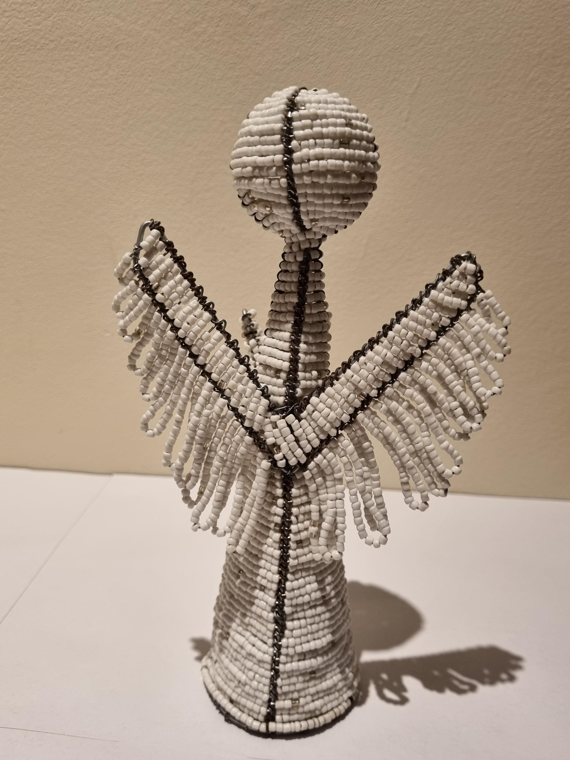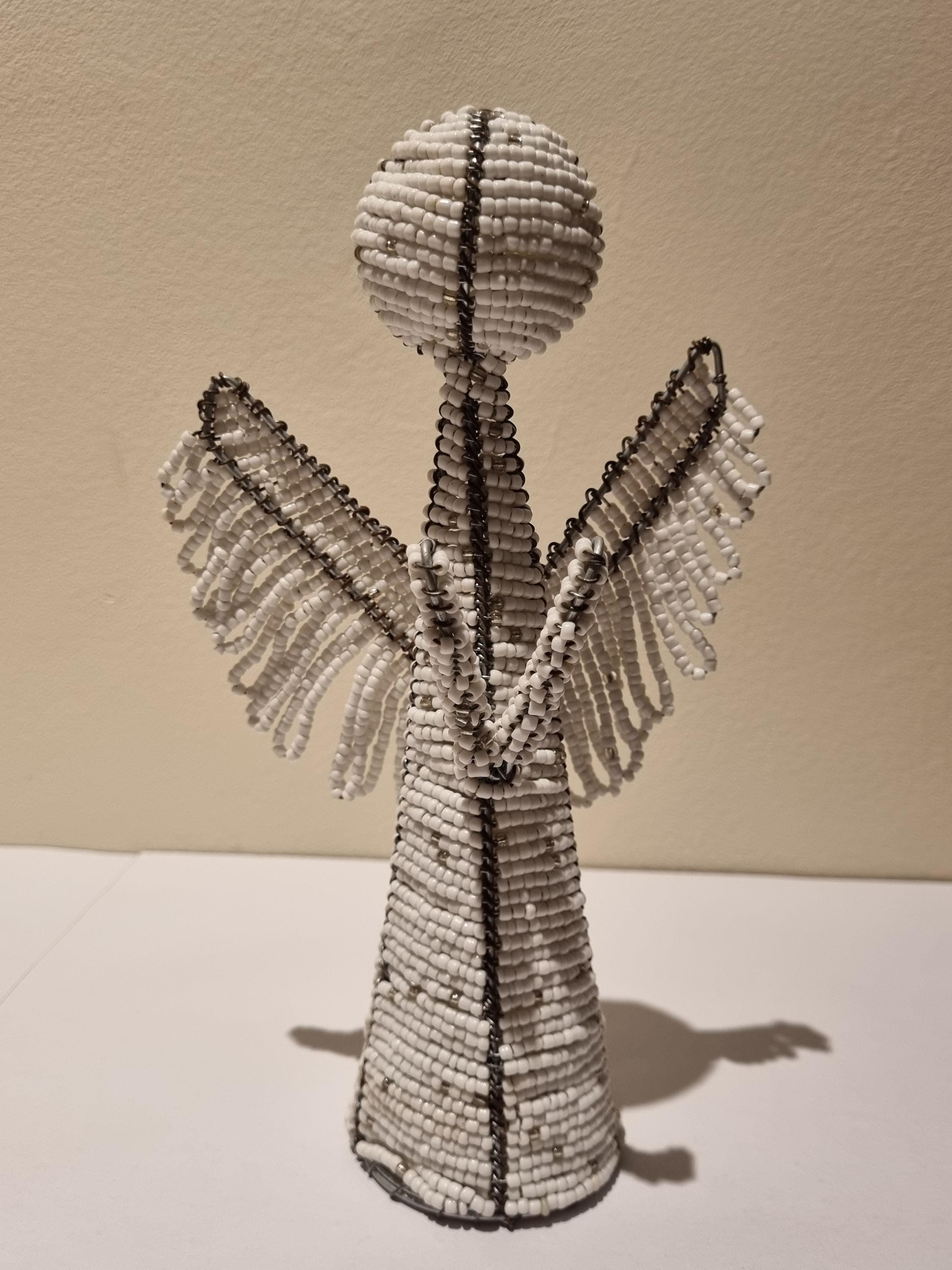 Each bead is strung by hand, creating a piece that carries both craftsmanship and tradition. Its radiant simplicity makes it suitable for both modern and classic holiday interiors. Because these angels are handmade, each one is slightly unique with its own charming variations — making your piece truly one-of-a-kind