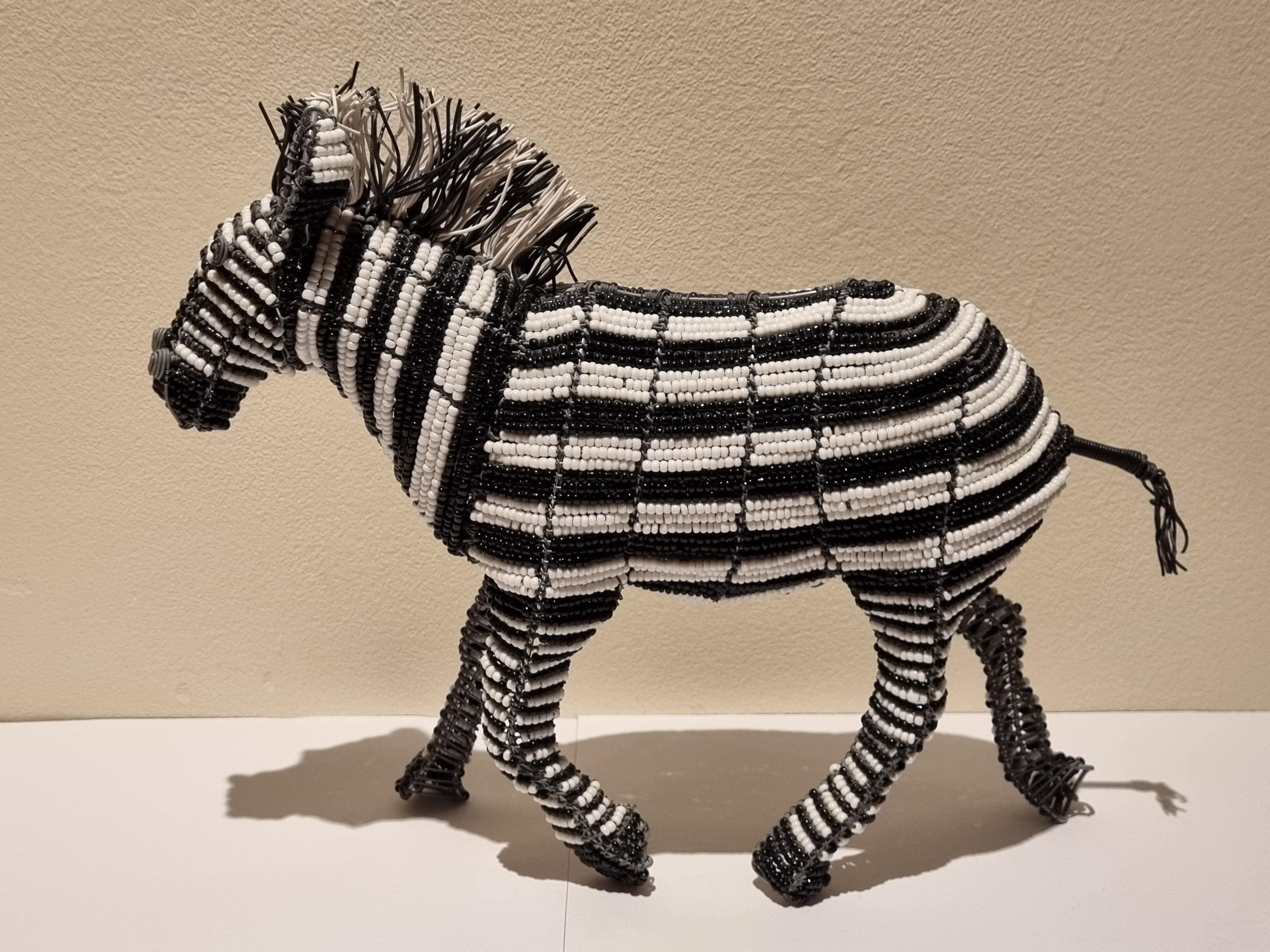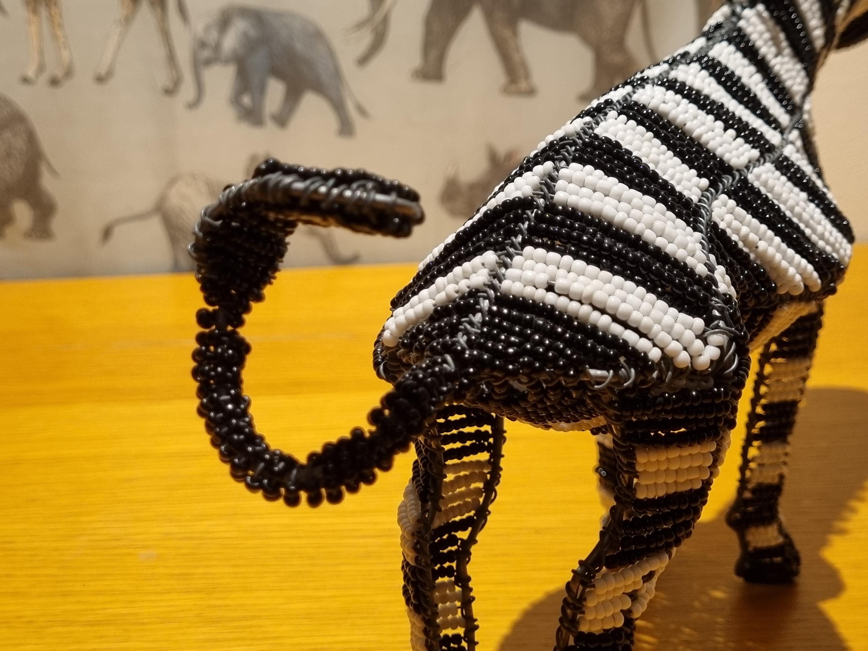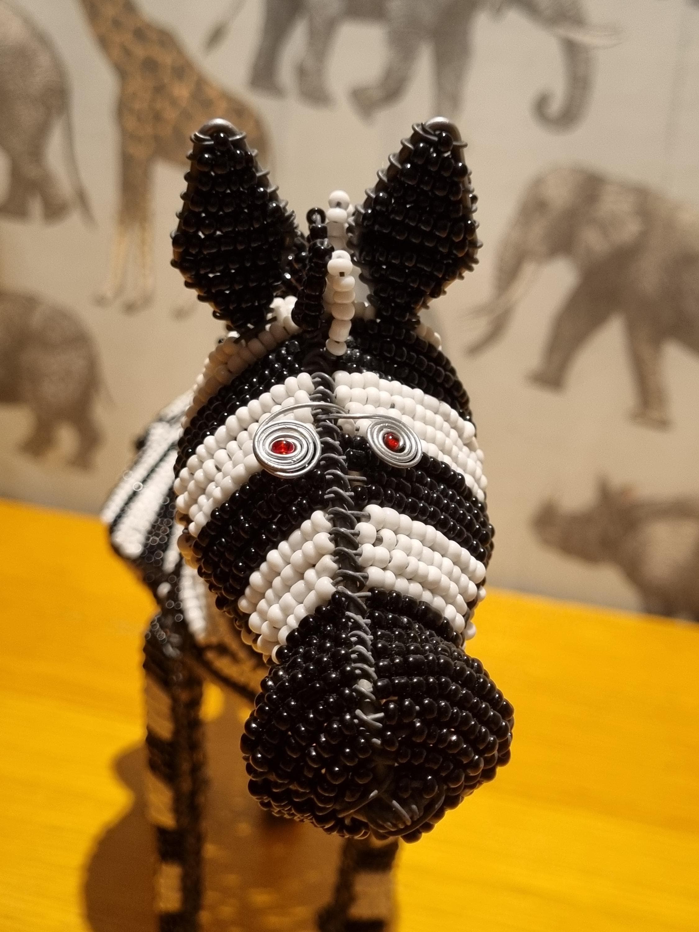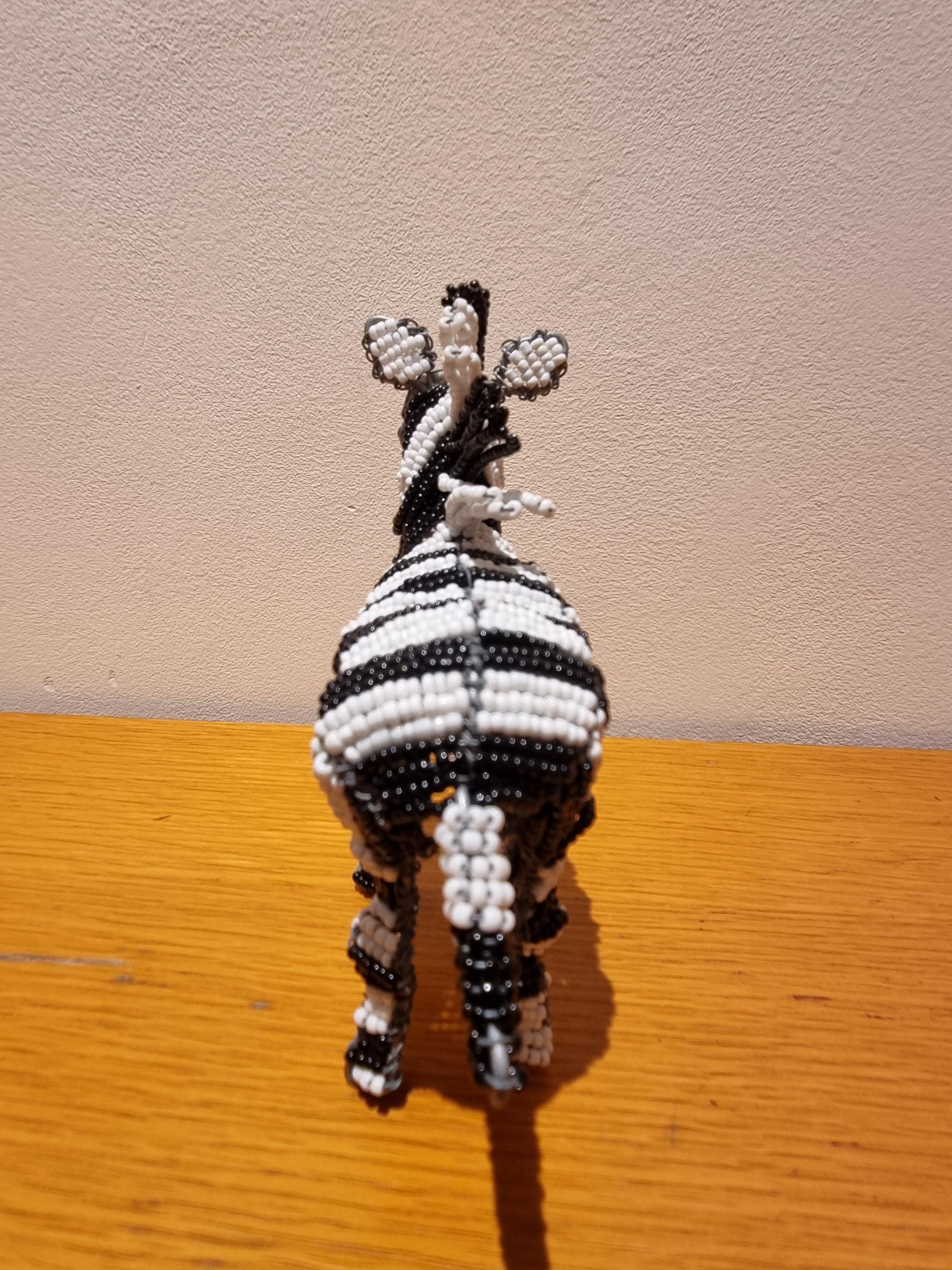 Bring the wild beauty of Africa into your home with this handcrafted zebra sculpture – a stunning fusion of tradition, artistry, and modern decor. Made in South Africa by skilled artisans using galvanized wire and premium black & white glass beads, this zebra is a true celebration of craftsmanship.
