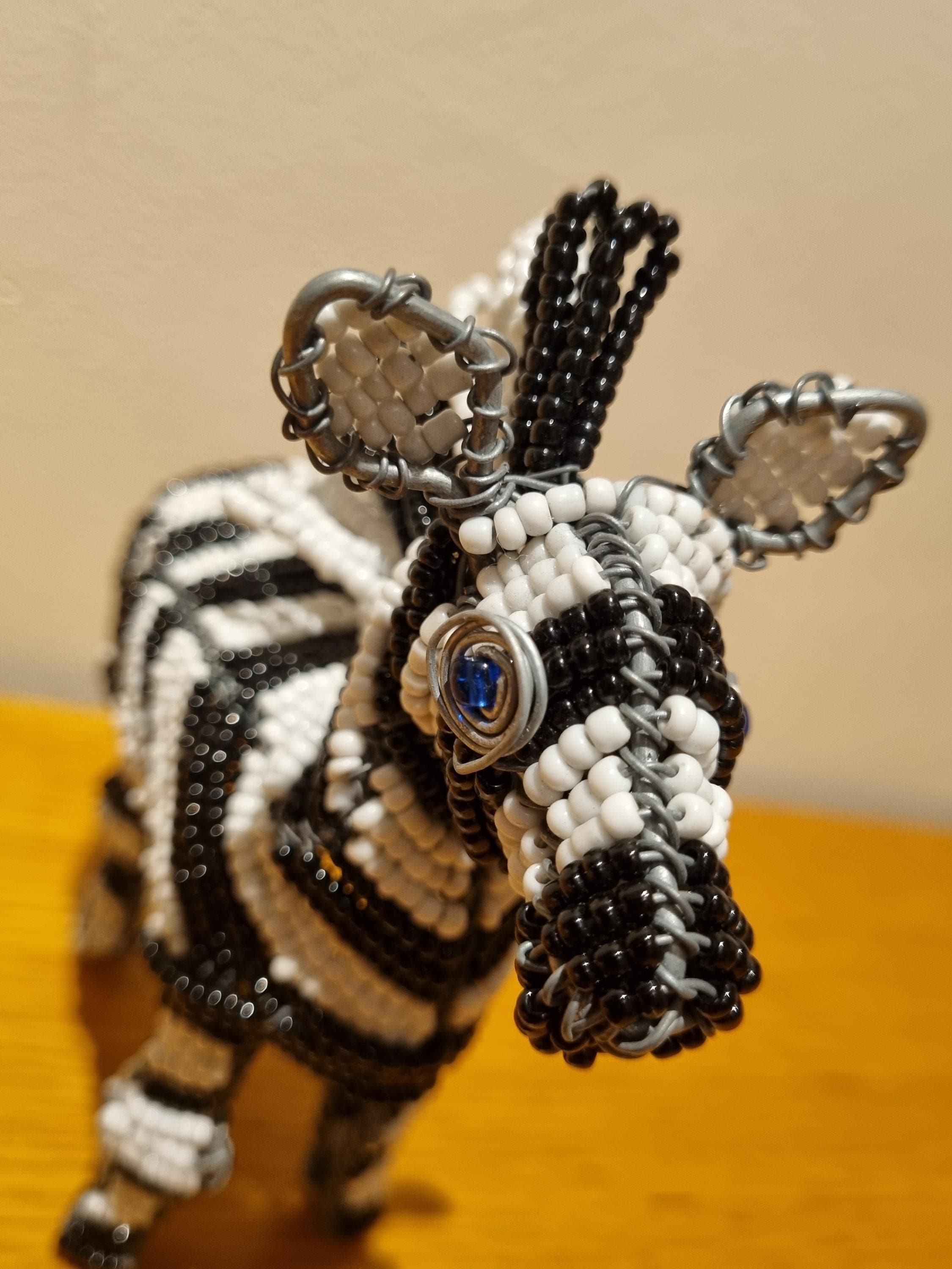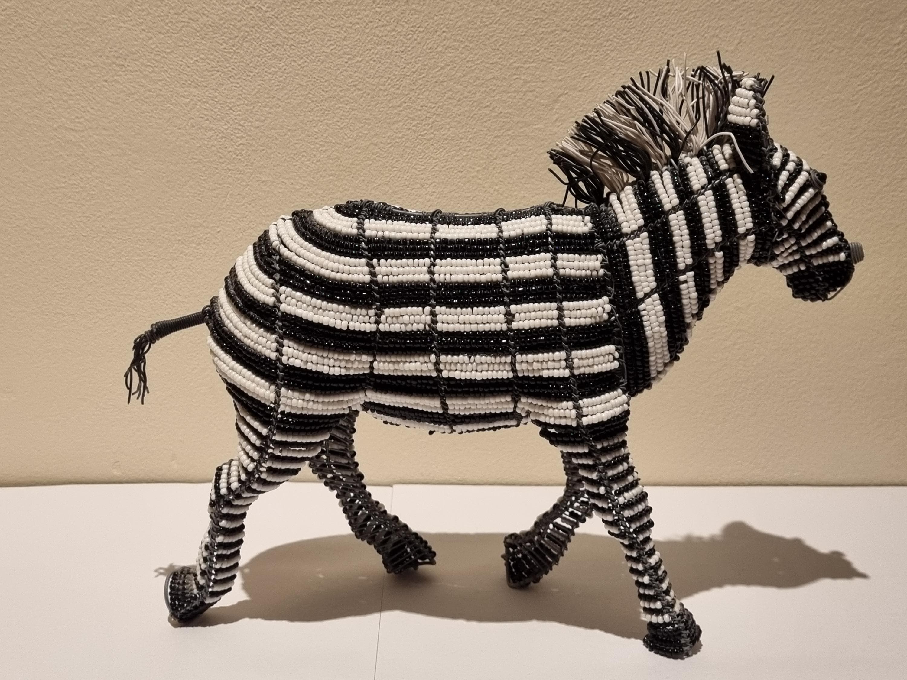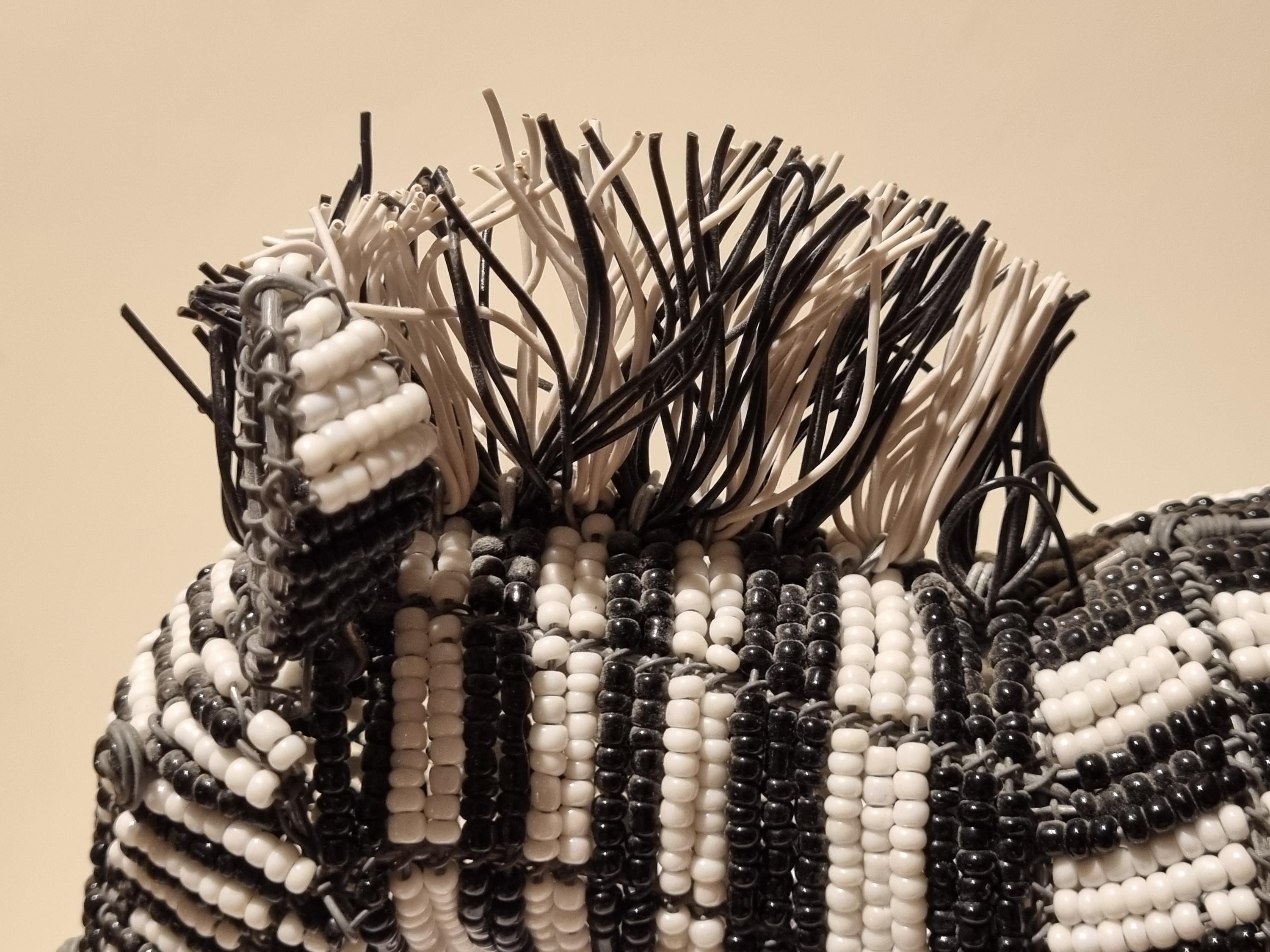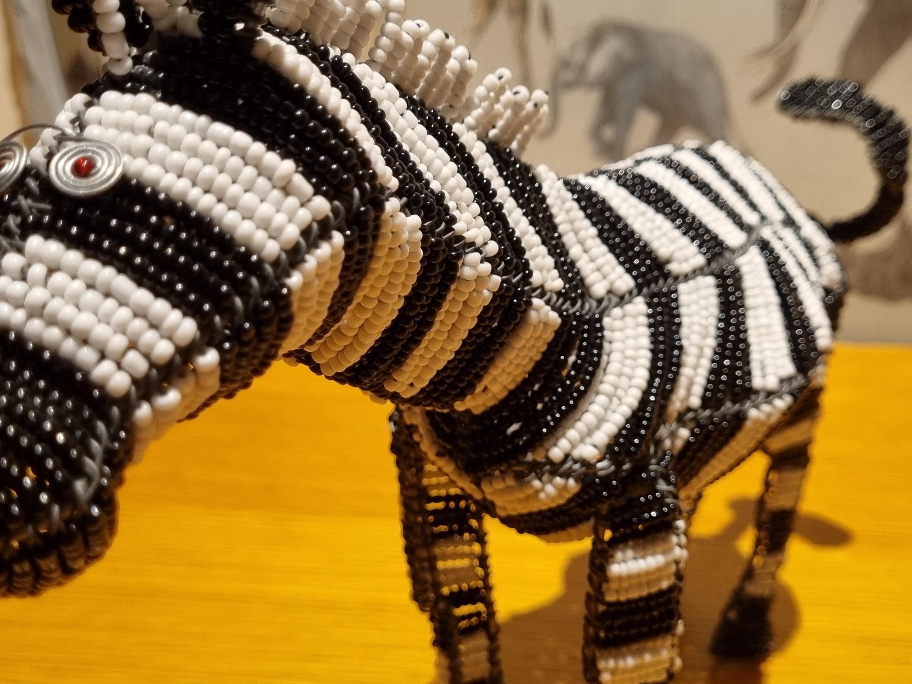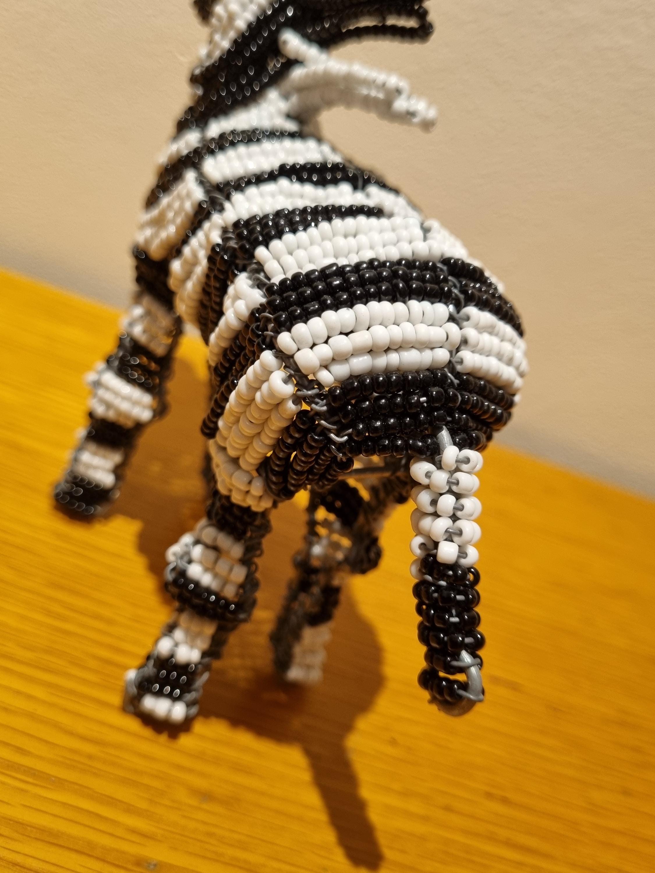 Bring the wild beauty of Africa into your home with this handcrafted zebra sculpture – a stunning fusion of tradition, artistry, and modern decor. Made in South Africa by skilled artisans using galvanized wire and premium black & white glass beads, this zebra is a true celebration of craftsmanship.