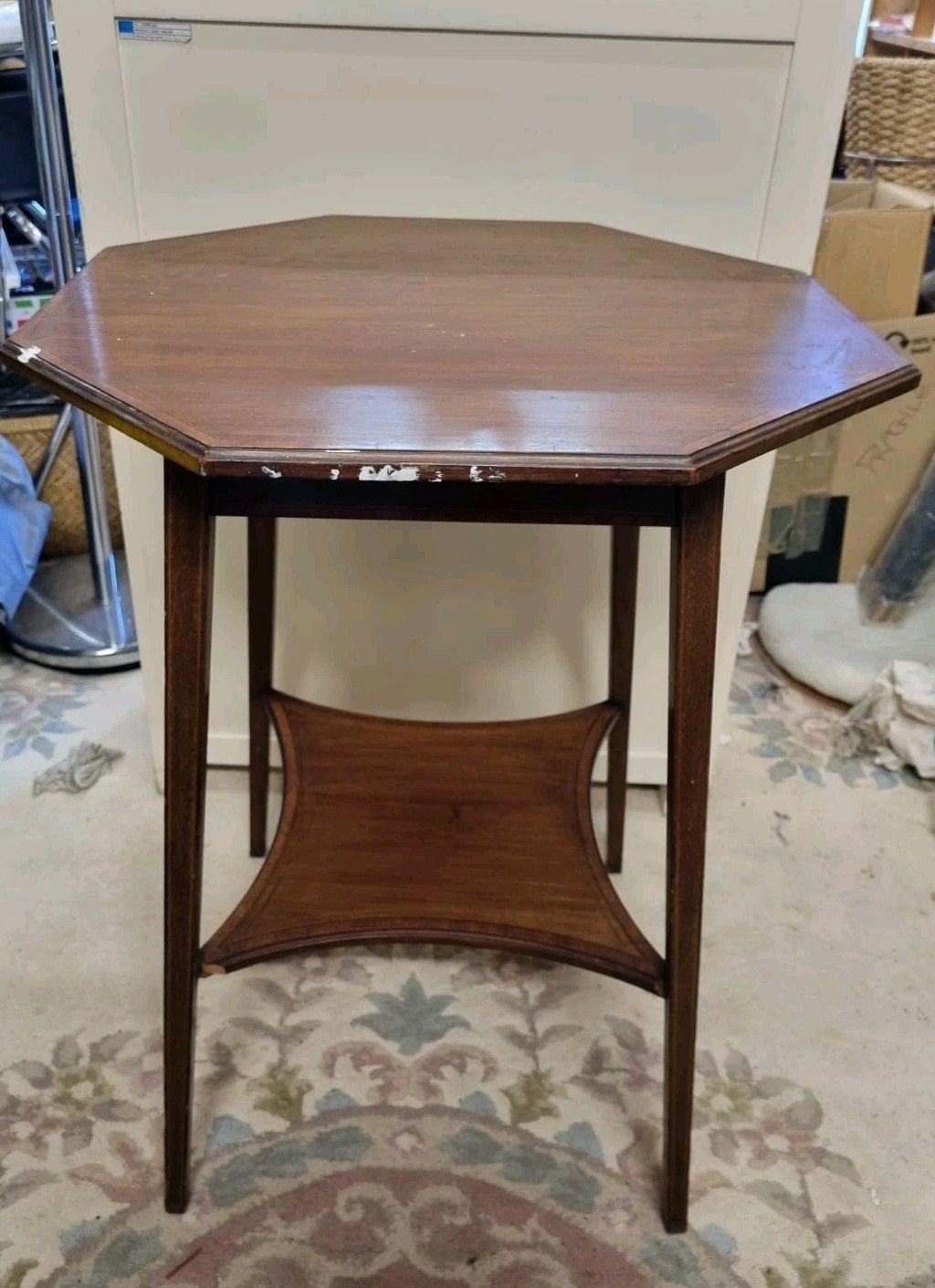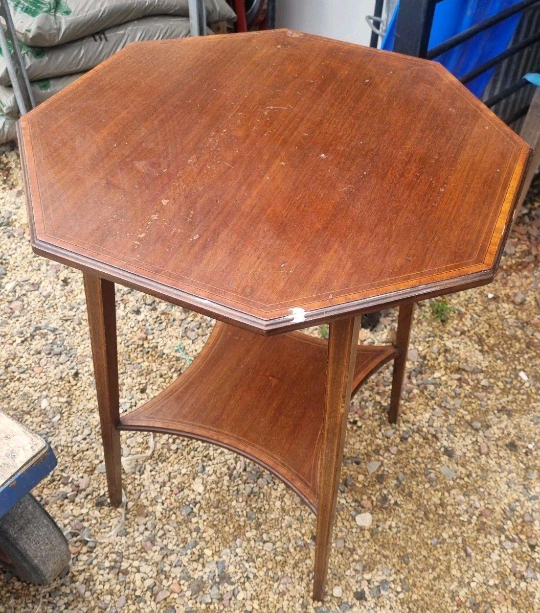 This Antique Edwardian hexagonal side table hails from the United Kingdom and showcases a classic brown colour. With its unique hexagonal shape, this piece adds a touch of vintage charm to any room. The item dimensions are not specified, but its heritage and craftsmanship make it a desirable addition to any antique furniture collection. Ideal for serving drinks or displaying decorative items, this side table is a timeless treasure that embodies the elegance of the Edwardian era.