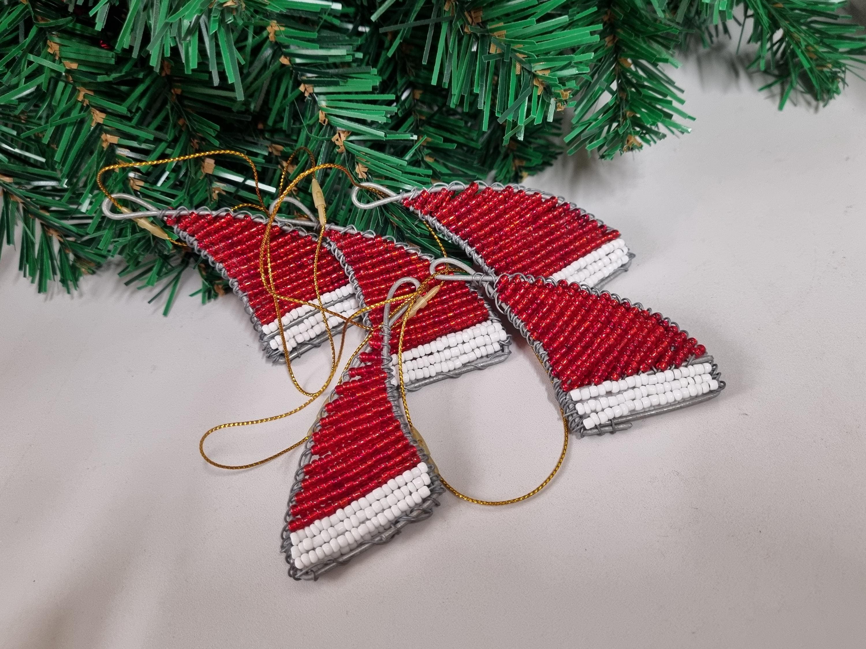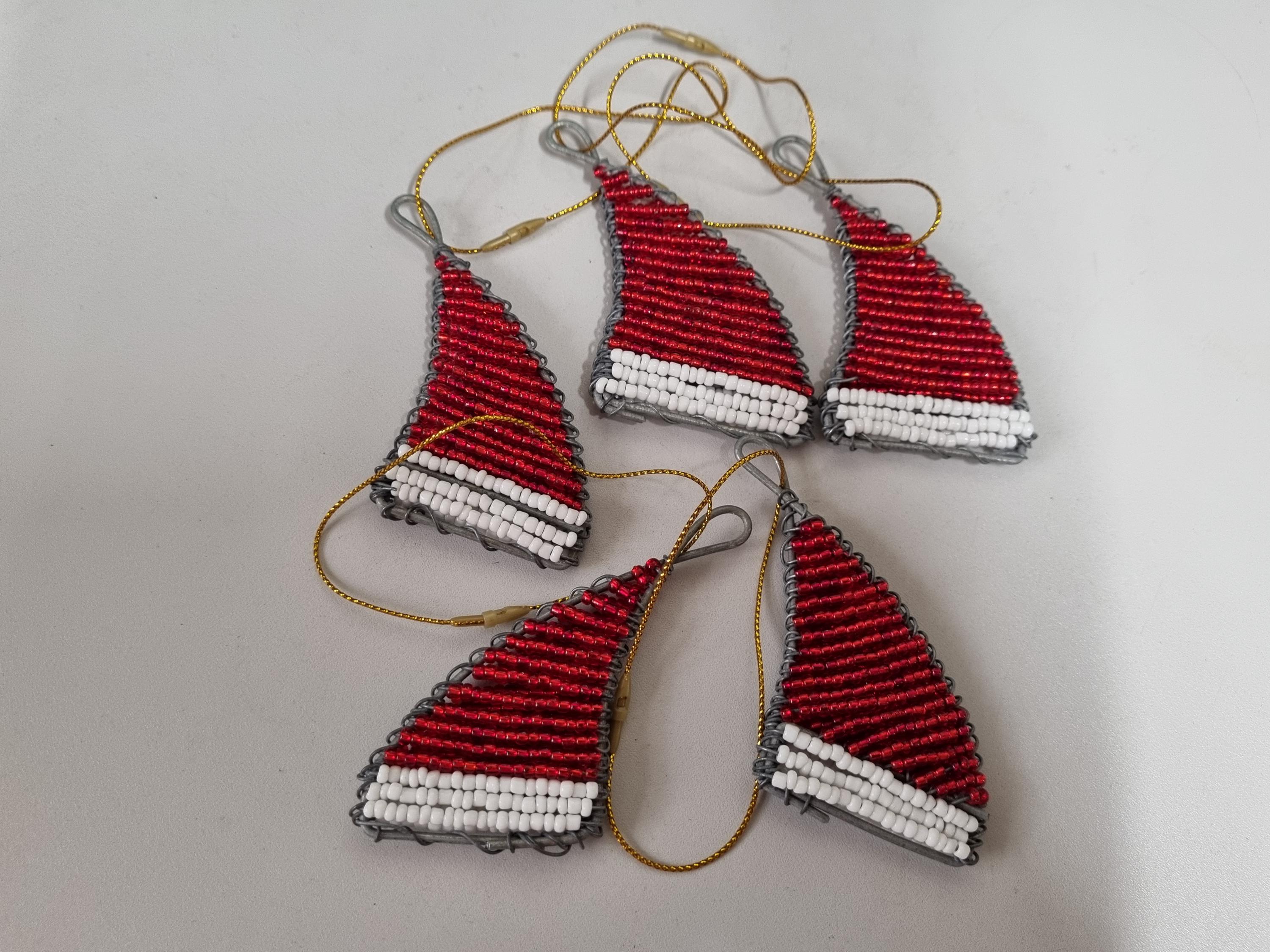 Each Santa hat is lovingly handcrafted in South Africa using intricate wirework and colourful glass beads, showcasing the incredible skill and cultural heritage of African bead artists.